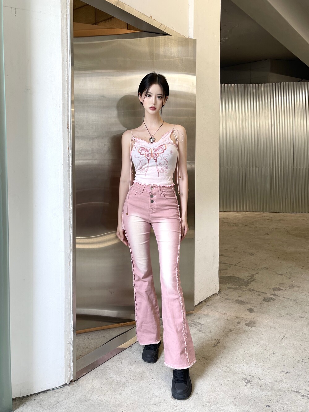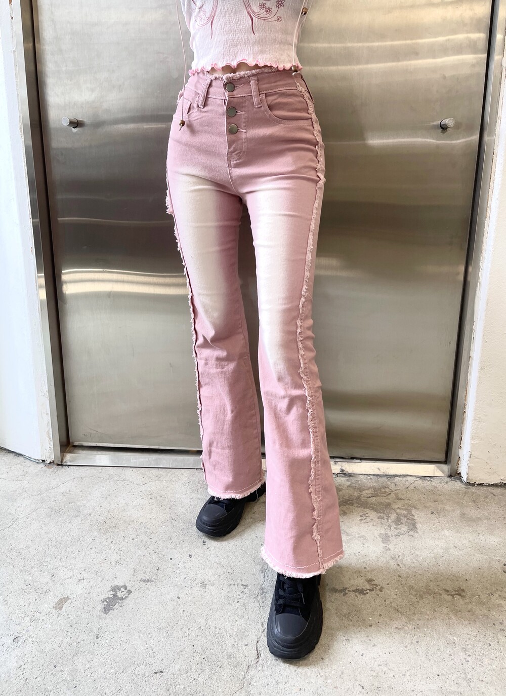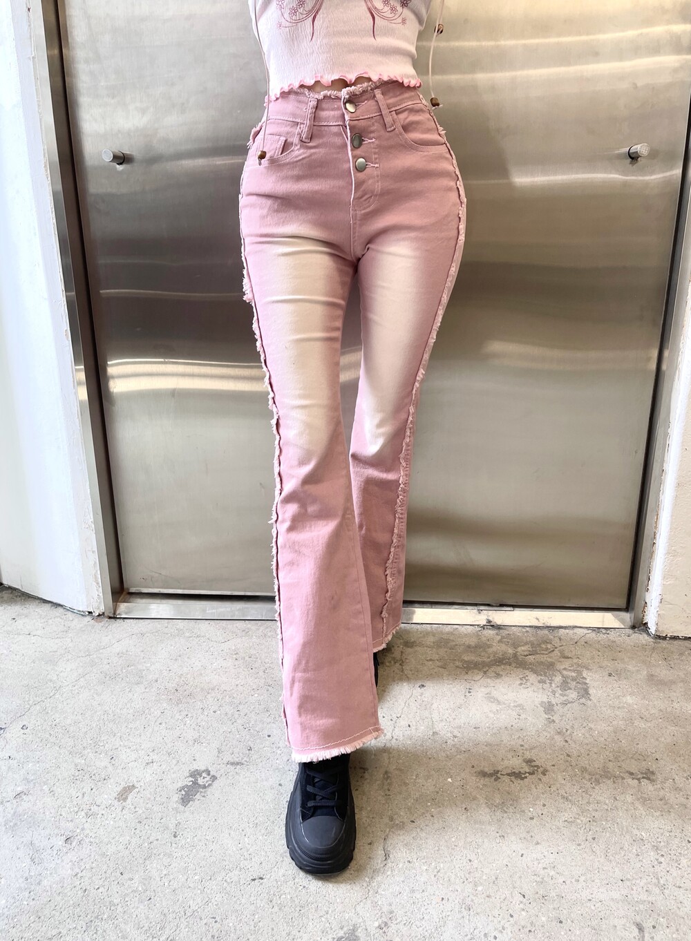 로제핑크 데미지 슬림 부츠컷 팬츠