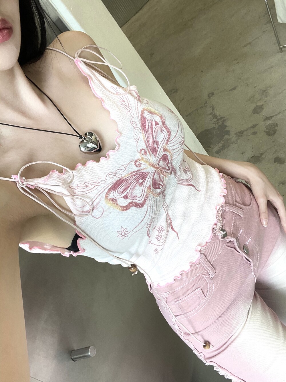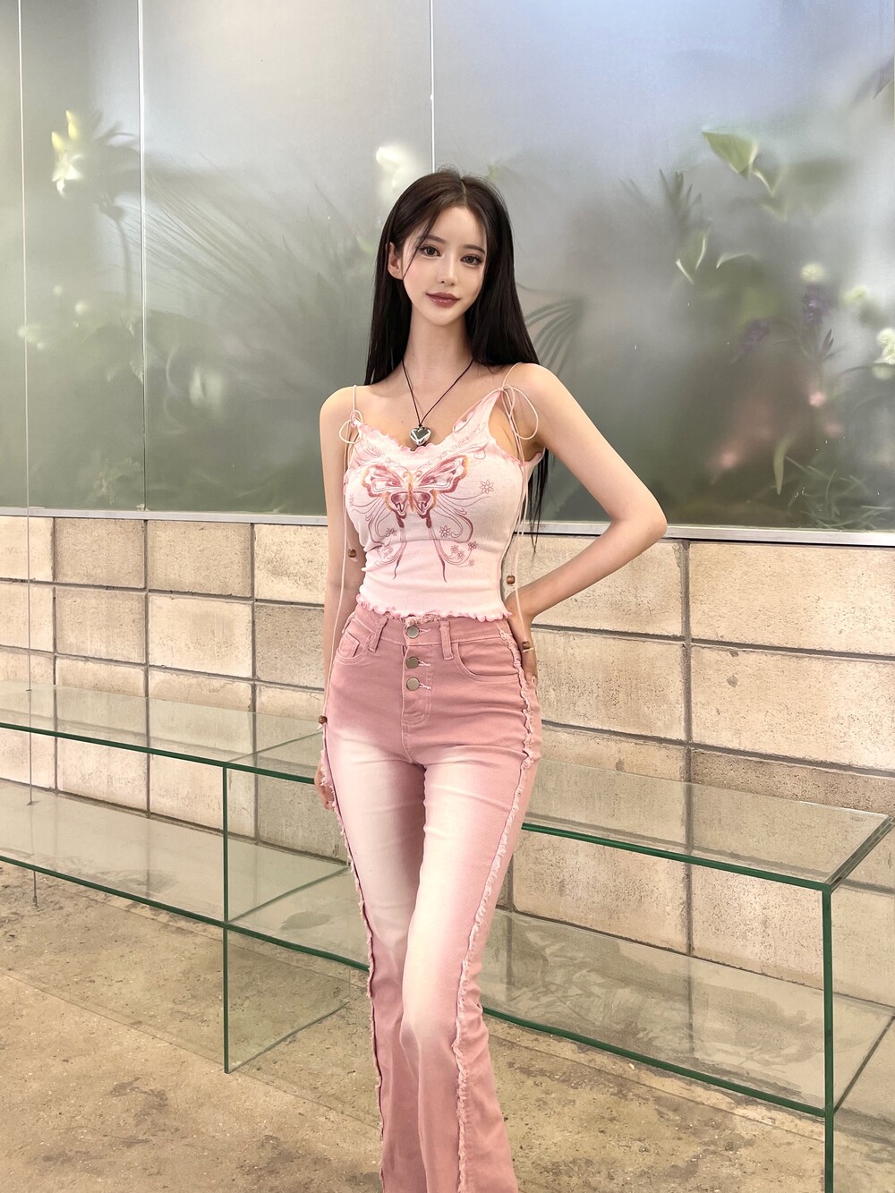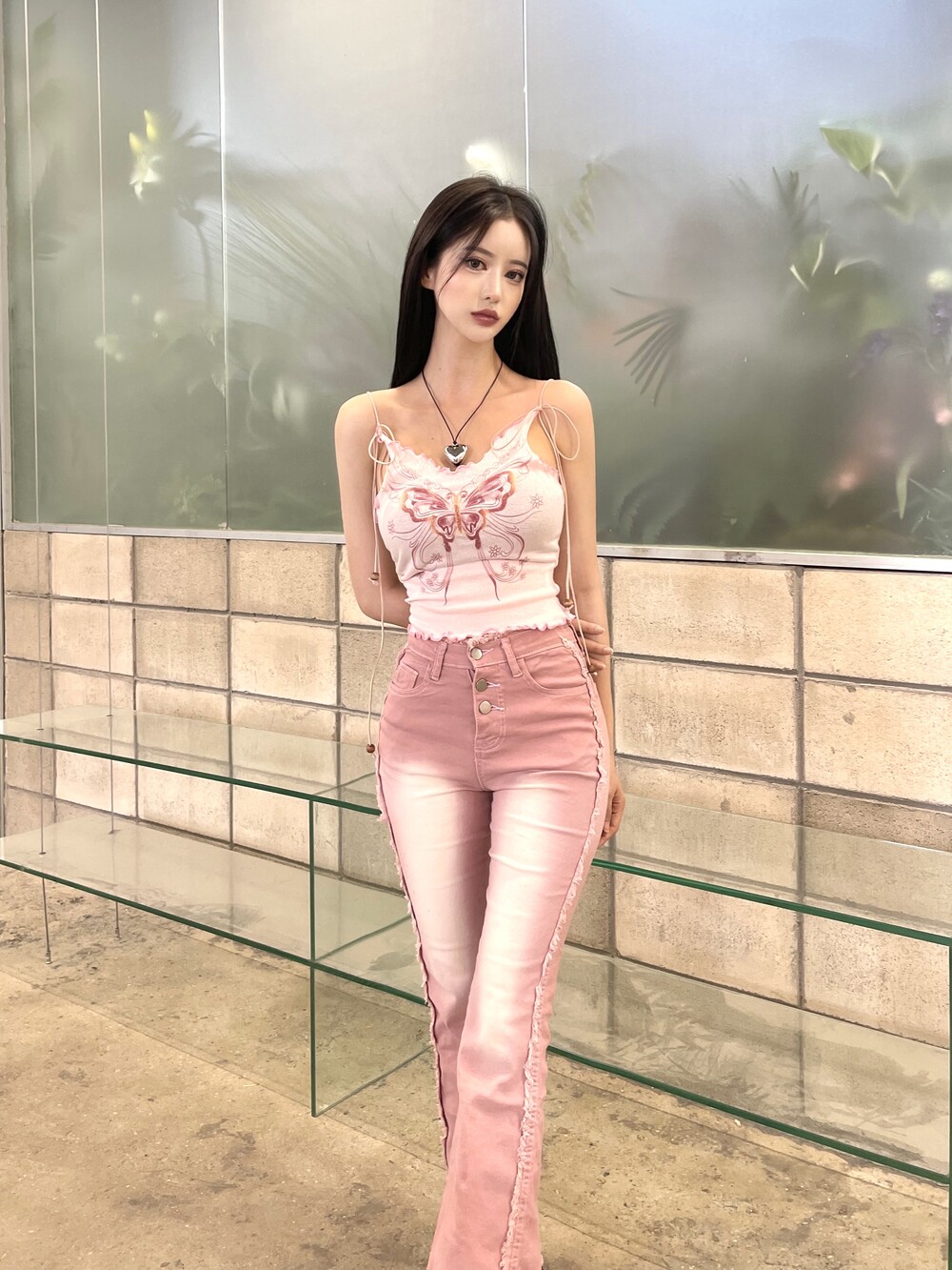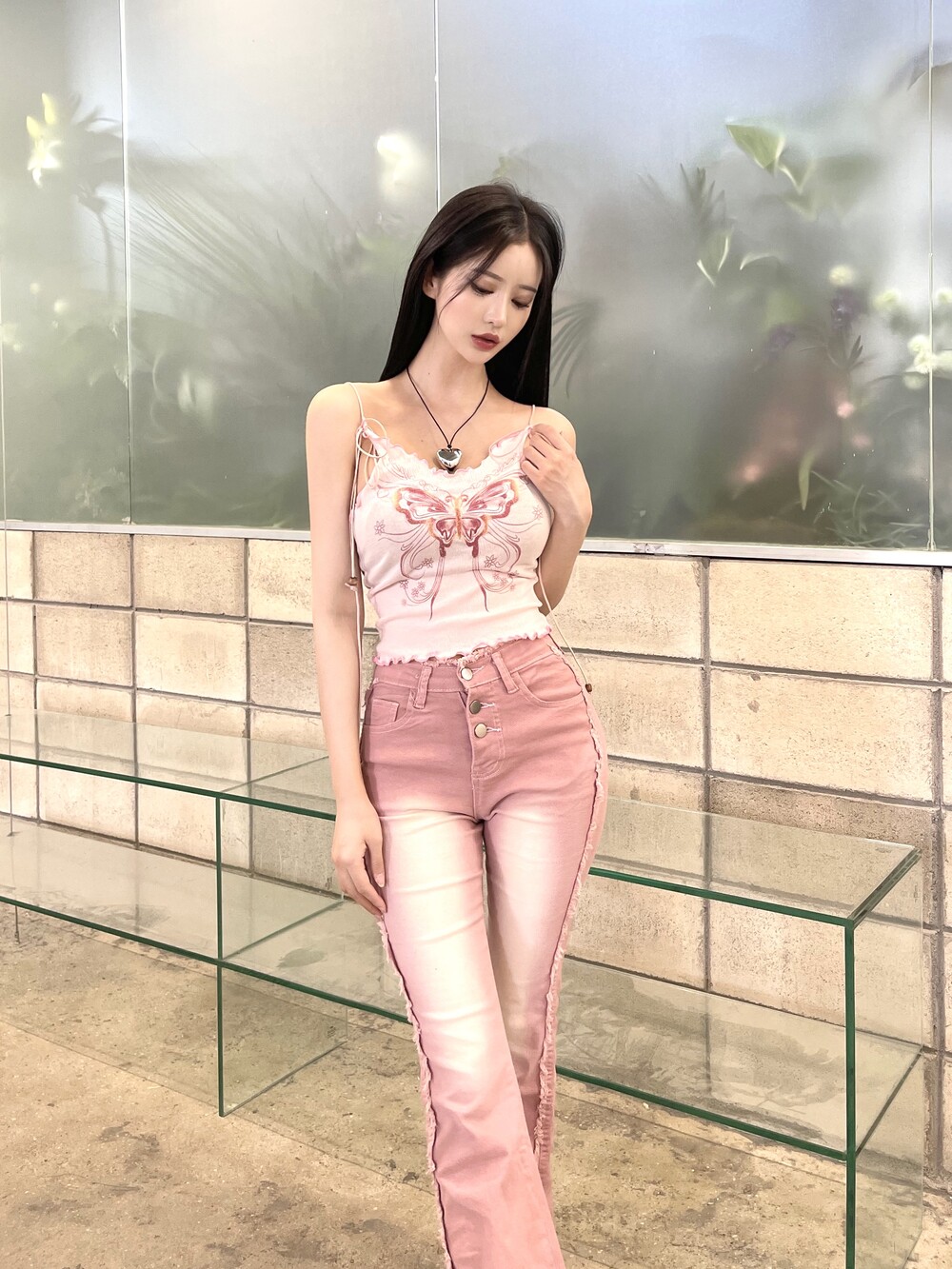 로제핑크 데미지 슬림 부츠컷 팬츠