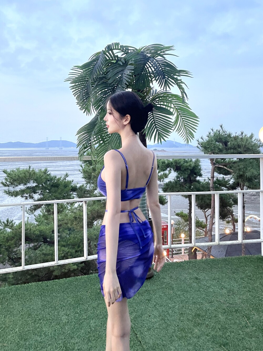 타이다이 스트랩 비키니 커버 3pc