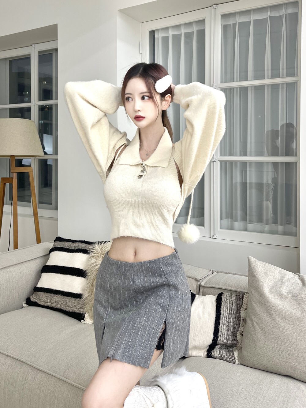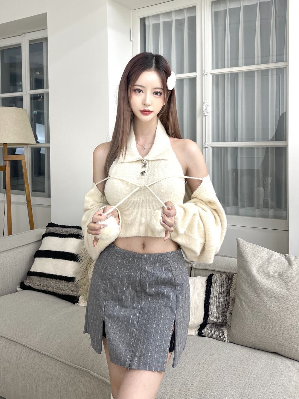 방울 앙고라 홀터셔츠탑 볼레로 가디건 세트