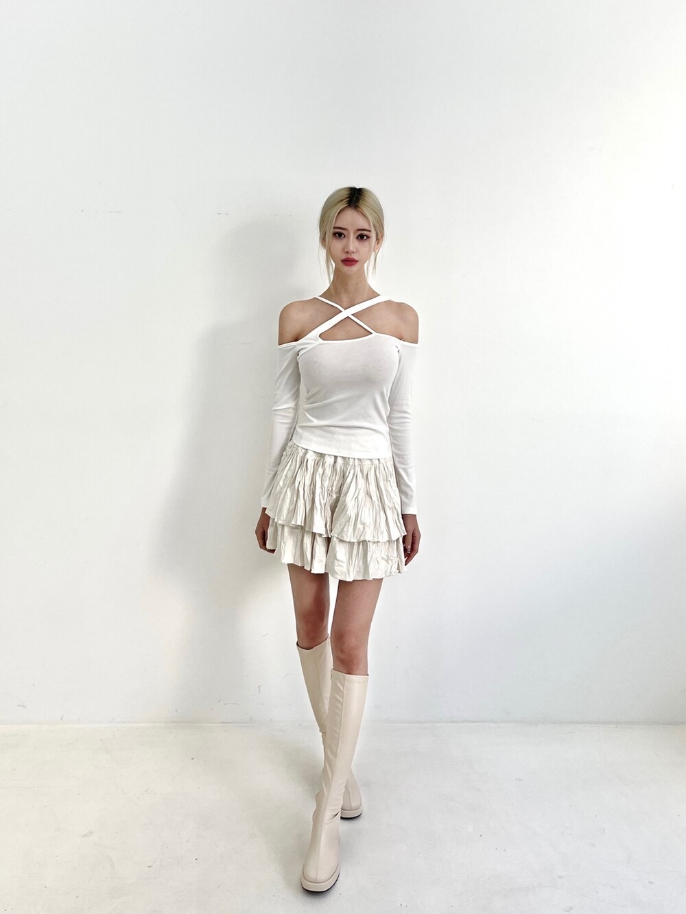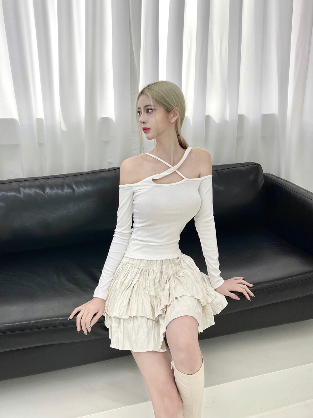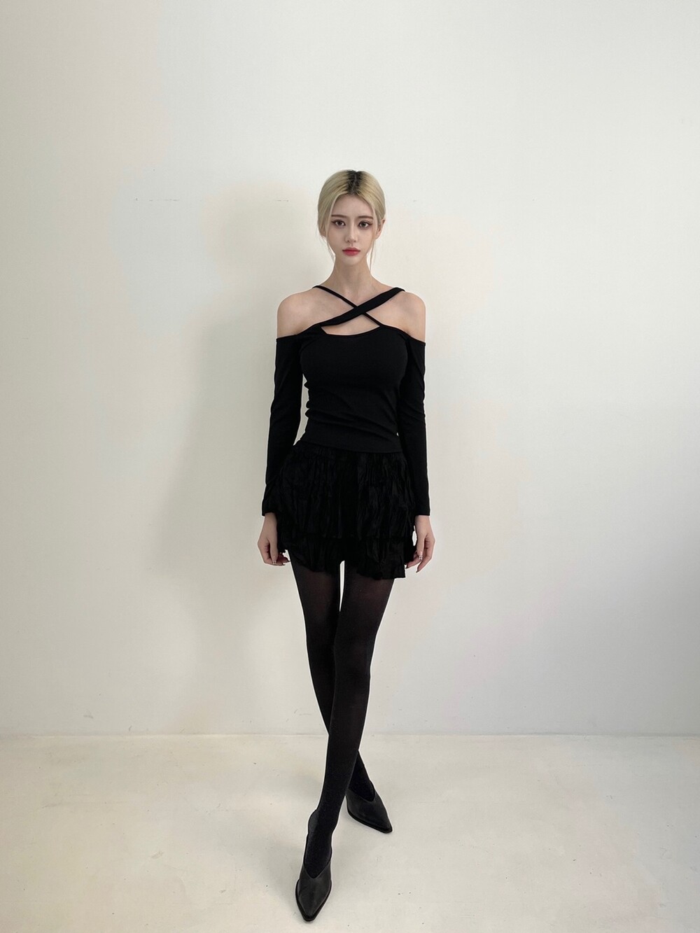엑스 크로스 오프숄더 탑
