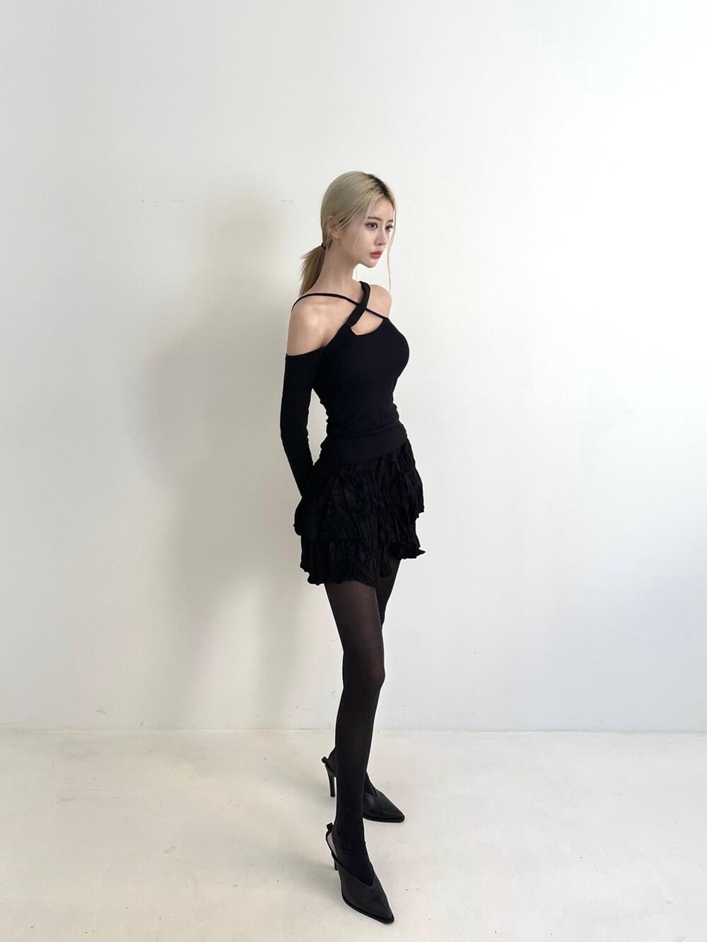 슬림핏으로 스커트/팬츠 등 다양한 하의와의 매치 추천