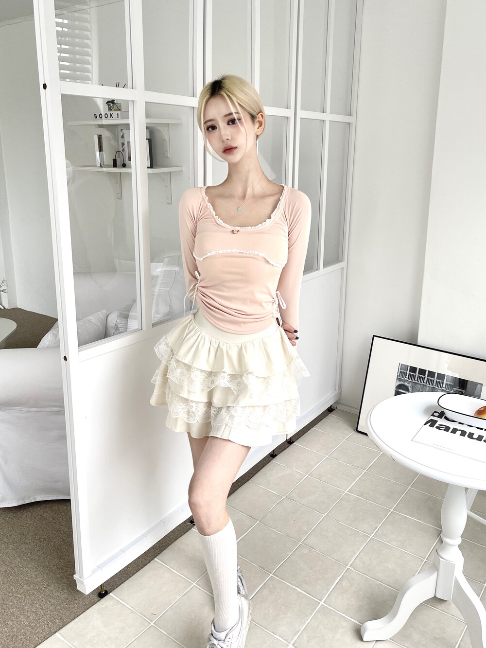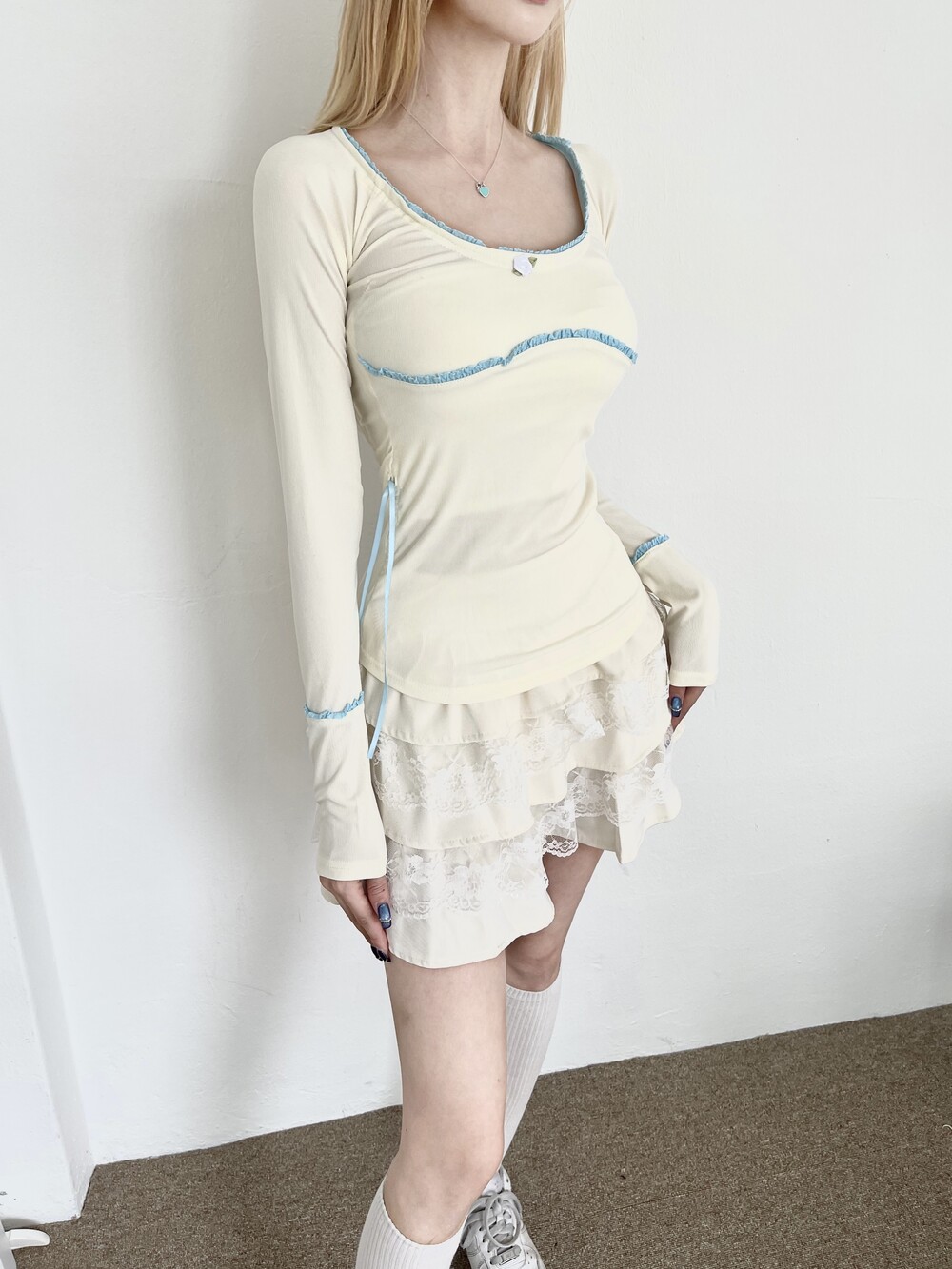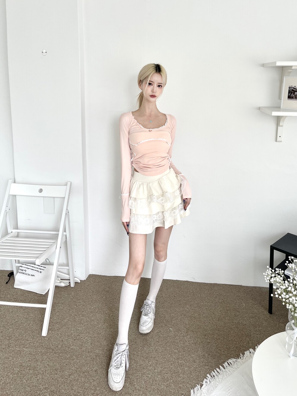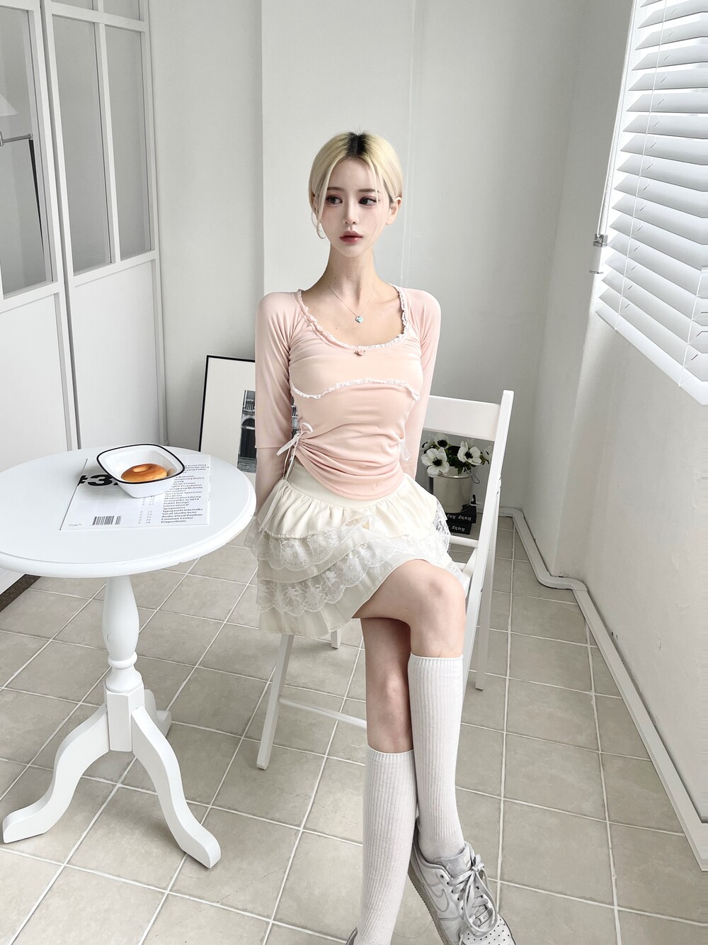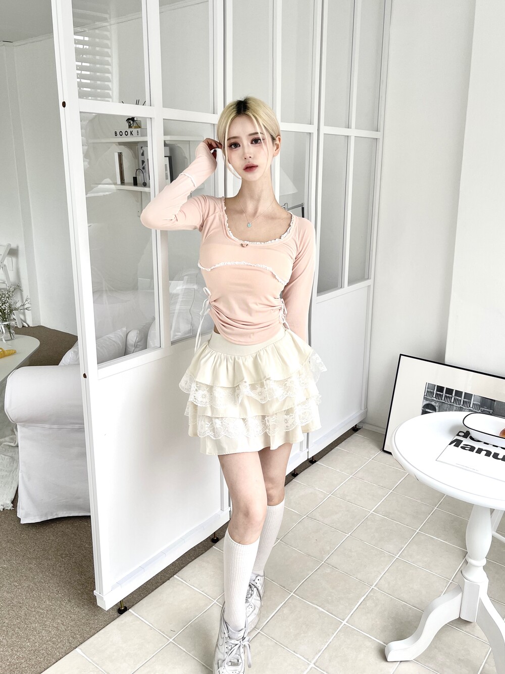 미니 코사지 포인트 투웨이 셔링 리본 티셔츠