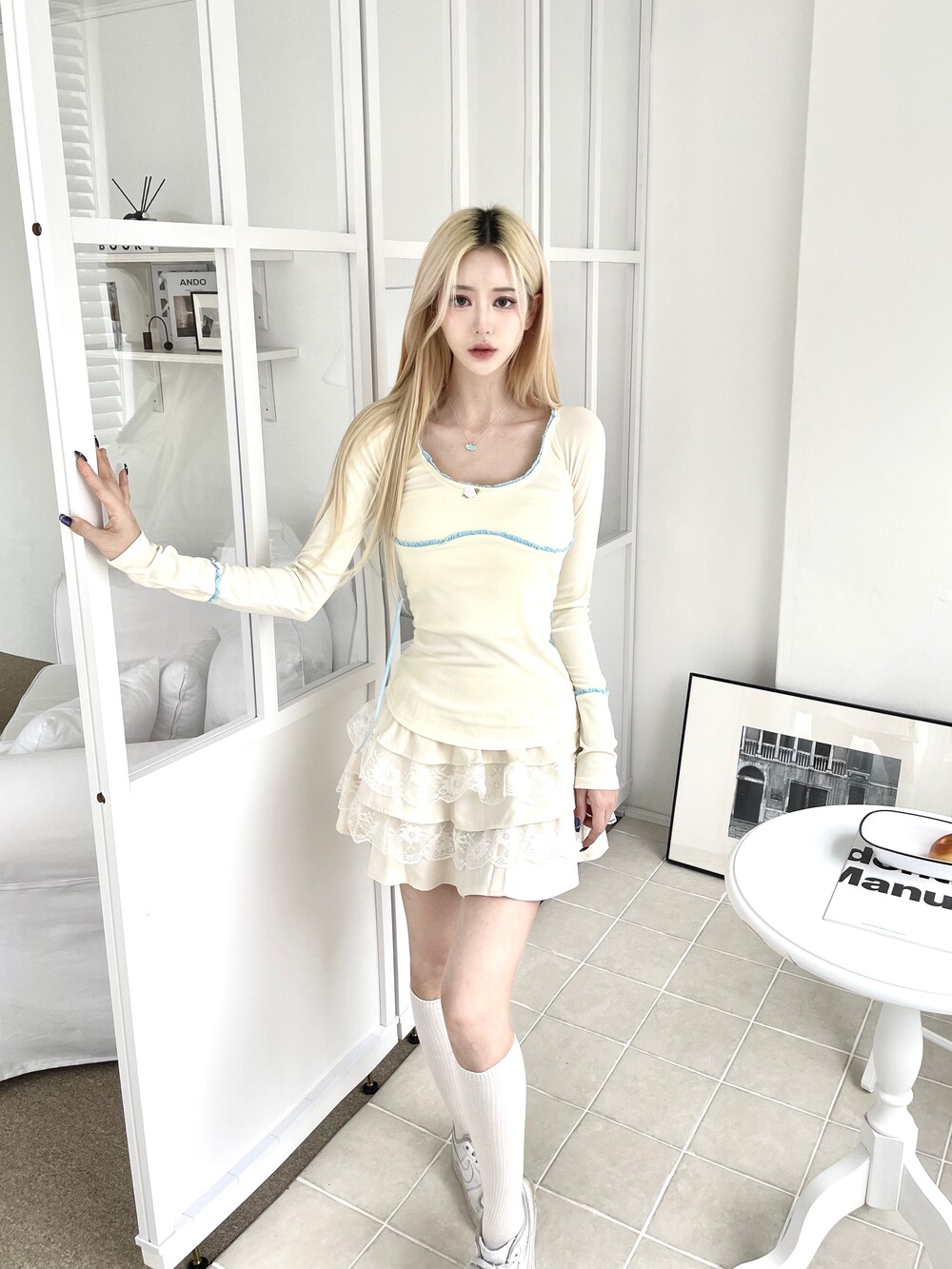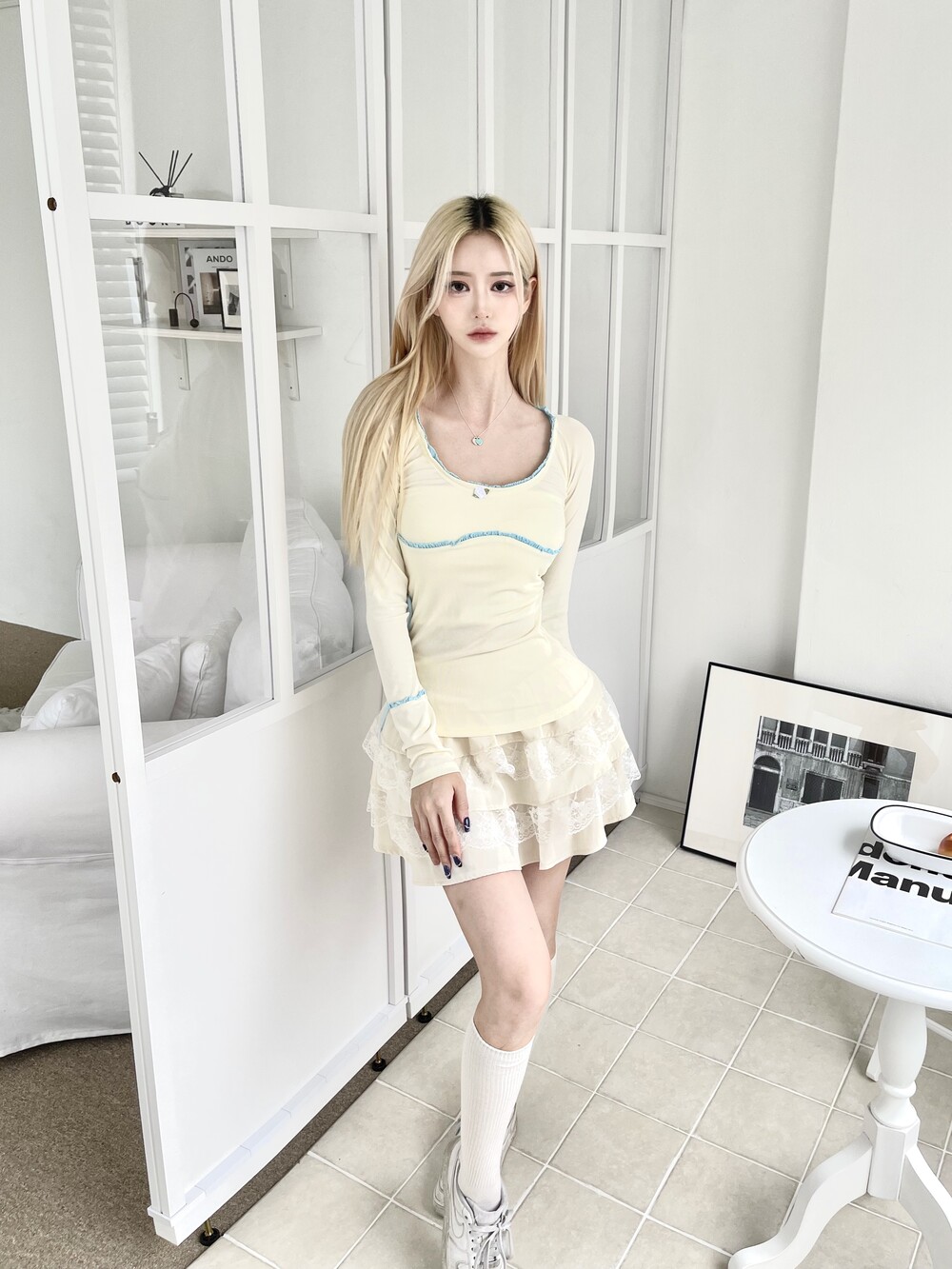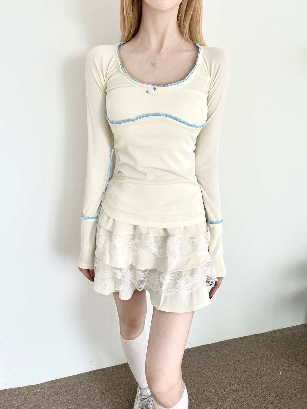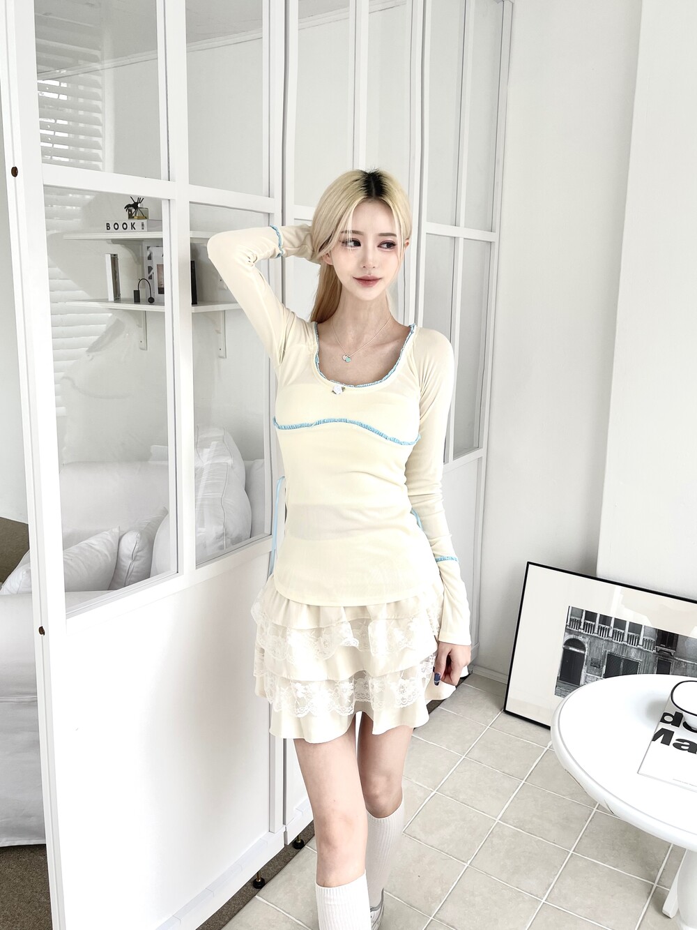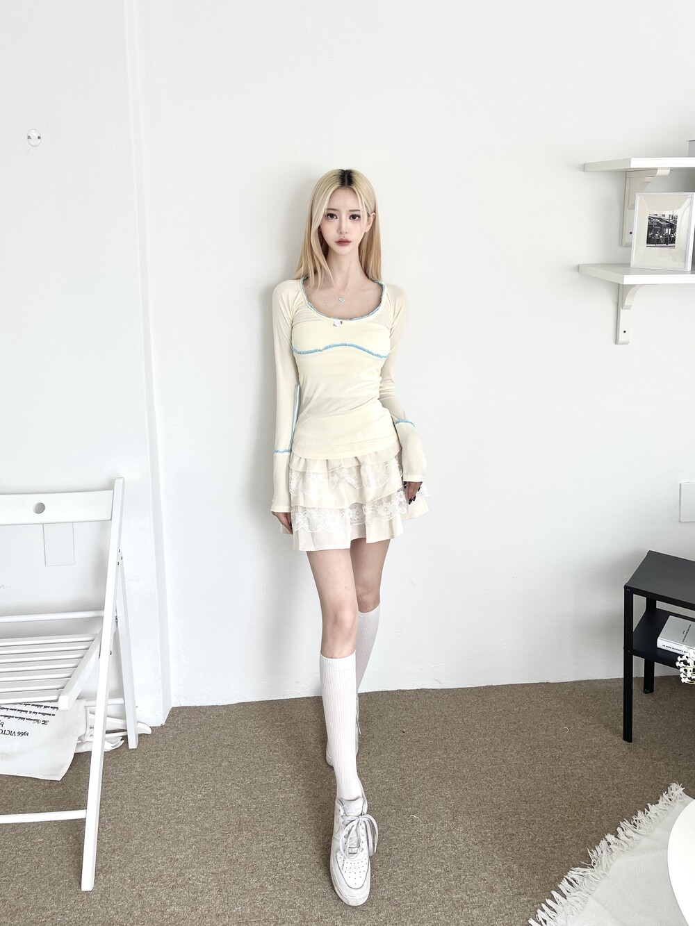 미니 코사지 포인트 투웨이 셔링 리본 티셔츠