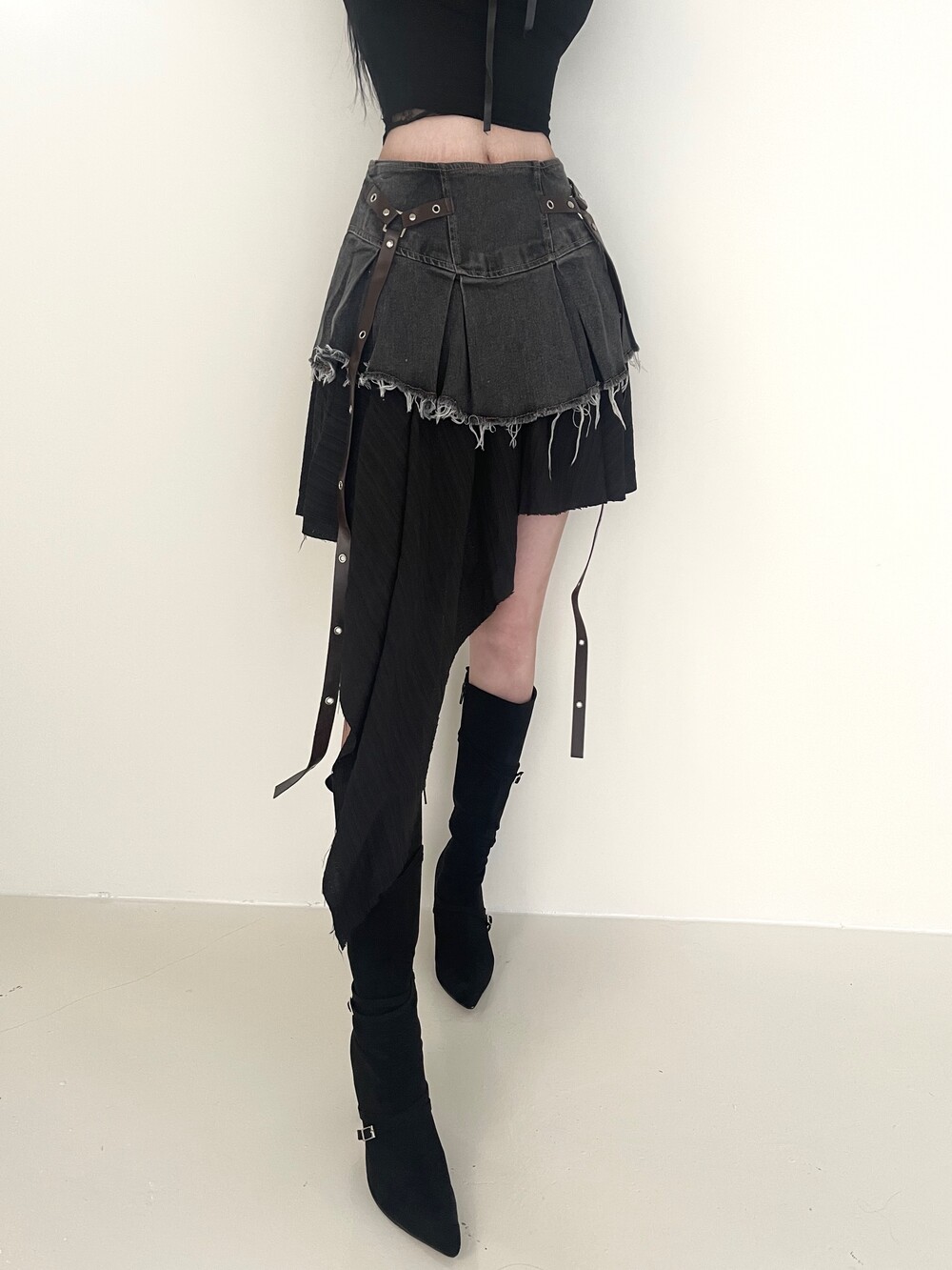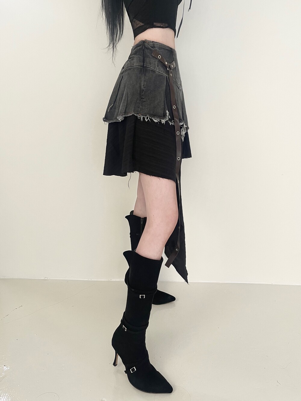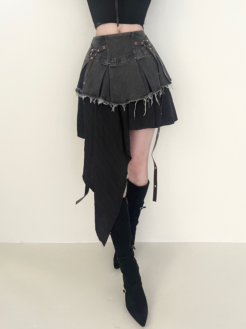 데님 러플 언발 스커트