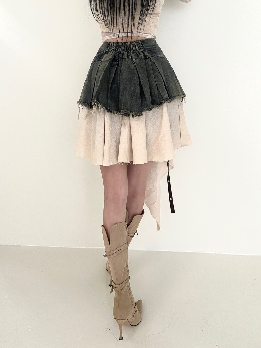 러플 언발 스커트를 레이어드 한 듯한 디자인
