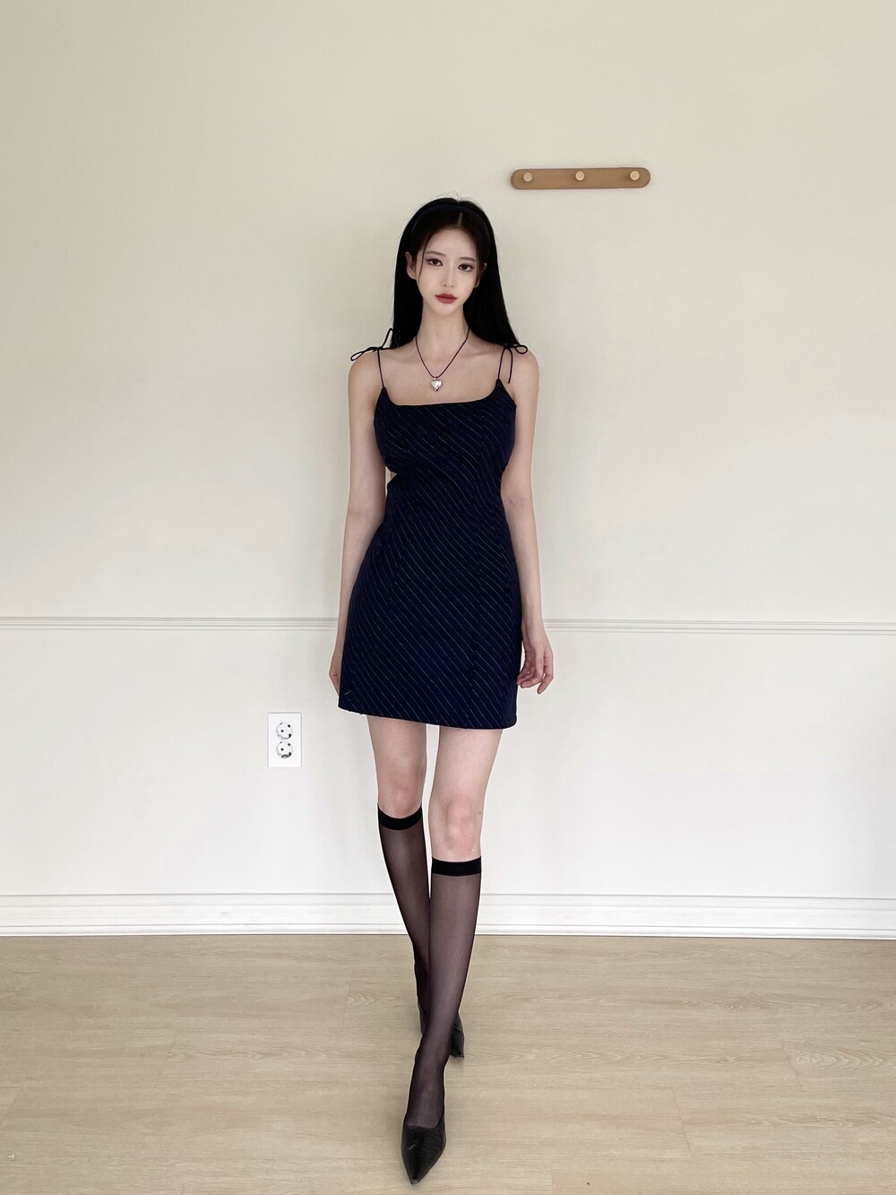 스트라이프 패턴의 딥 네이비 원피스