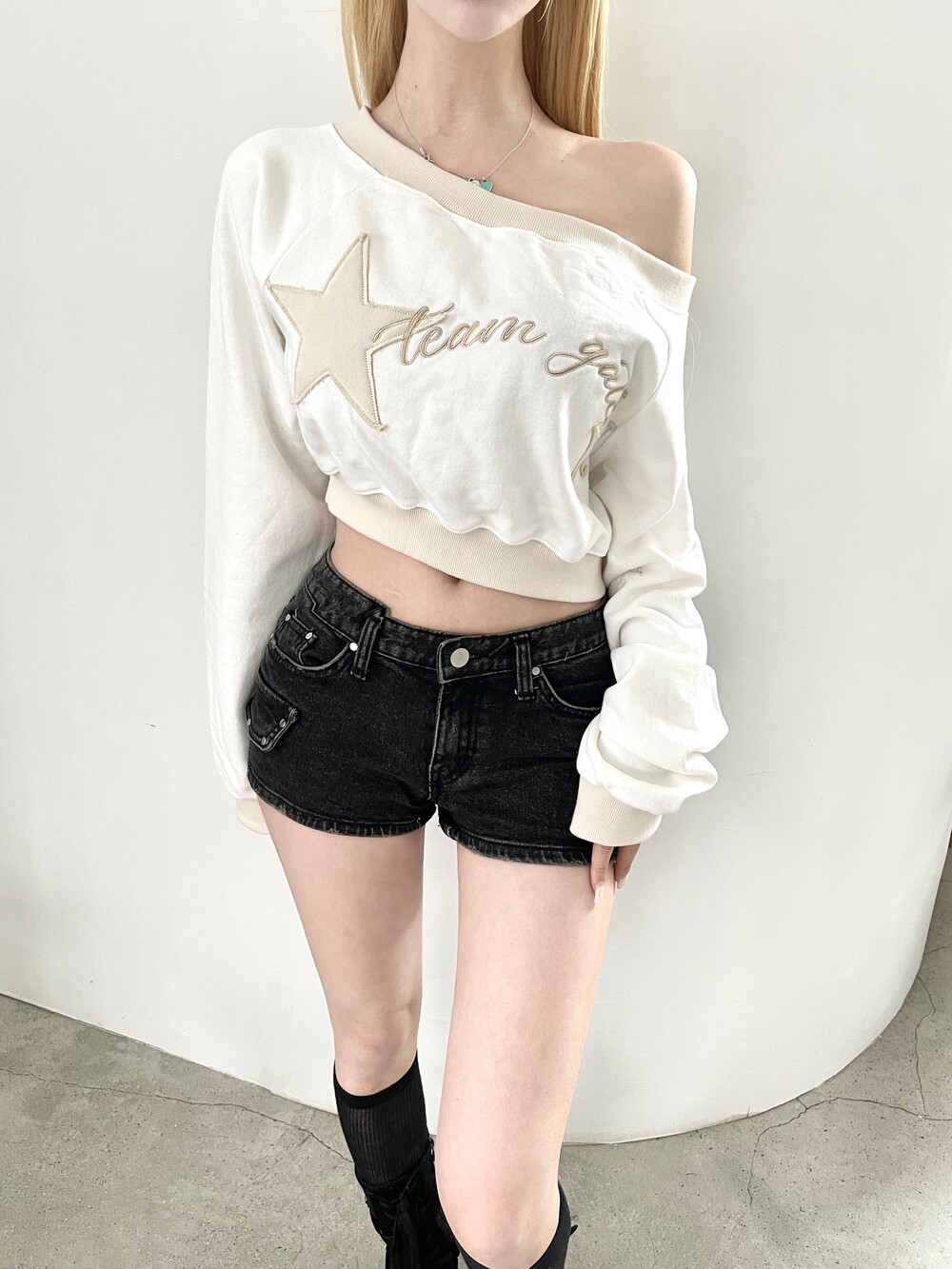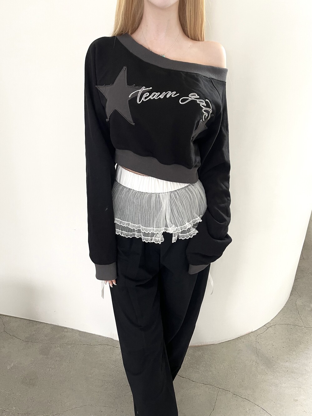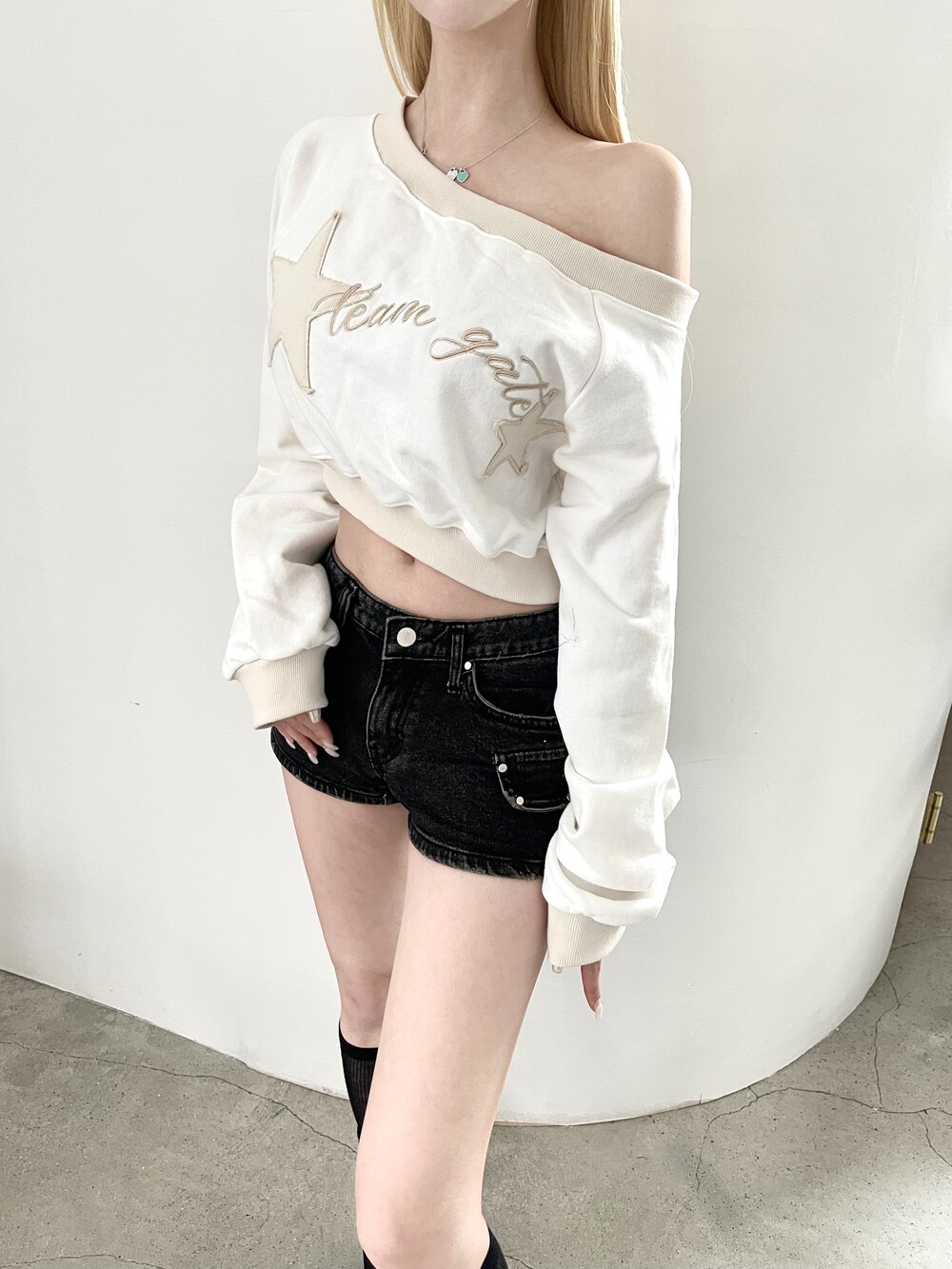 스타 아플리케 원숄더 오프숄더 맨투맨