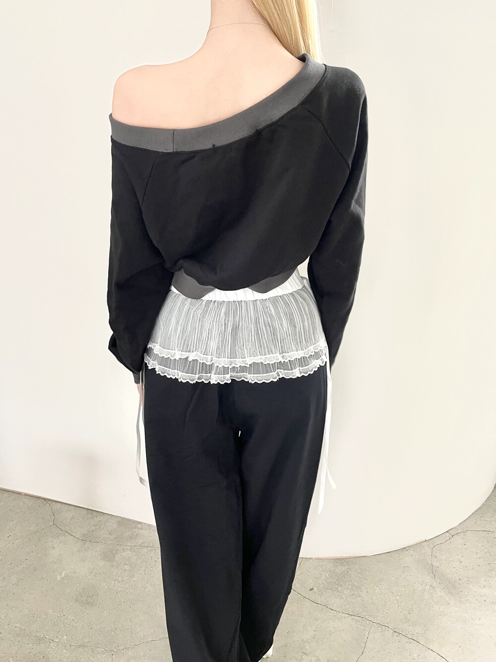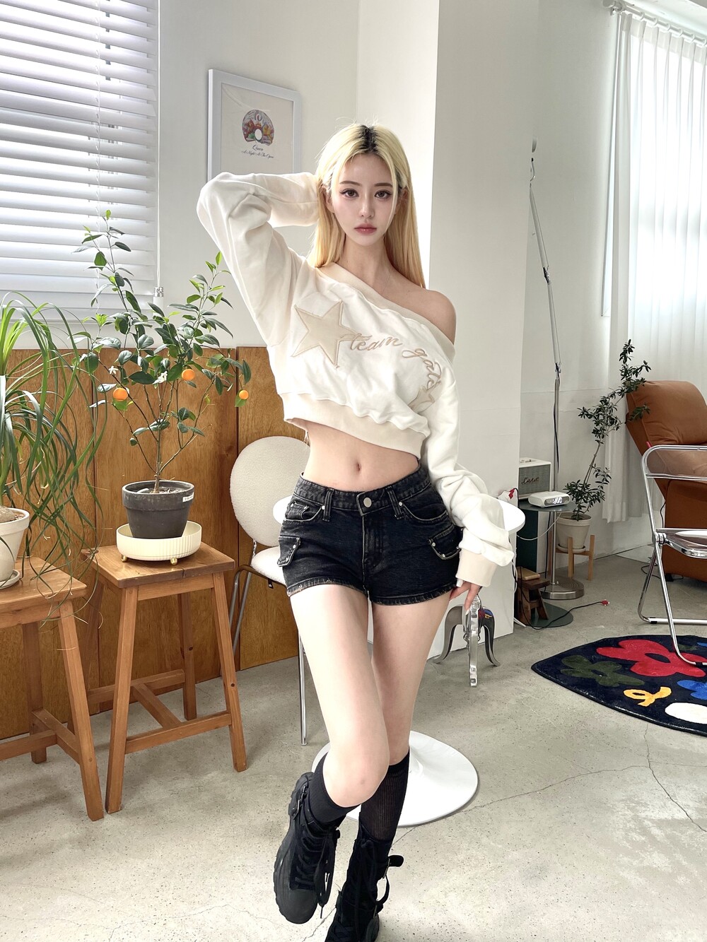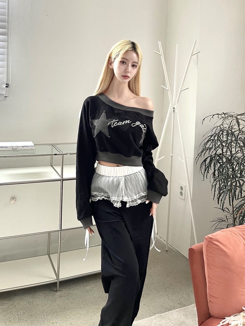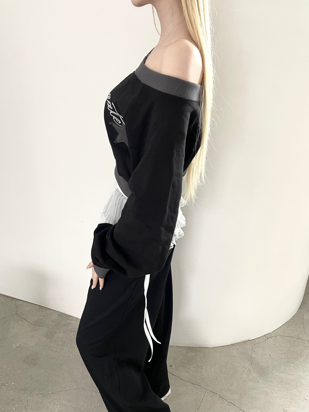 스타 아플리케 원숄더 오프숄더 맨투맨