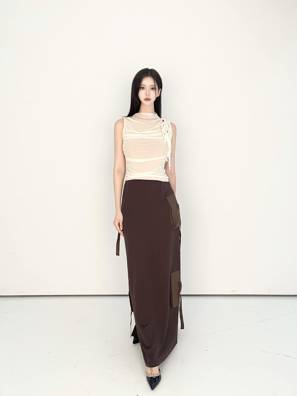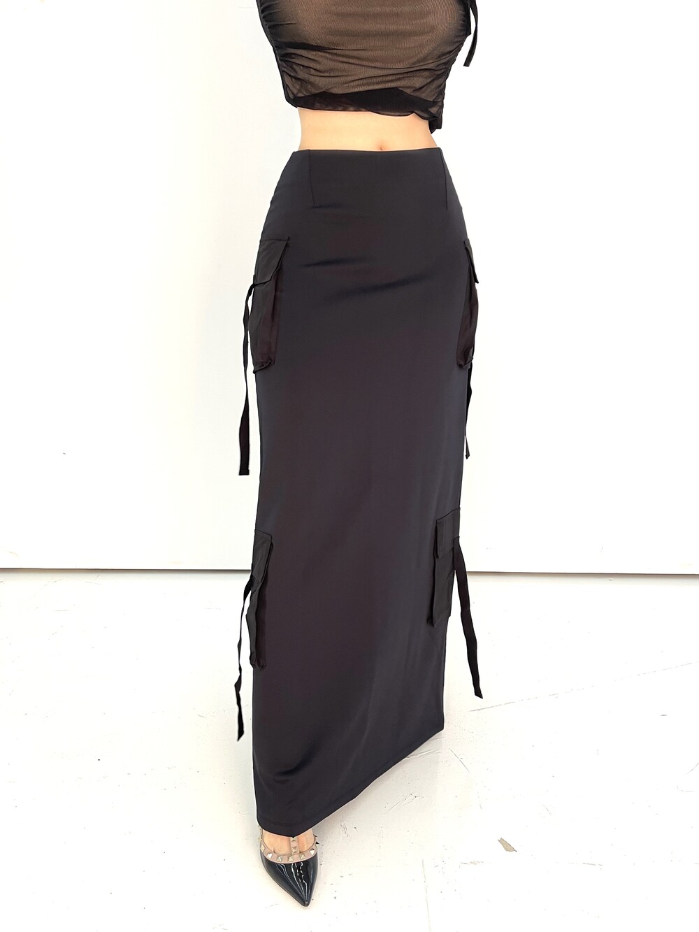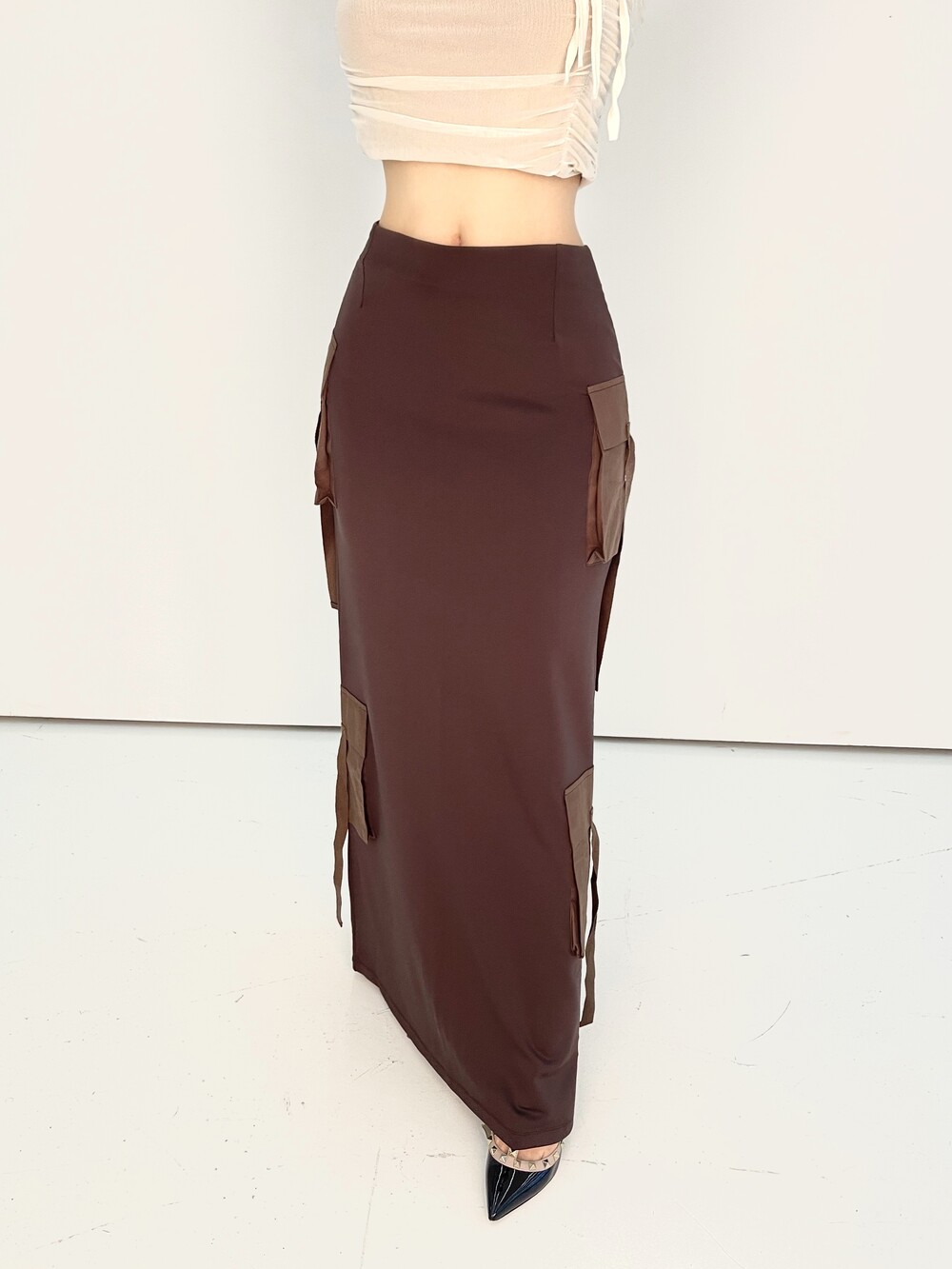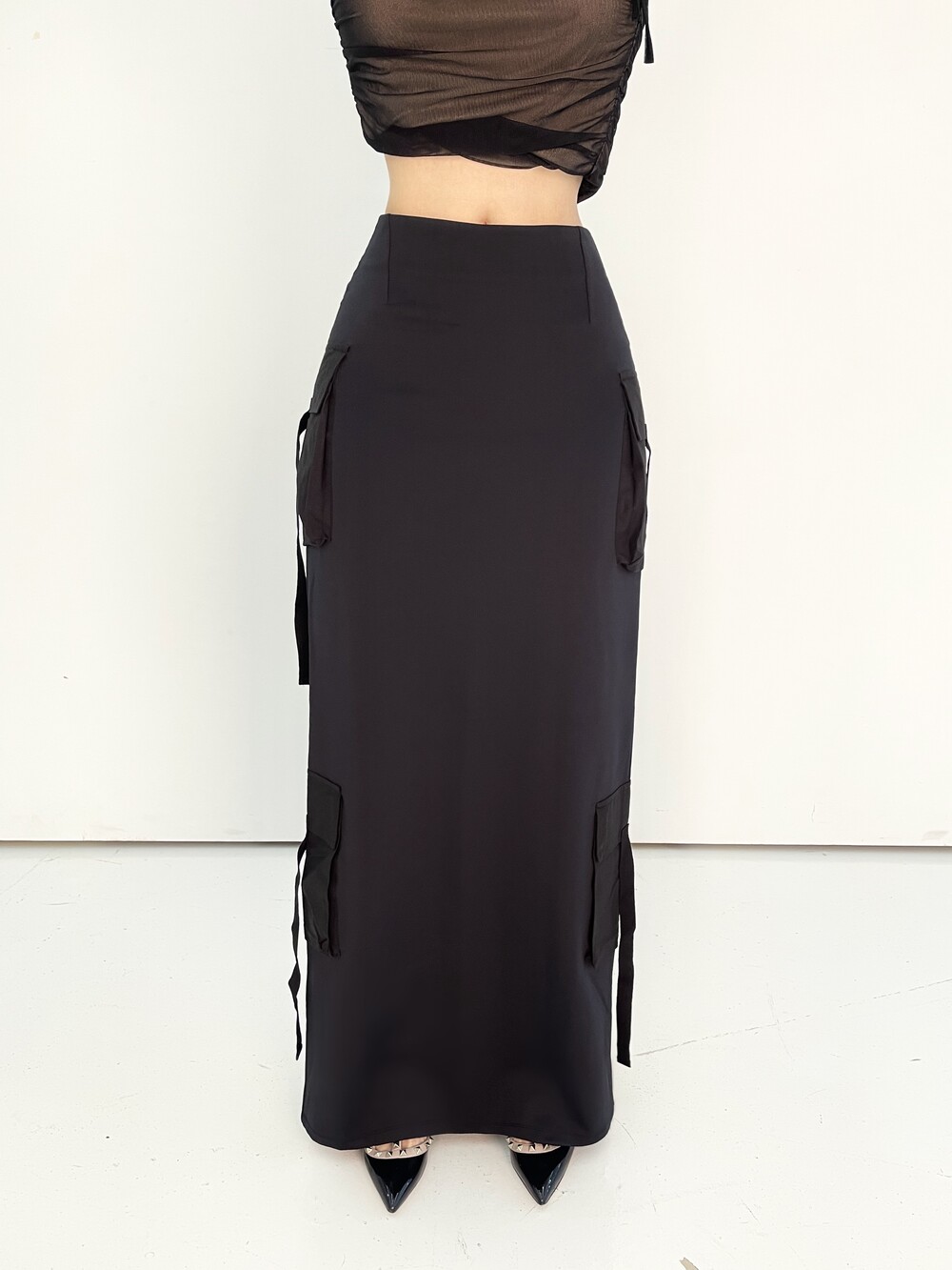 신축성이 좋은 원단으로 제작된 맥시 롱 스커트
