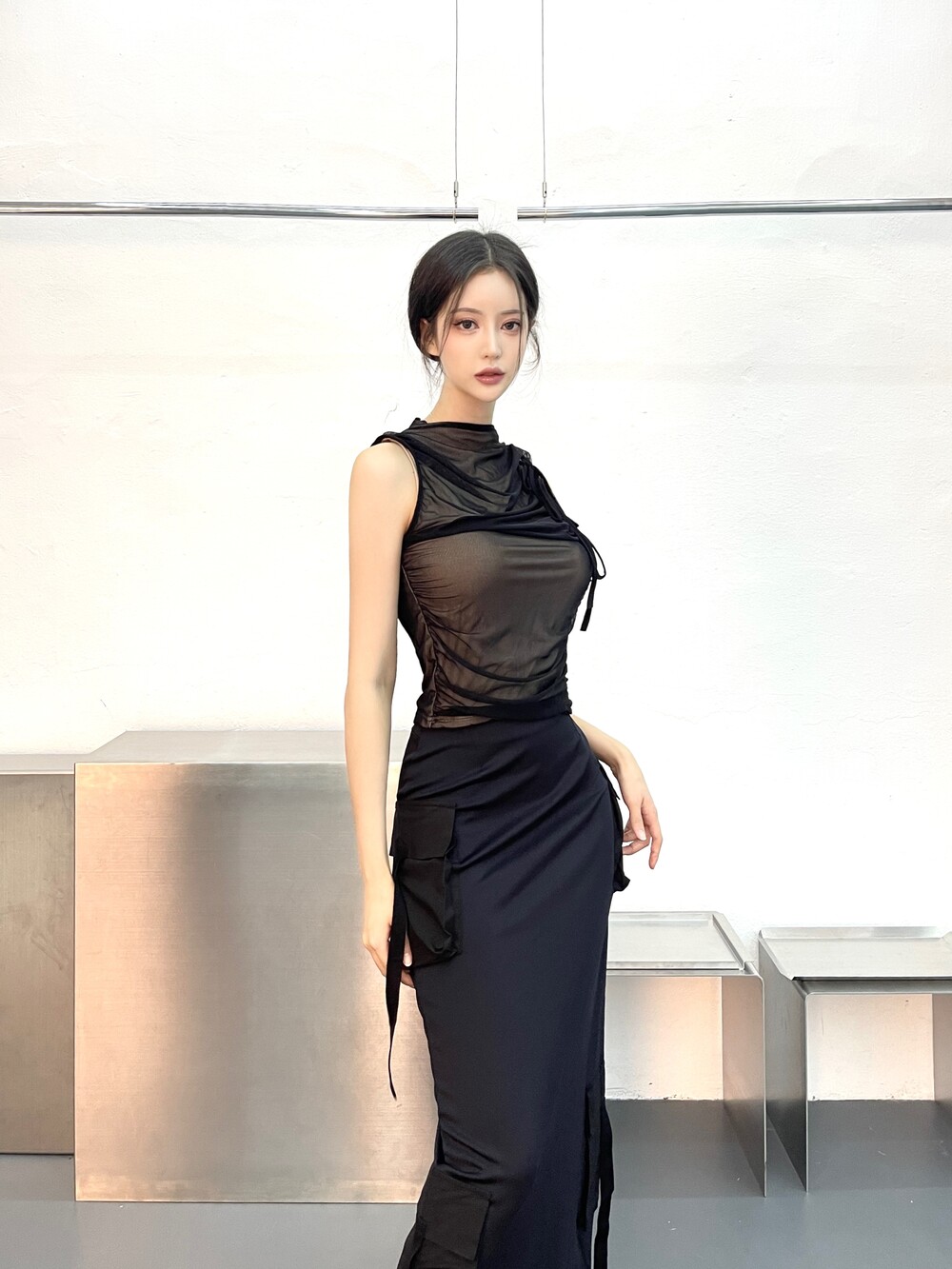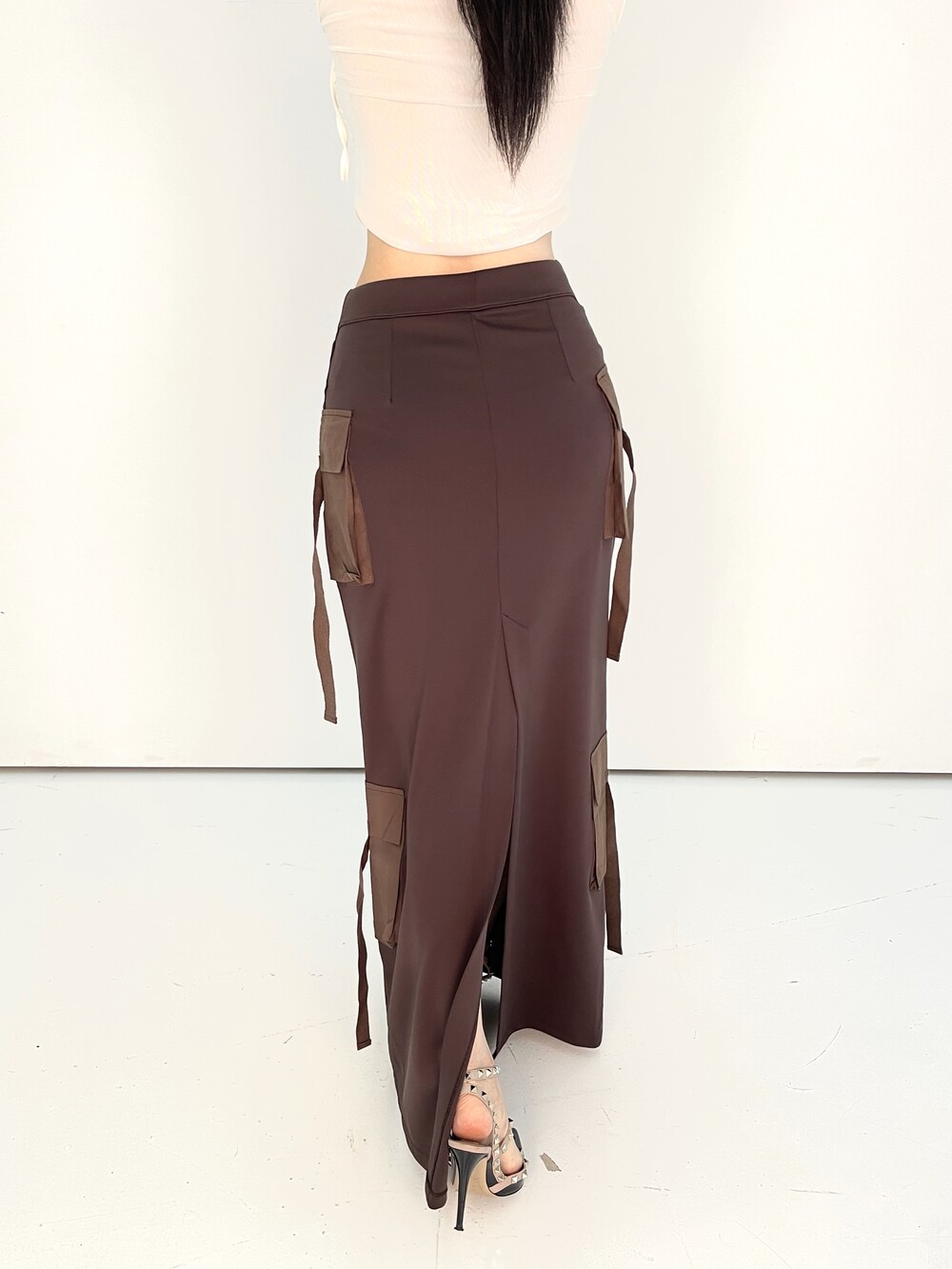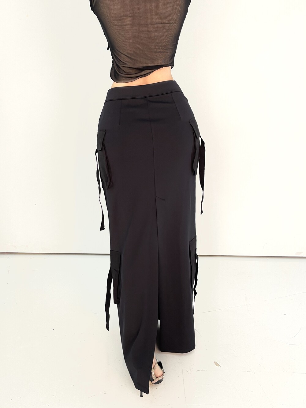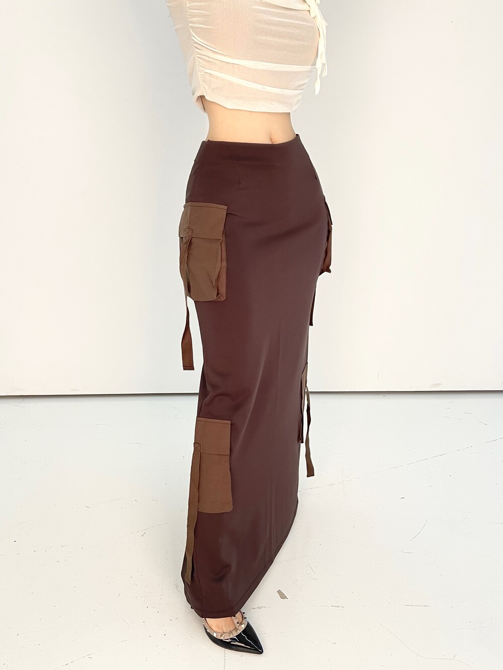 신축성이 좋은 원단으로 제작된 맥시 롱 스커트