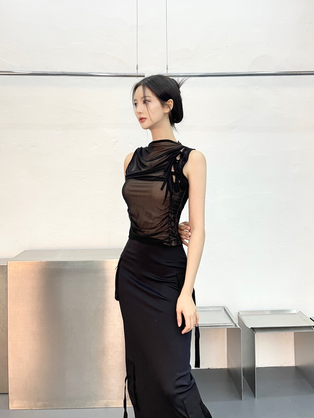 맥시한 기장으로 롱해보이는 레그라인과 우아한 분위기