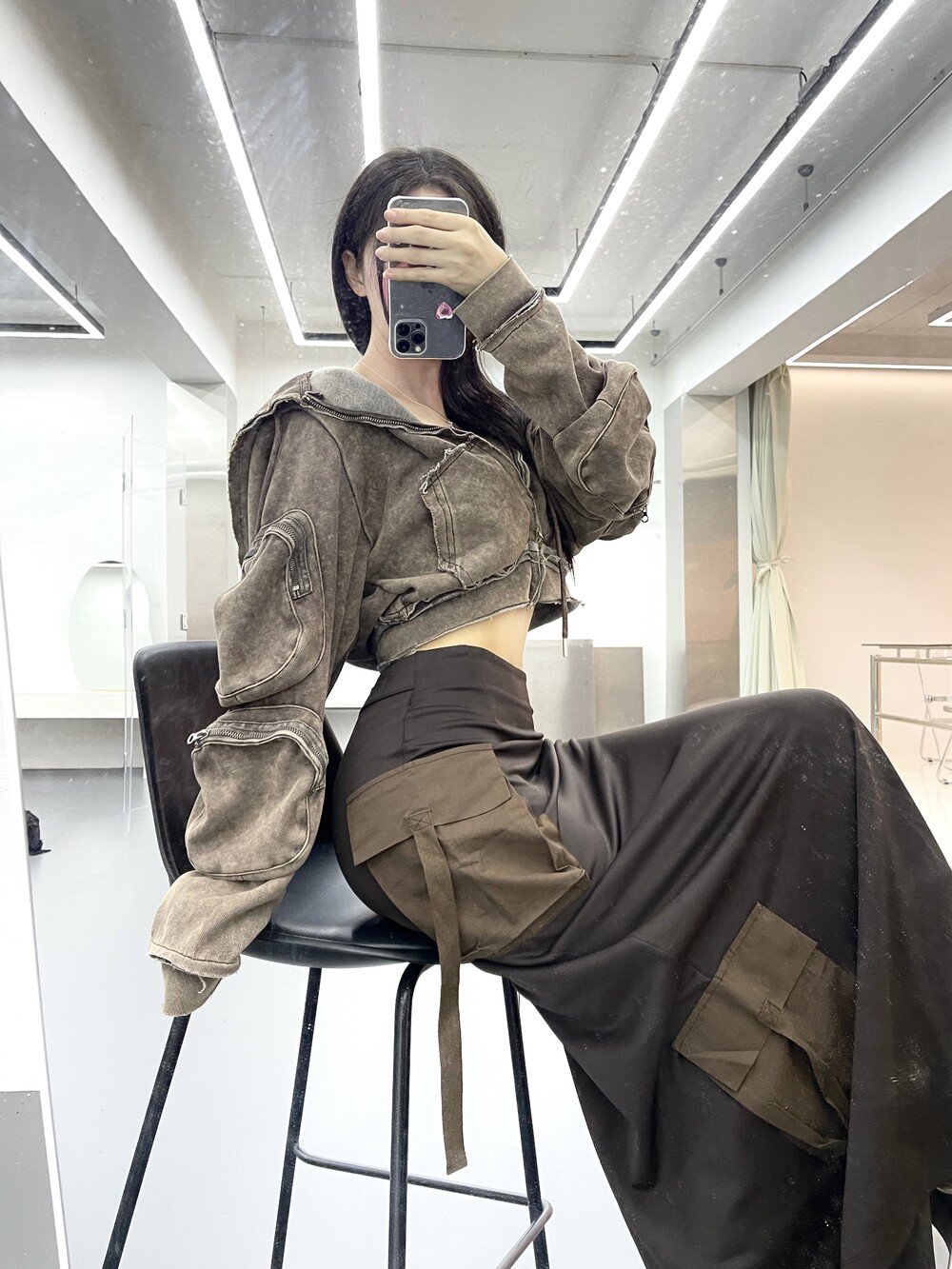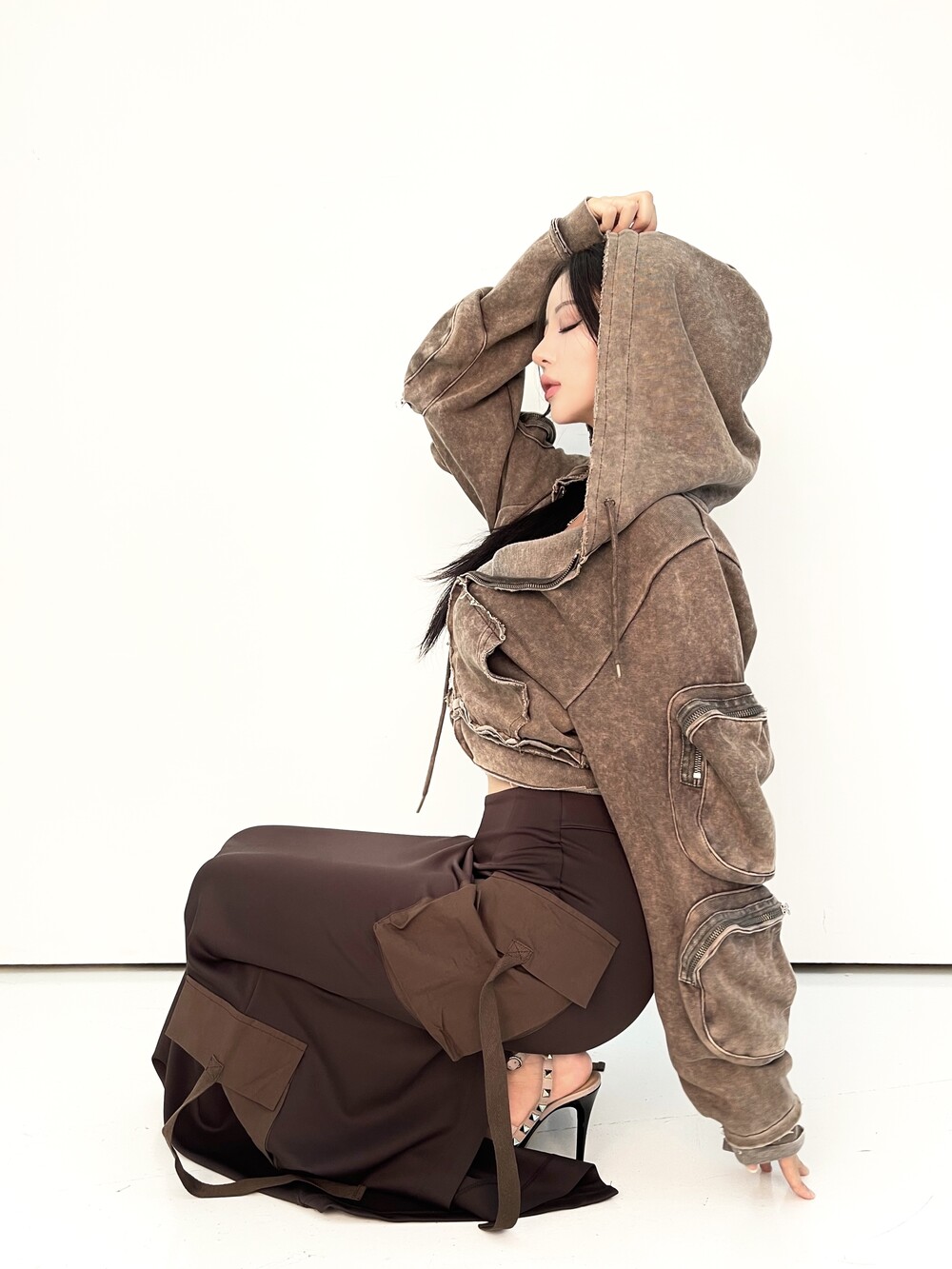 양 사이즈 스트랩 카고 포인트로 유니크한 스커트