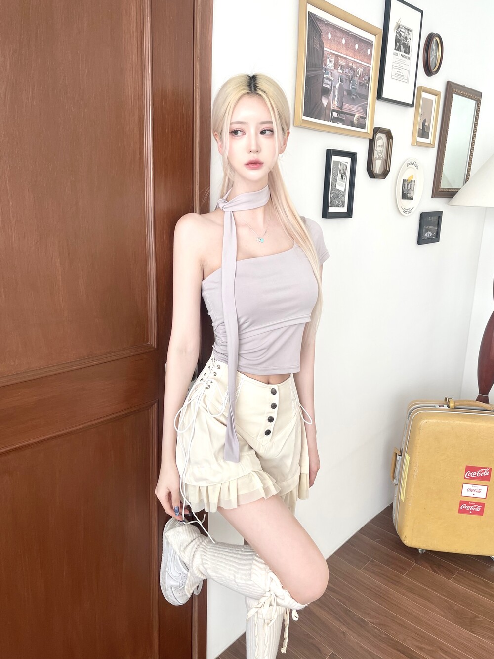 숏하지만 A라인 핏감이라 레그라인이 얇아보이는 효과