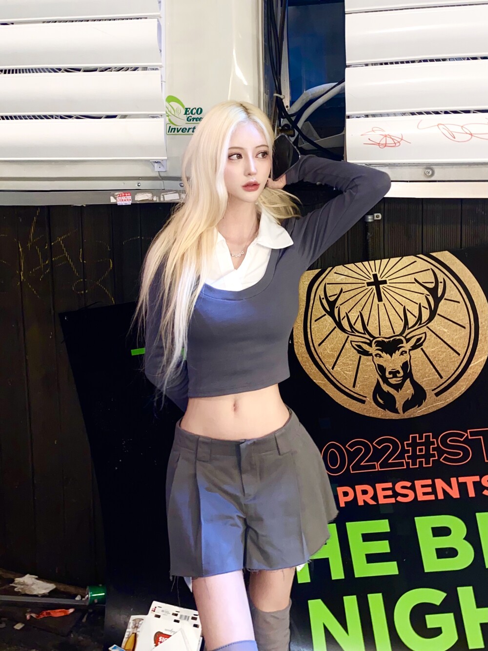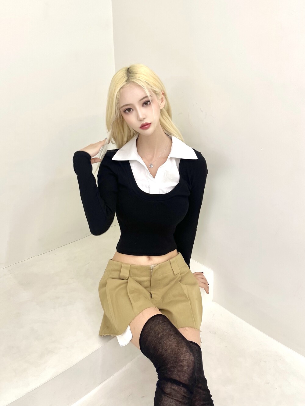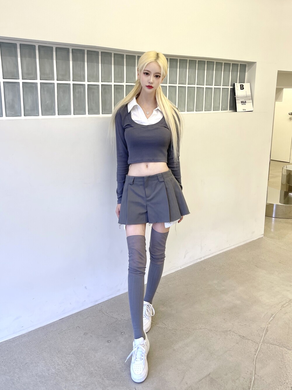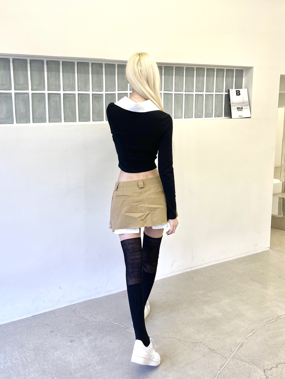 로우라이드 셔츠 레이어드 벨트 미니 핀턱 스커트팬츠