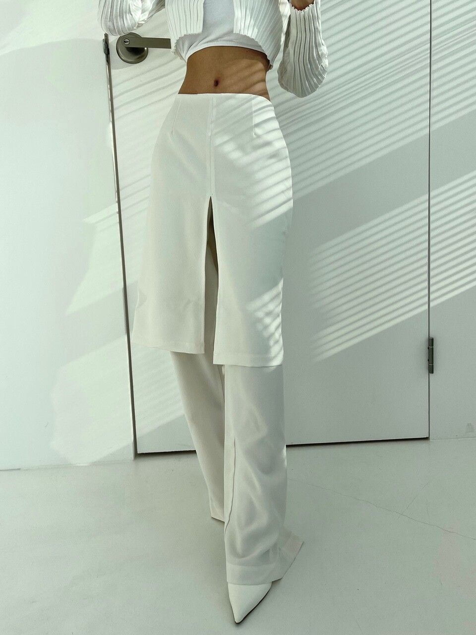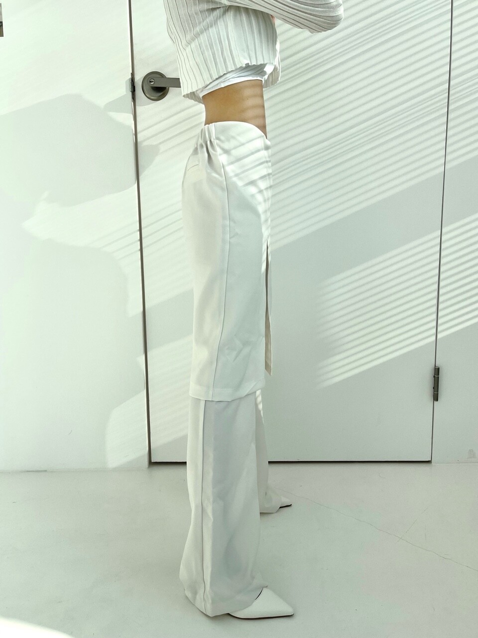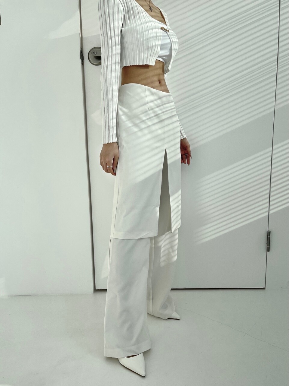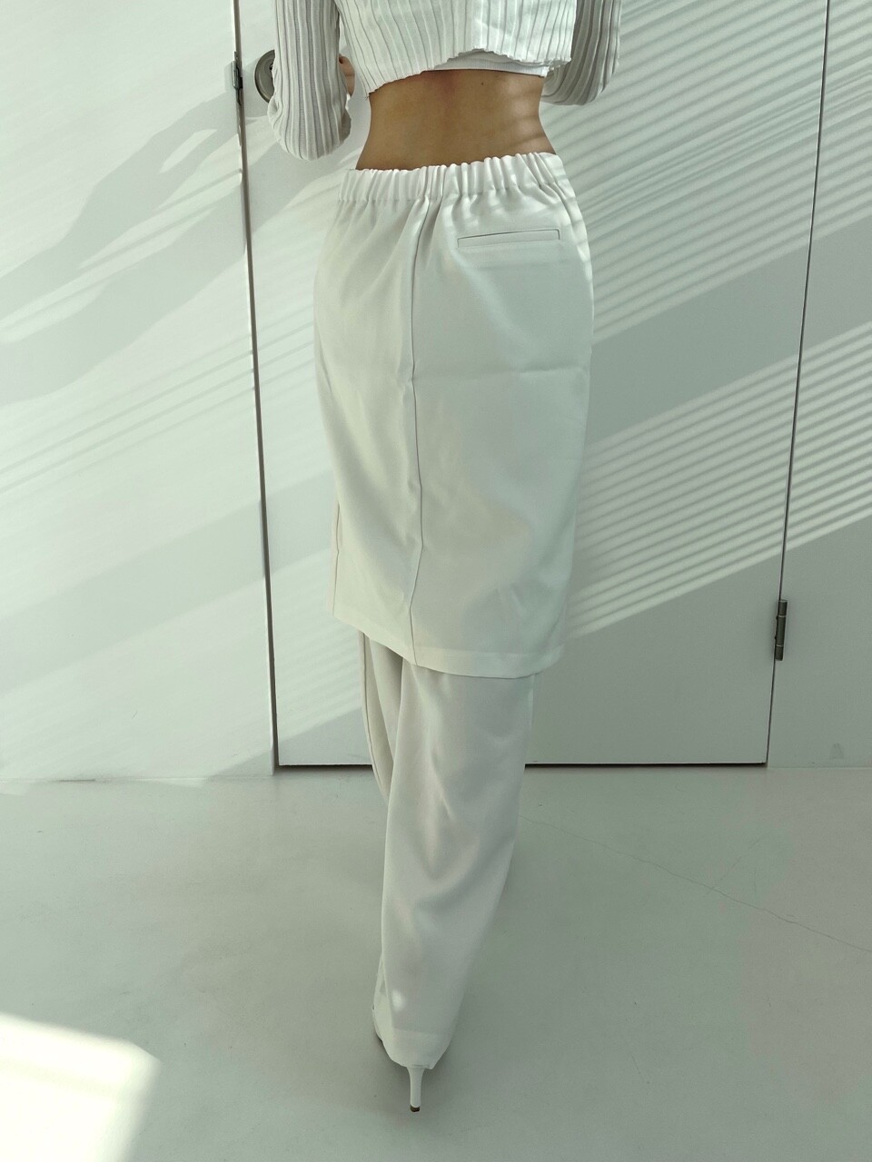 레이어드 로우웨스트 와이트 스커트 팬츠