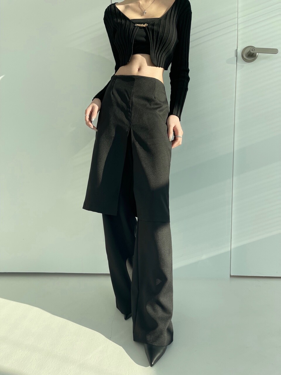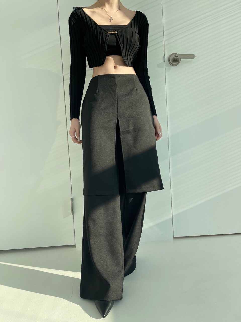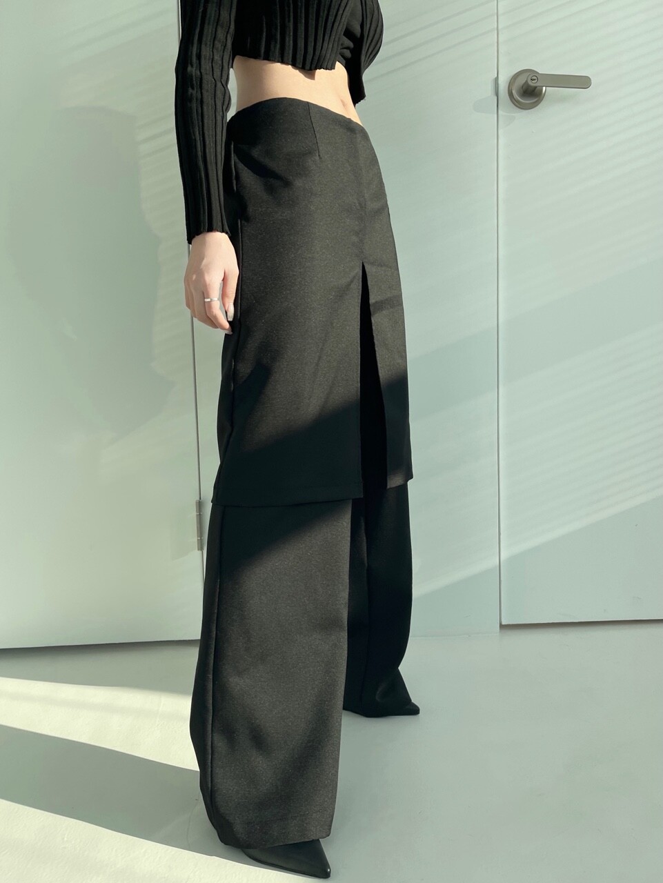 레이어드 로우웨스트 와이트 스커트 팬츠