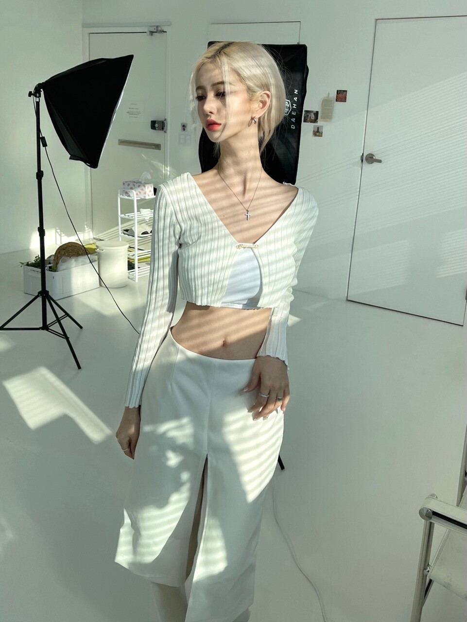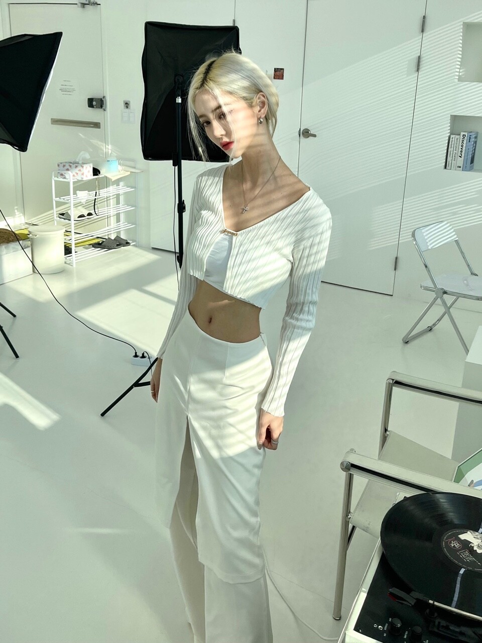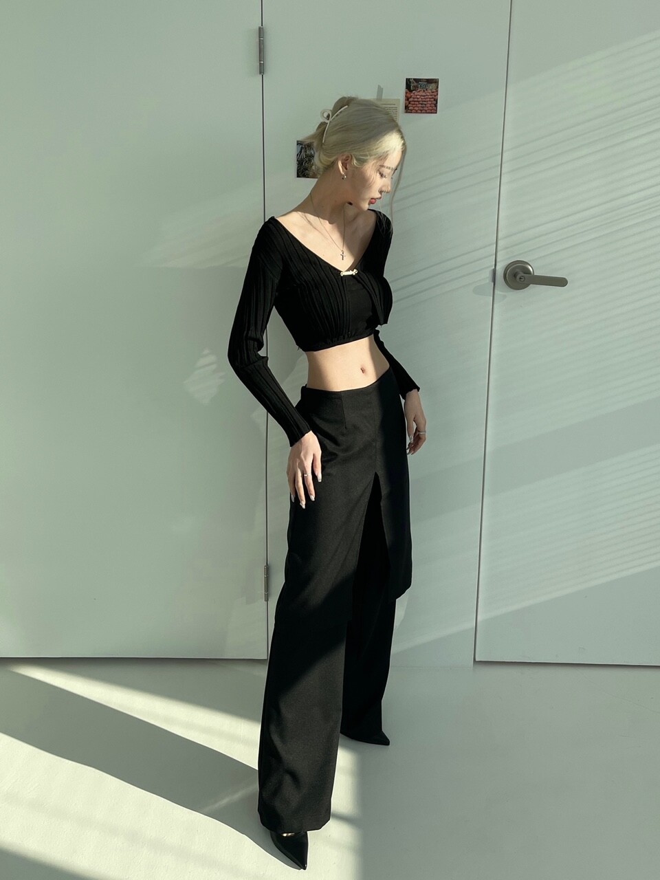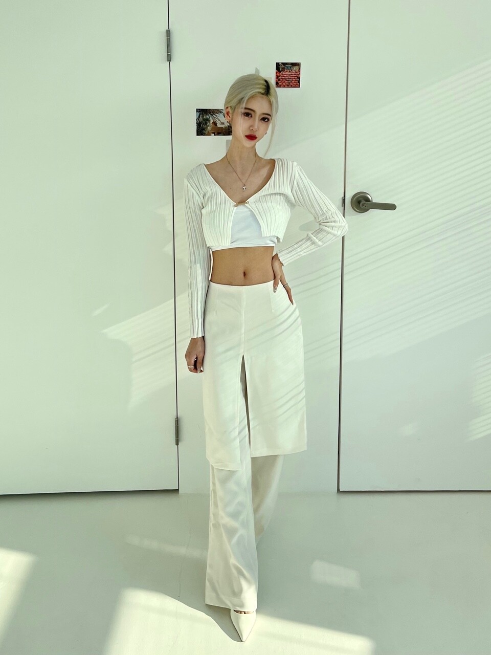 레이어드 로우웨스트 와이트 스커트 팬츠