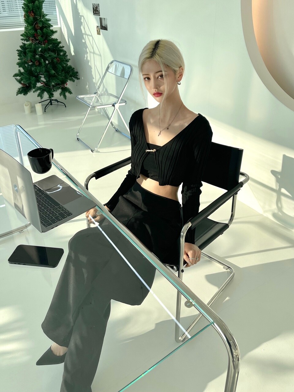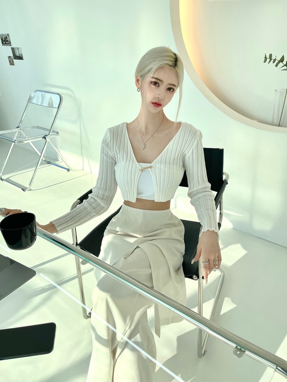 와이드 맥시 핏으로 로우웨스트지만 레그라인이 롱해보이는 효과