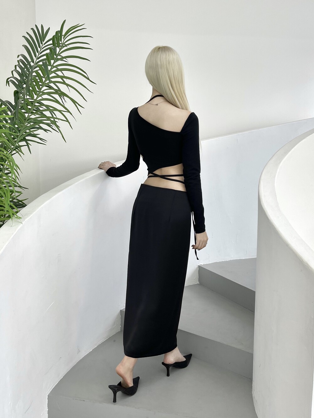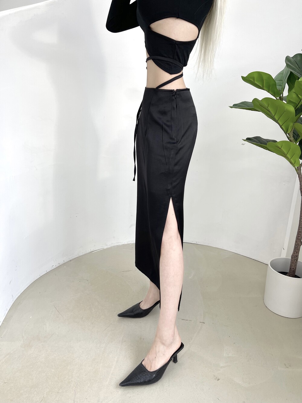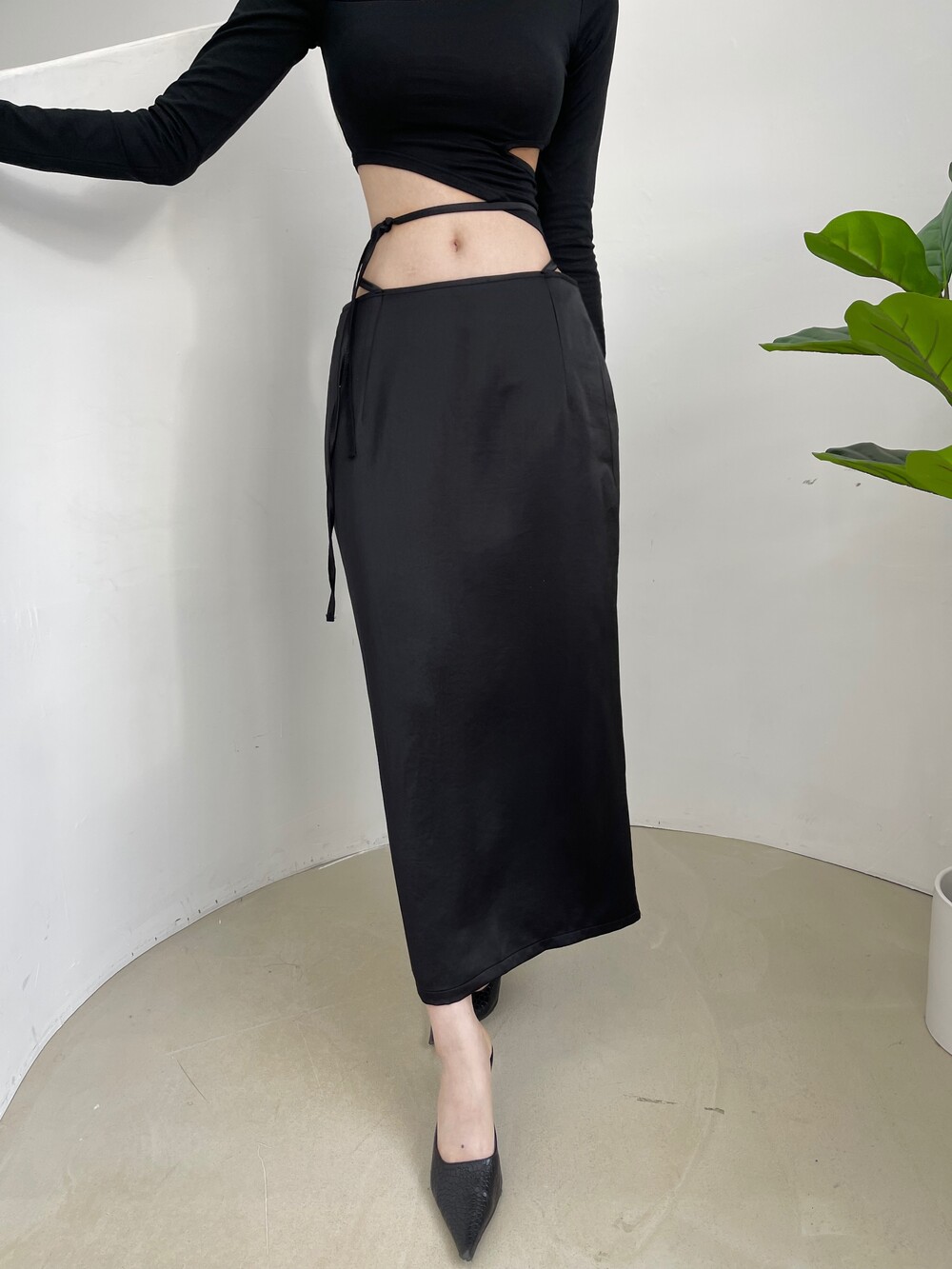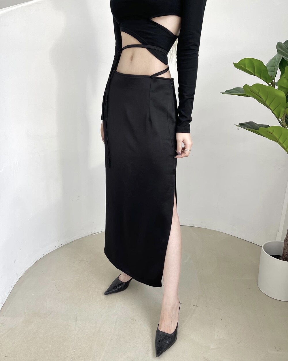 로우웨스트 맥시 딥슬립 스트랩 라인 스커트