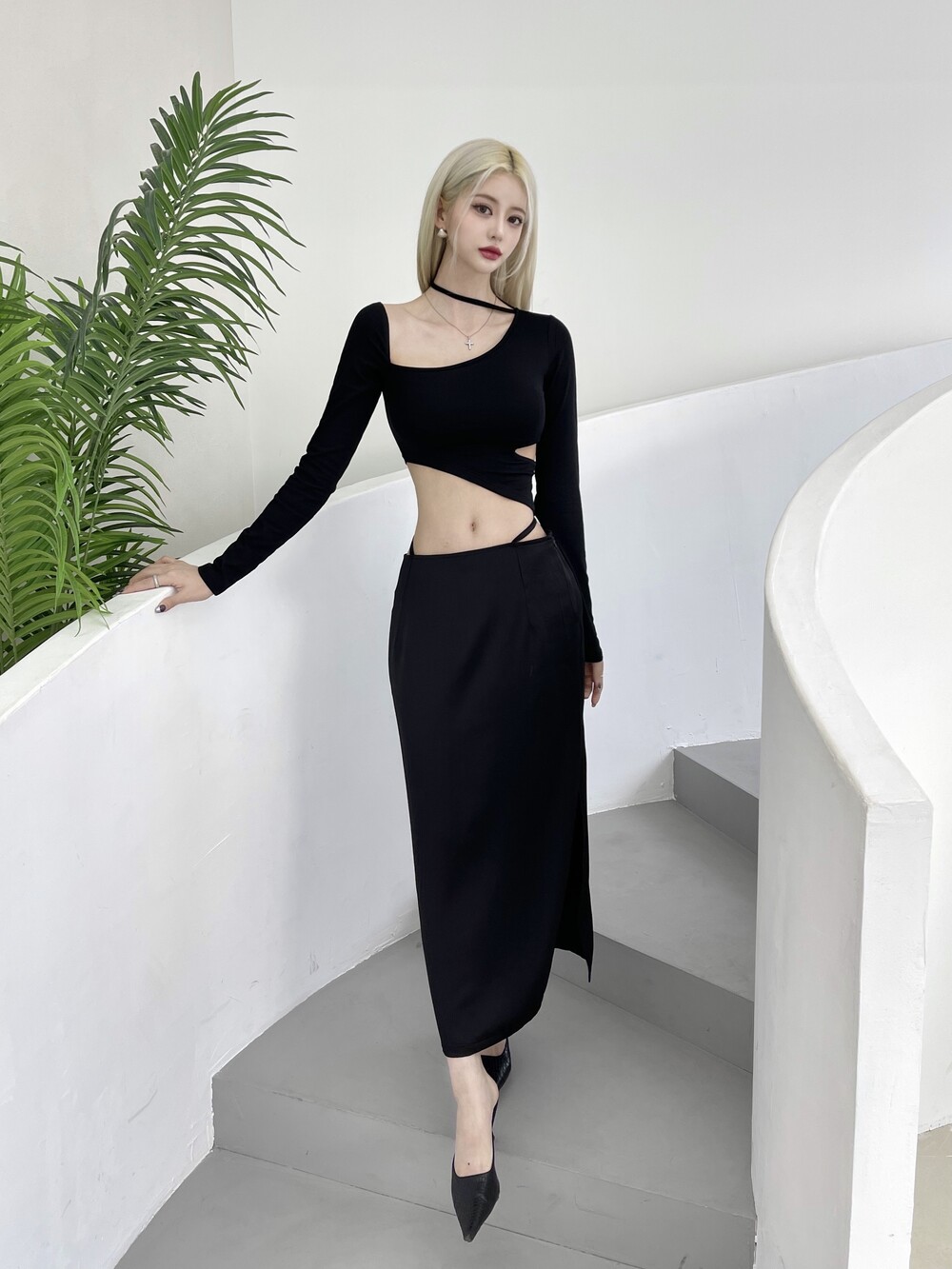 트임을 한쪽에 딥하게 주어 시원한 느낌,