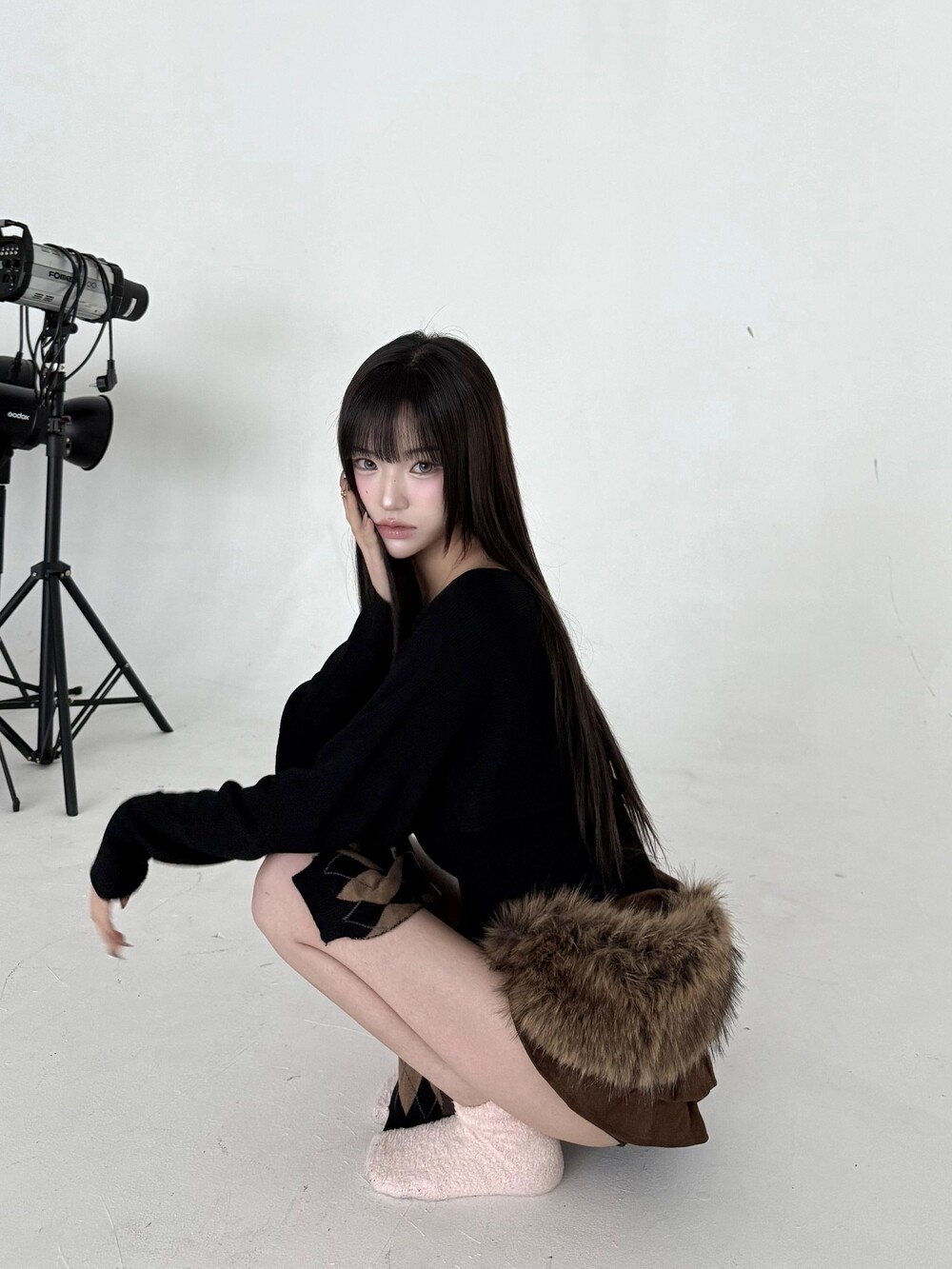 아가일 패턴 짜임이 포근하게 감싸주며 여리한 실루엣