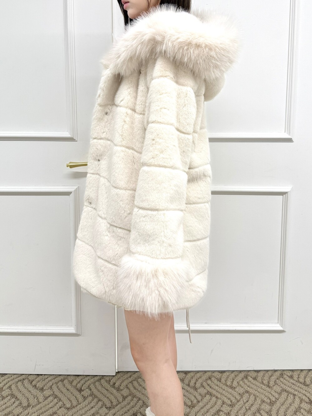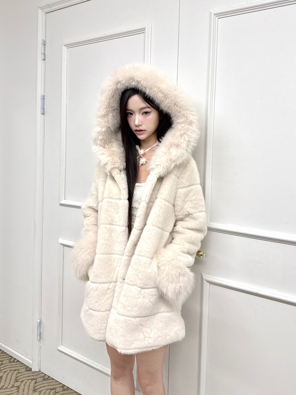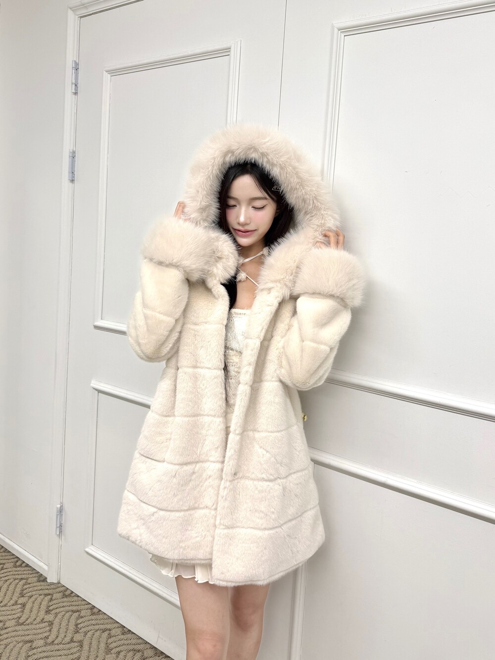 실제 퍼와 유사한 비건 에코 폭스 퍼 자켓