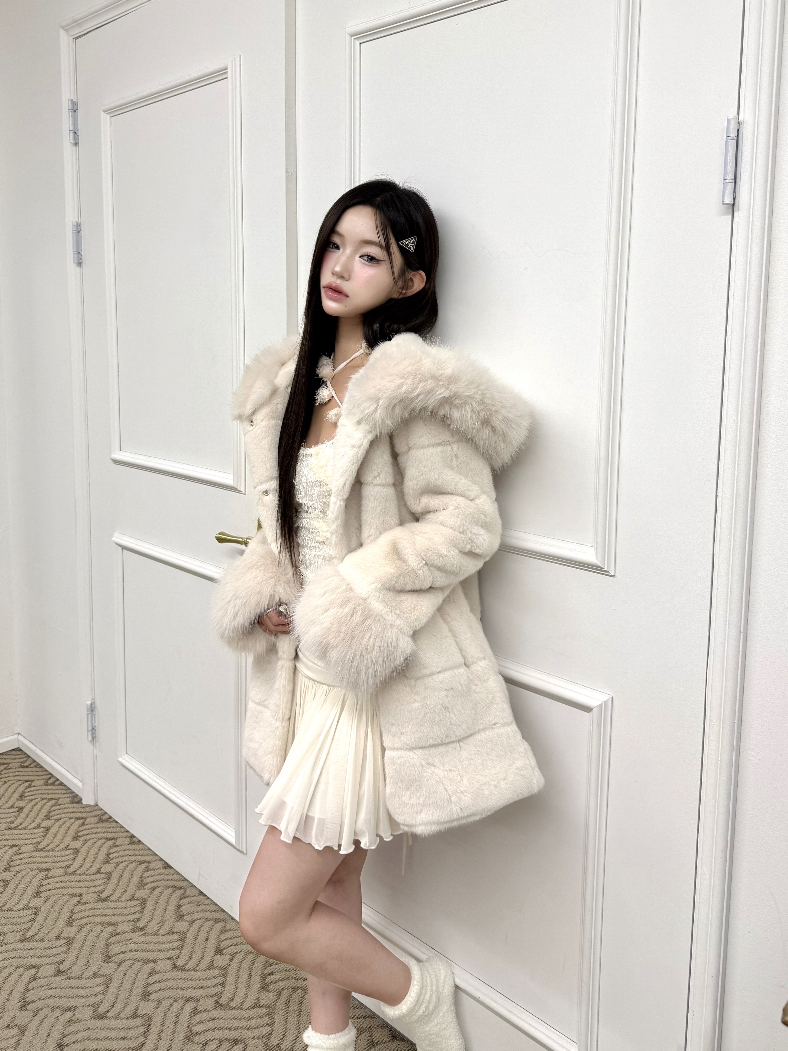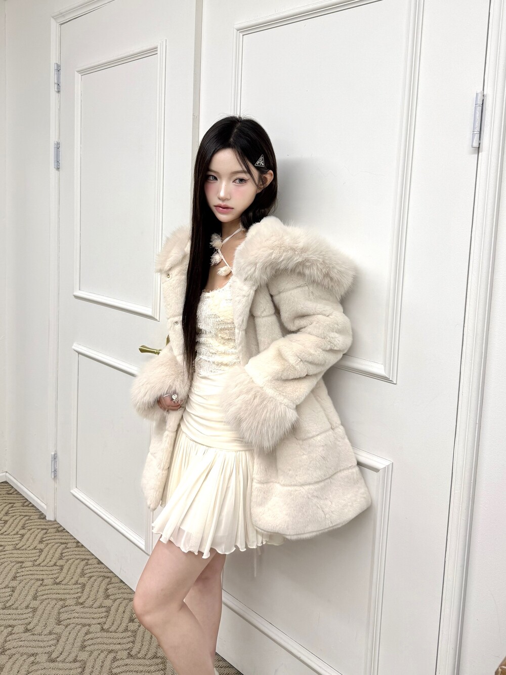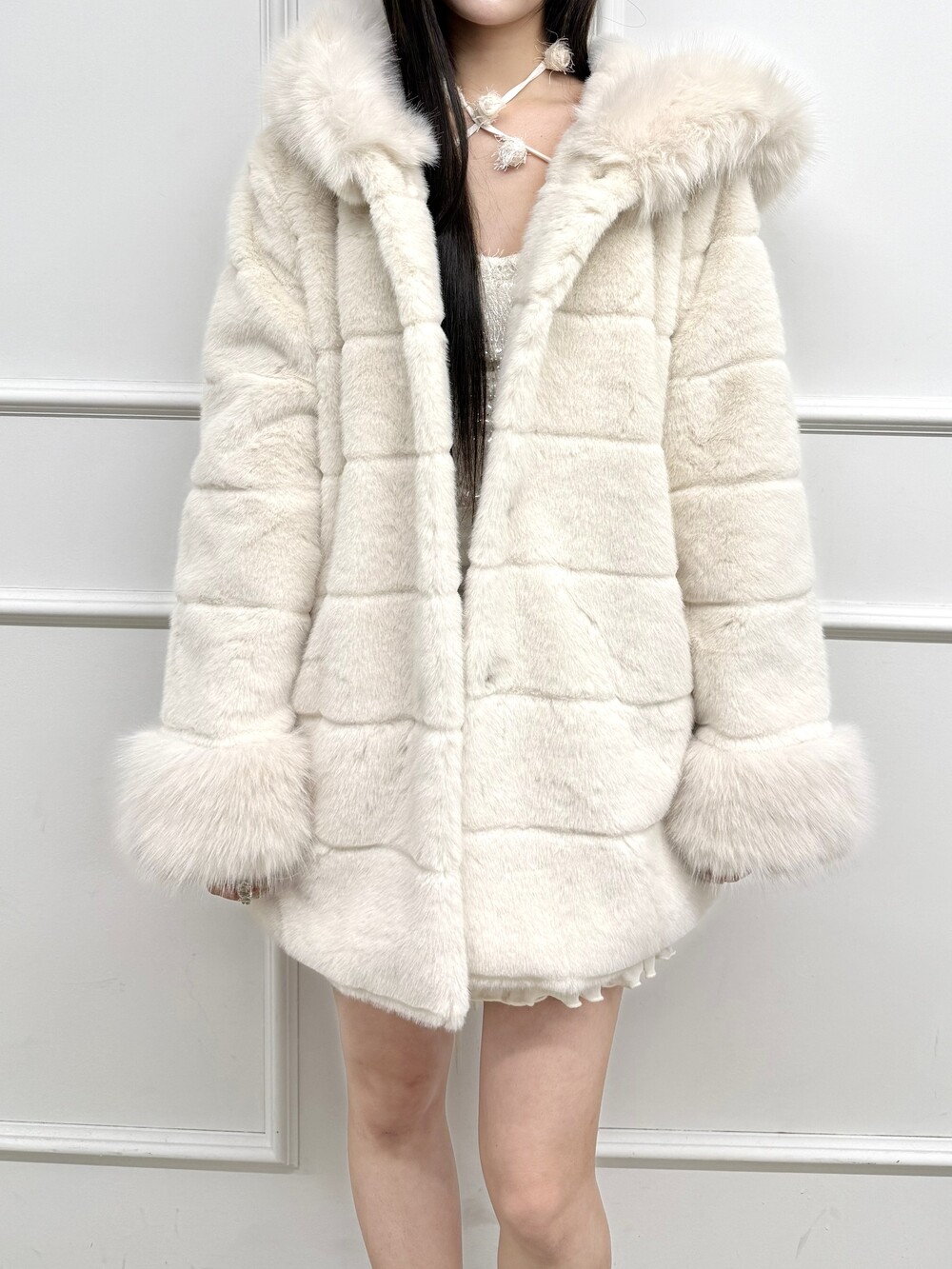 실제 퍼와 유사한 비건 에코 폭스 퍼 자켓