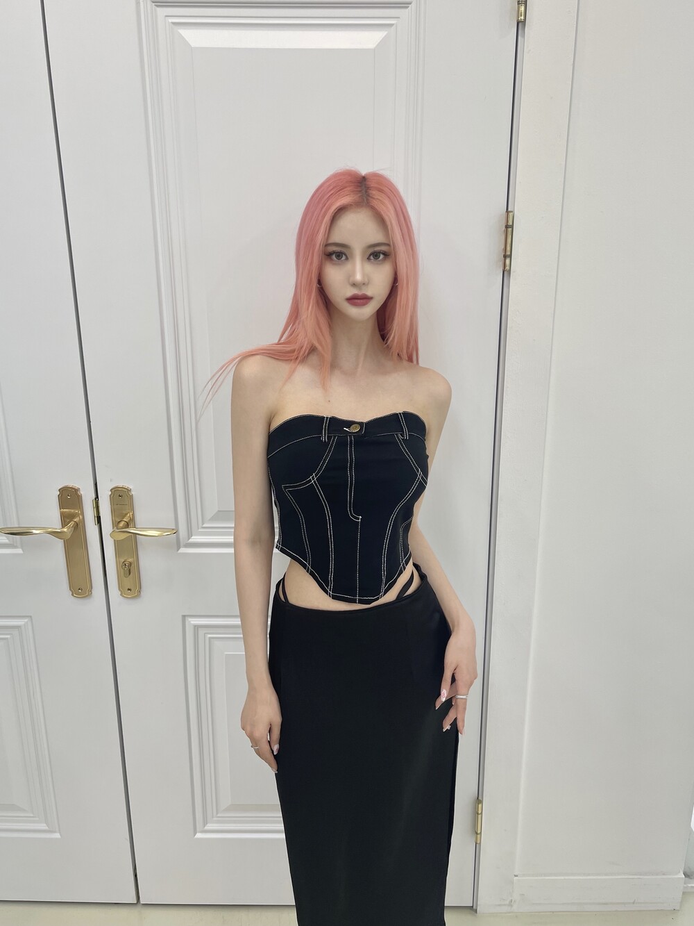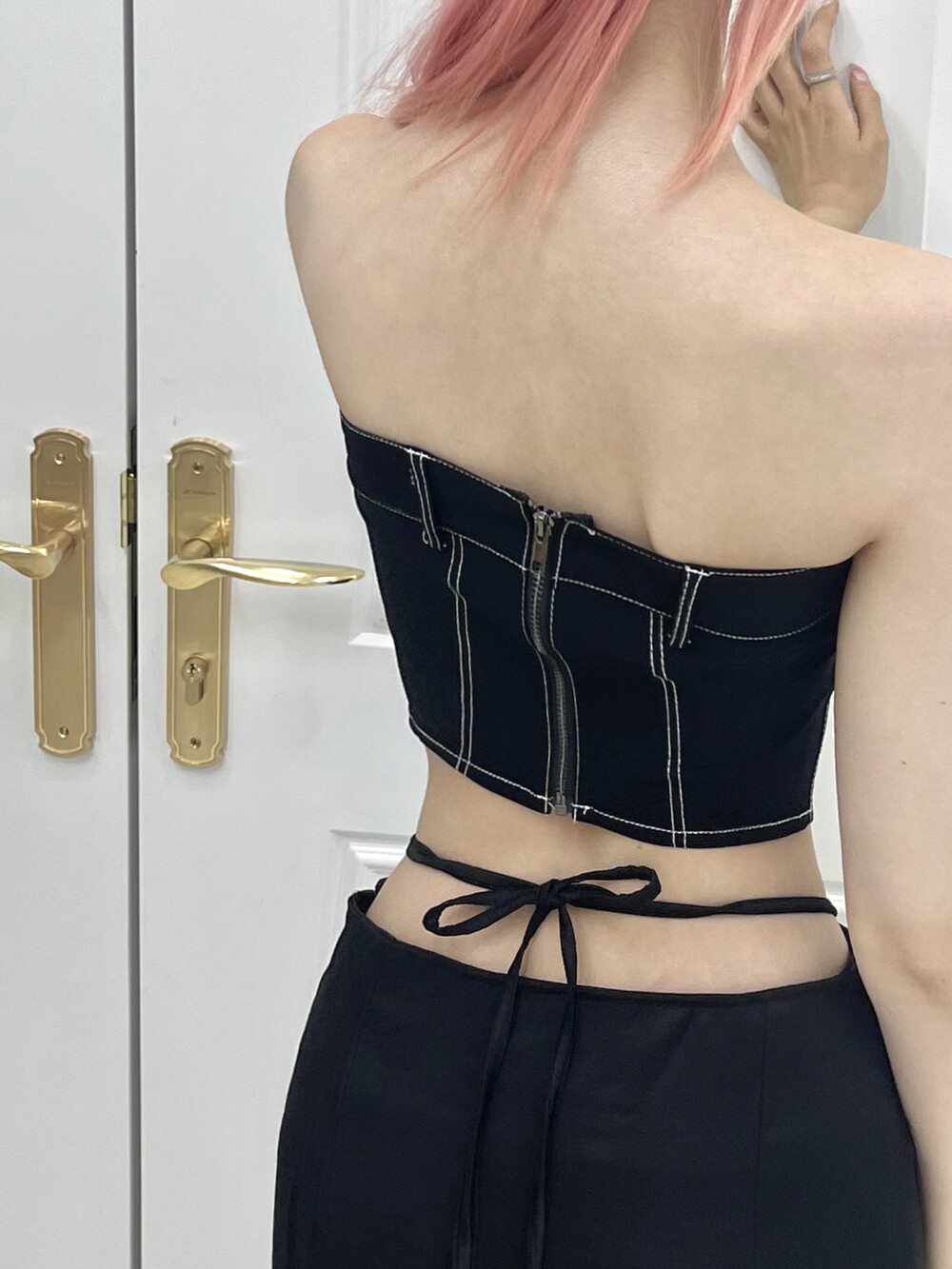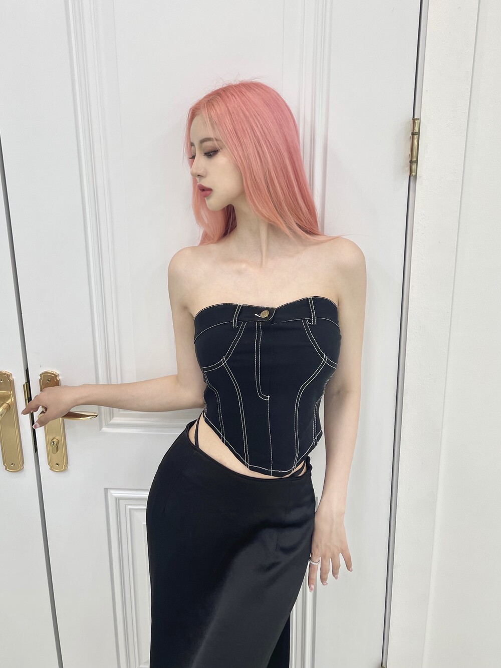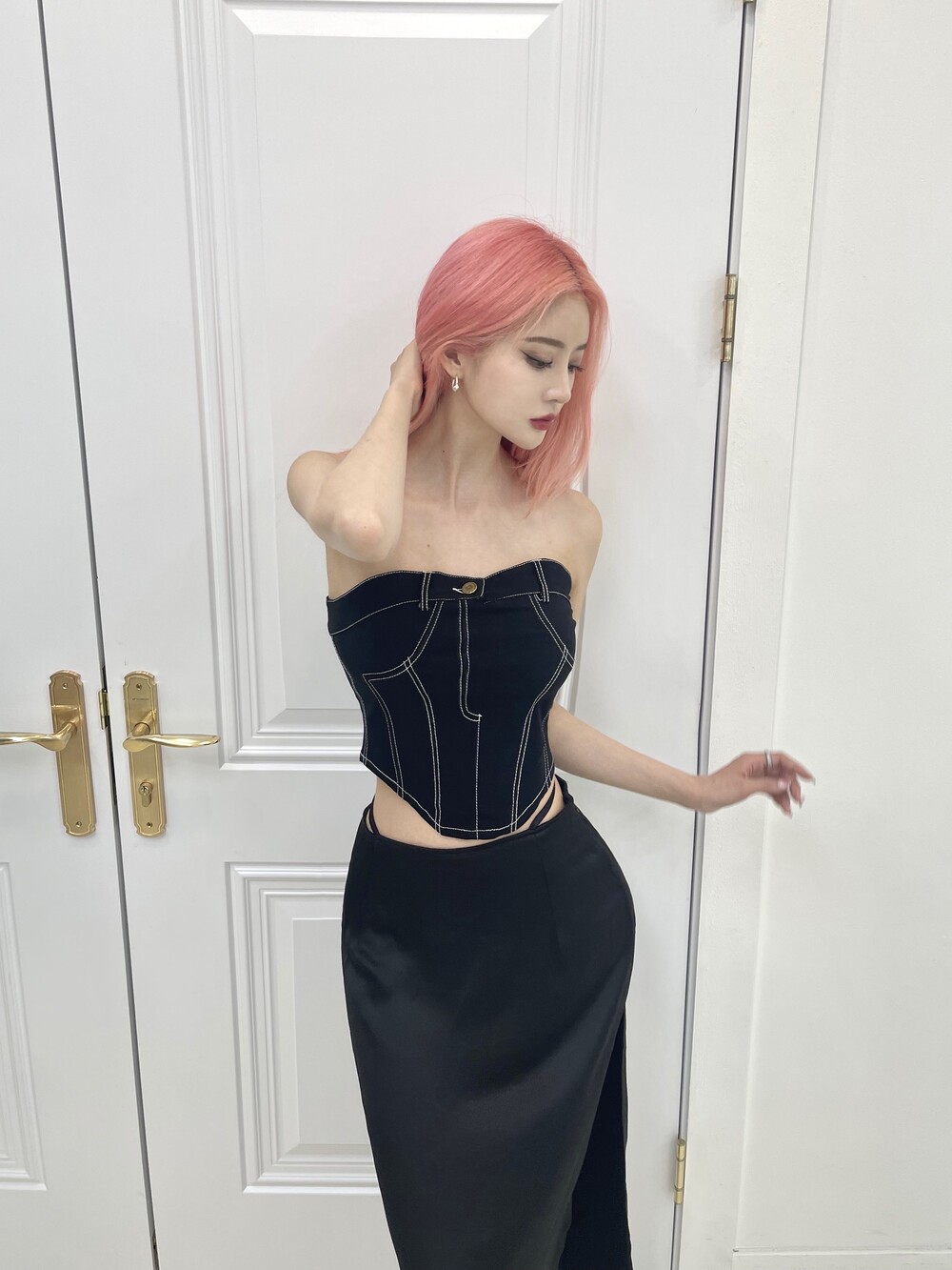 데님 디자인의 코르셋 커브라인 튜브탑 (블랙 컬러 버전)