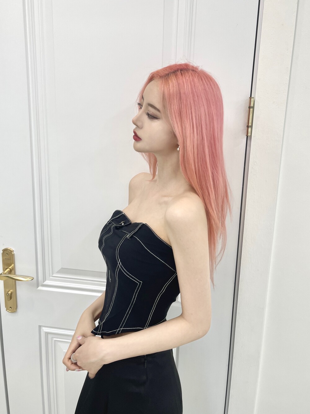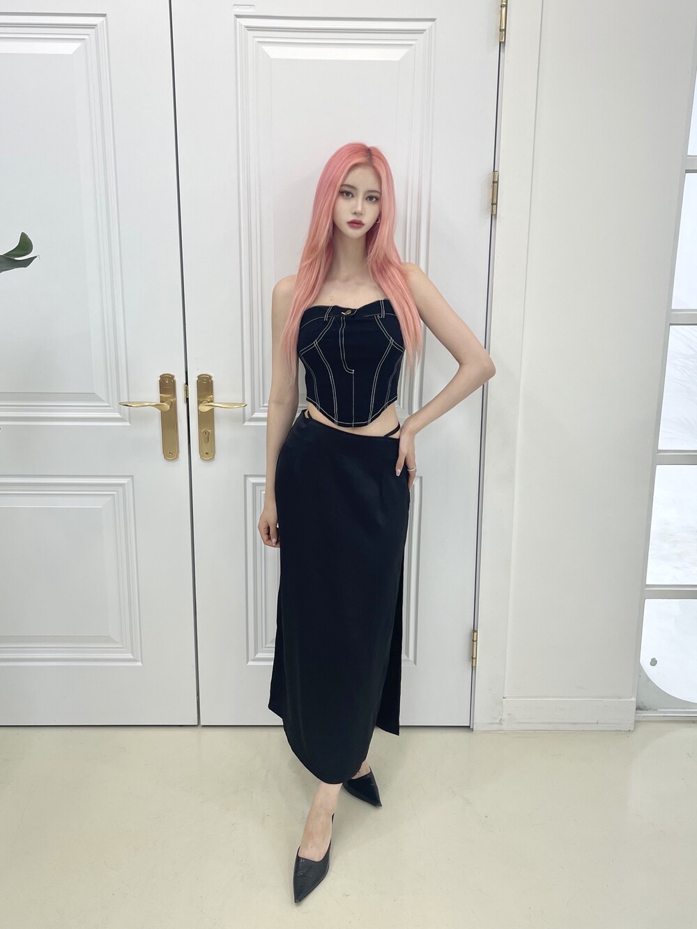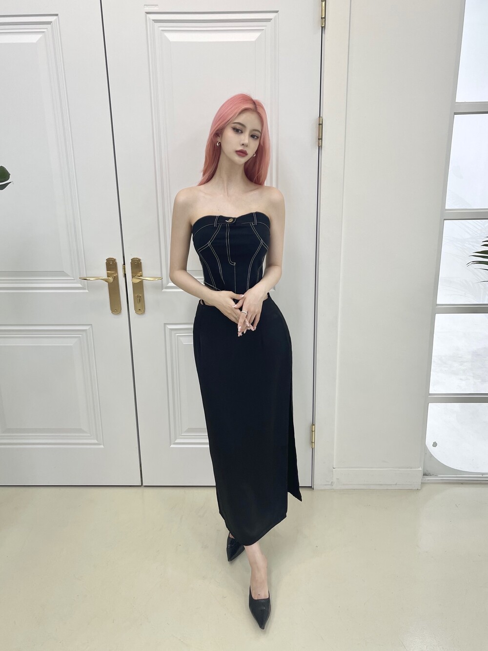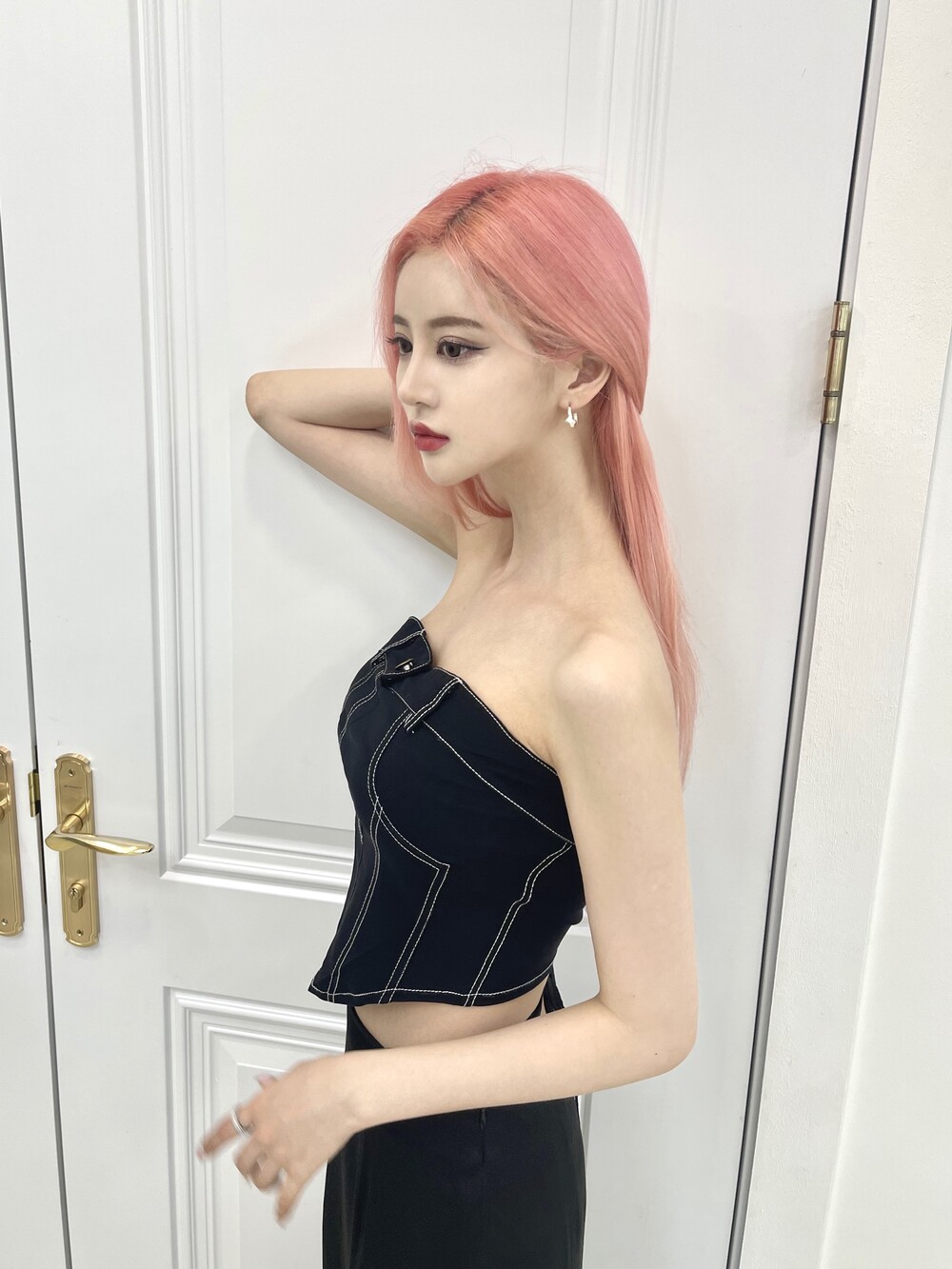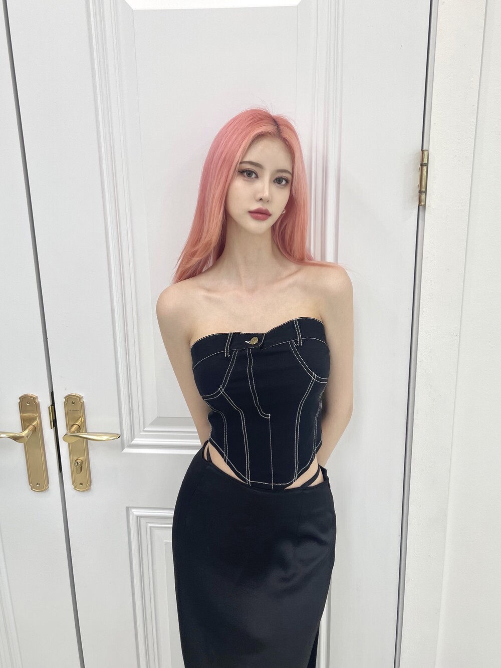 데님 디자인의 코르셋 커브라인 튜브탑 (블랙 컬러 버전)