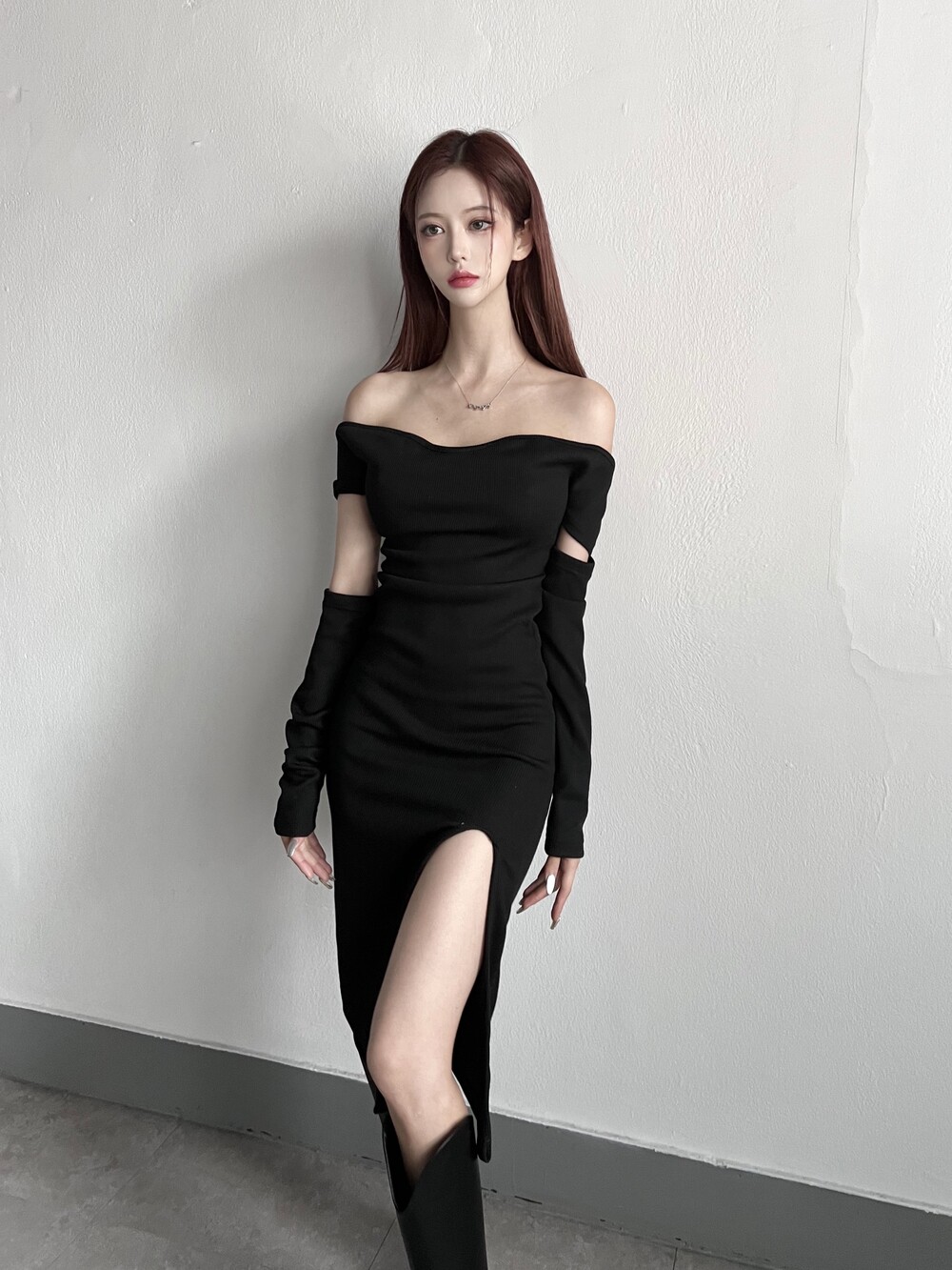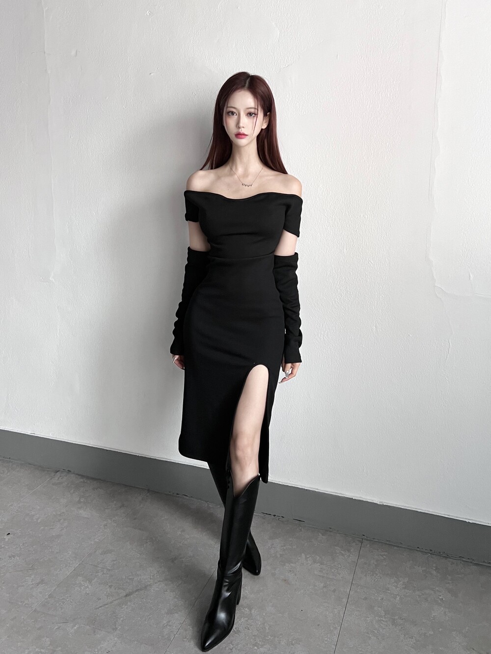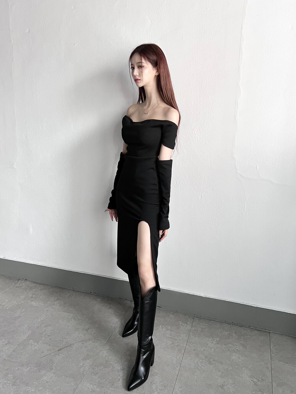 커브 오프숄더 워머세트 슬릿 롱 원피스
