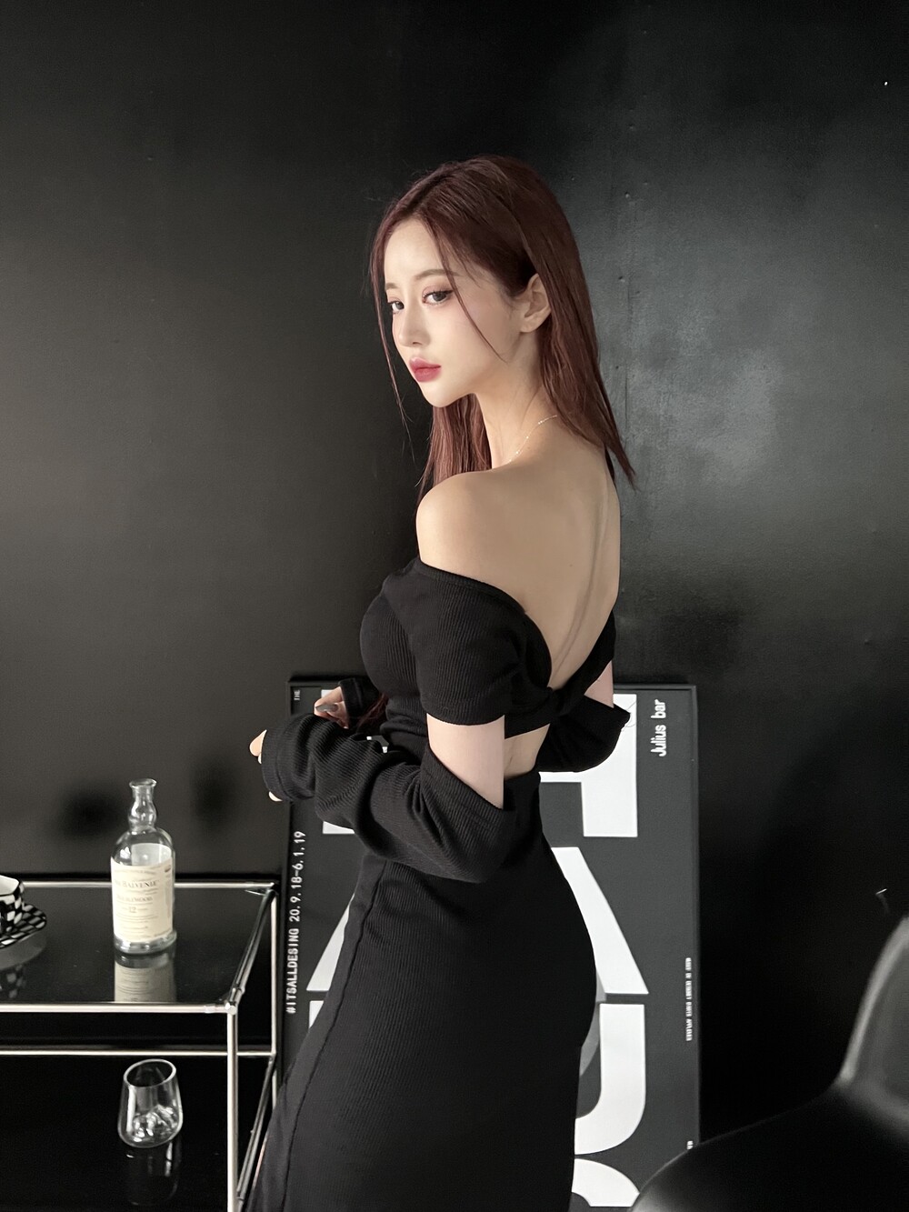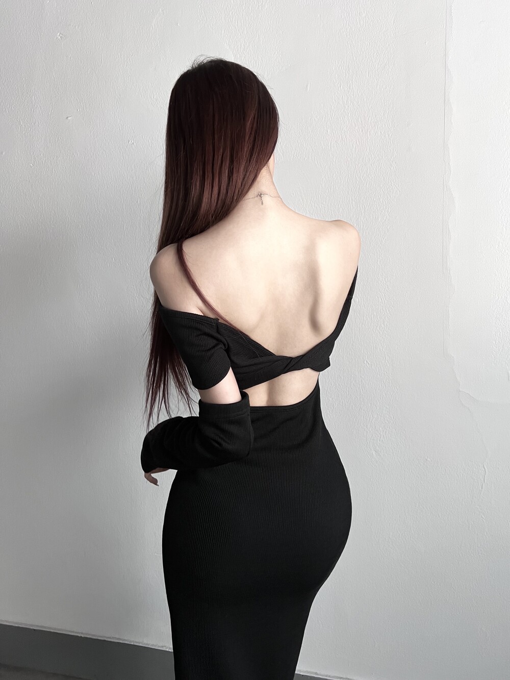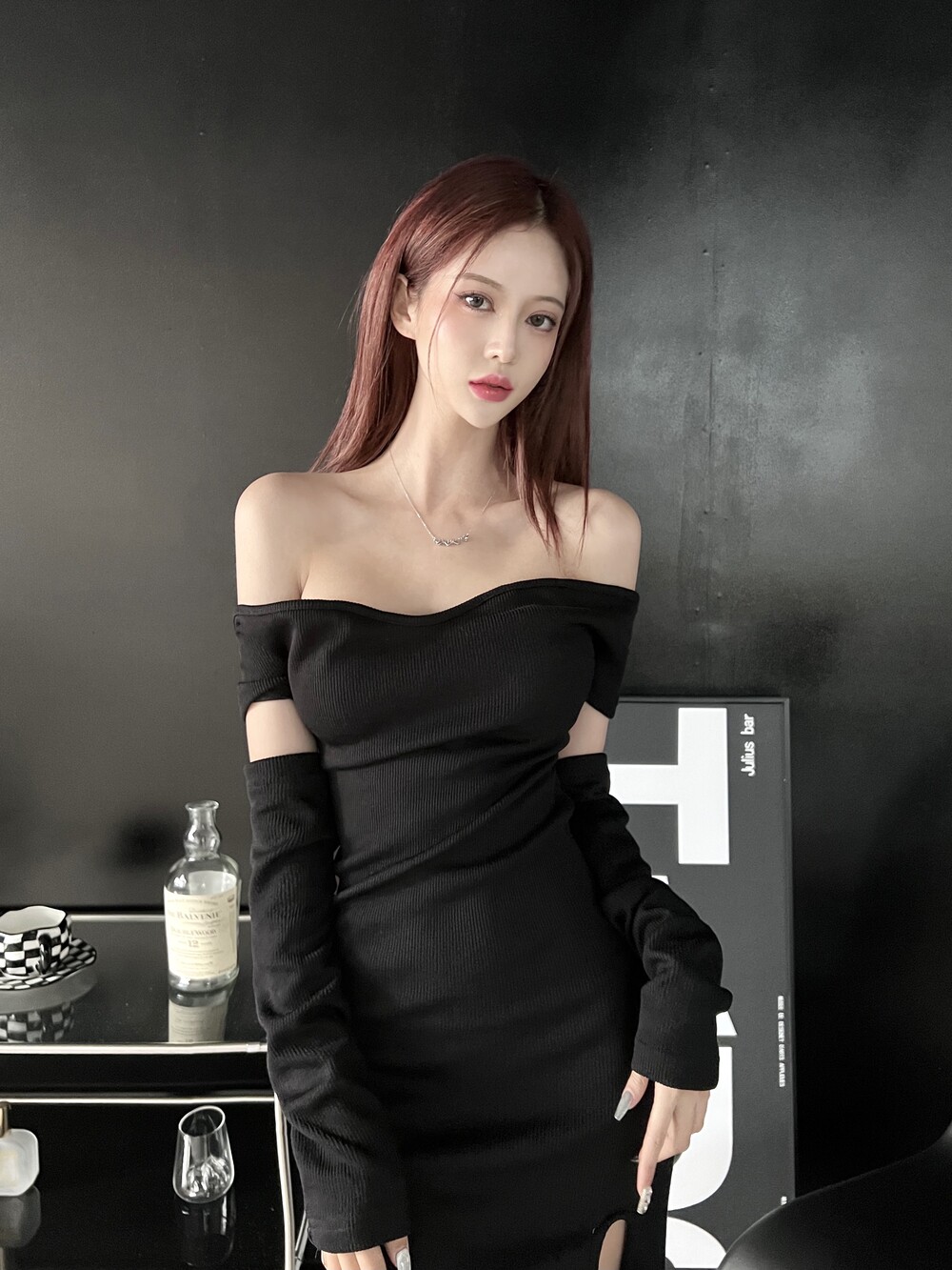 커브 오프숄더 워머세트 슬릿 롱 원피스