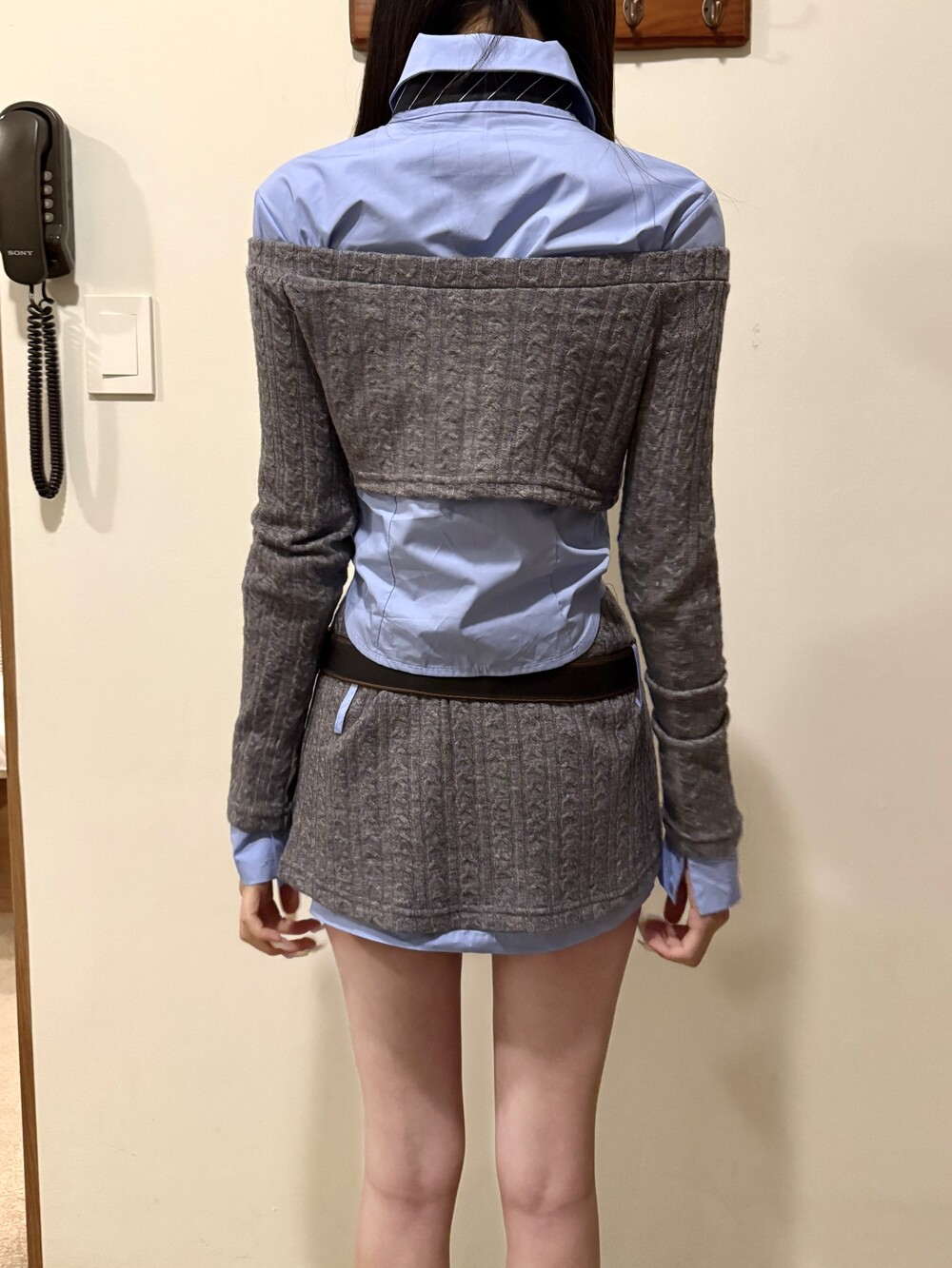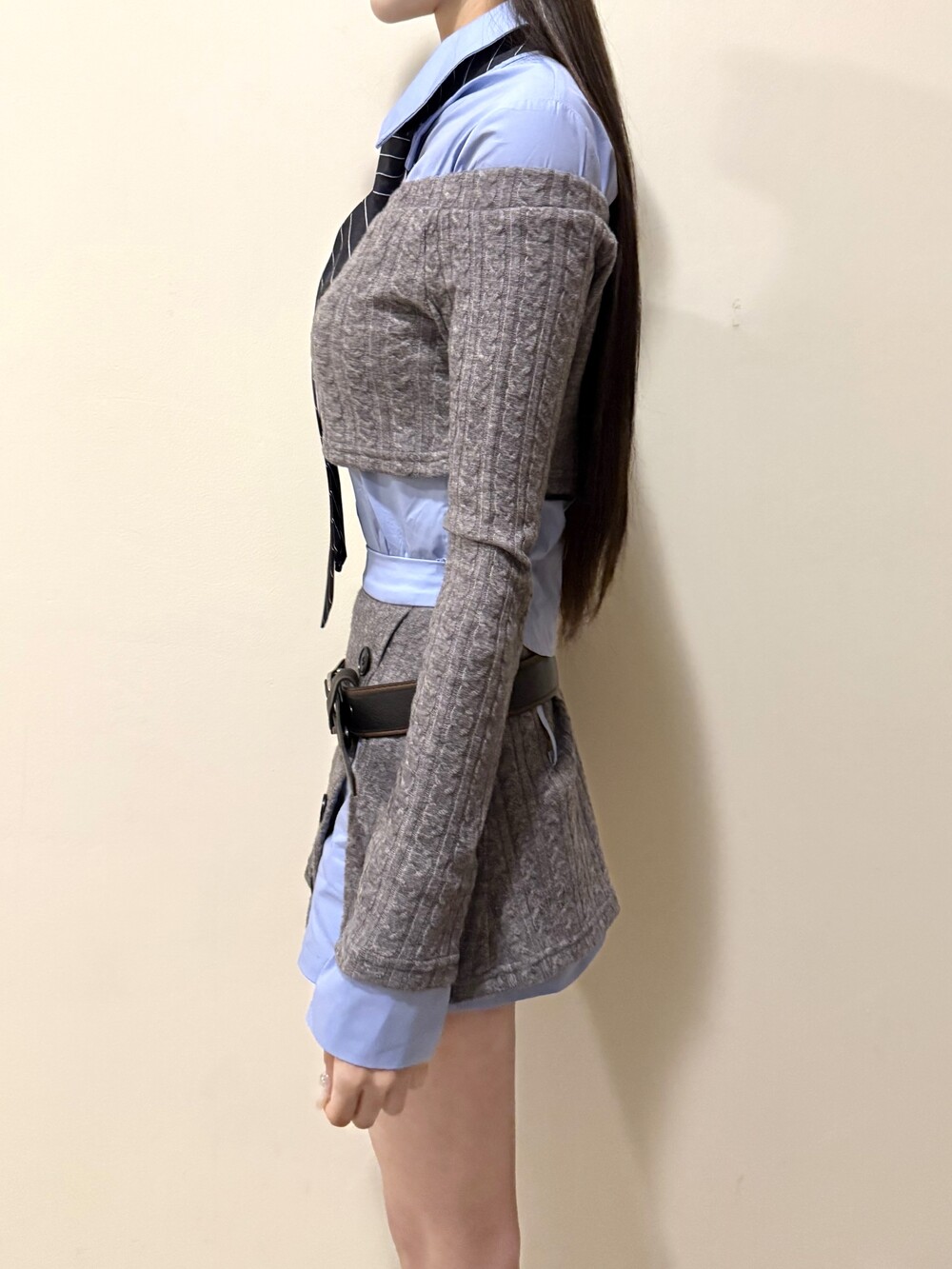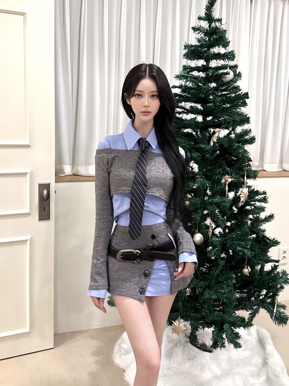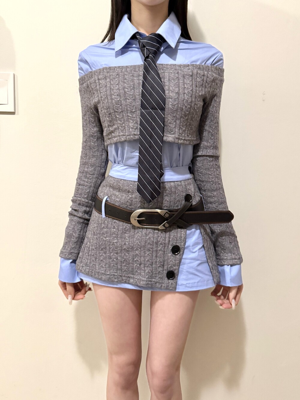 셔츠/니트 오프숄더 탑/스커트/벨트/넥타이 세트 아이템
