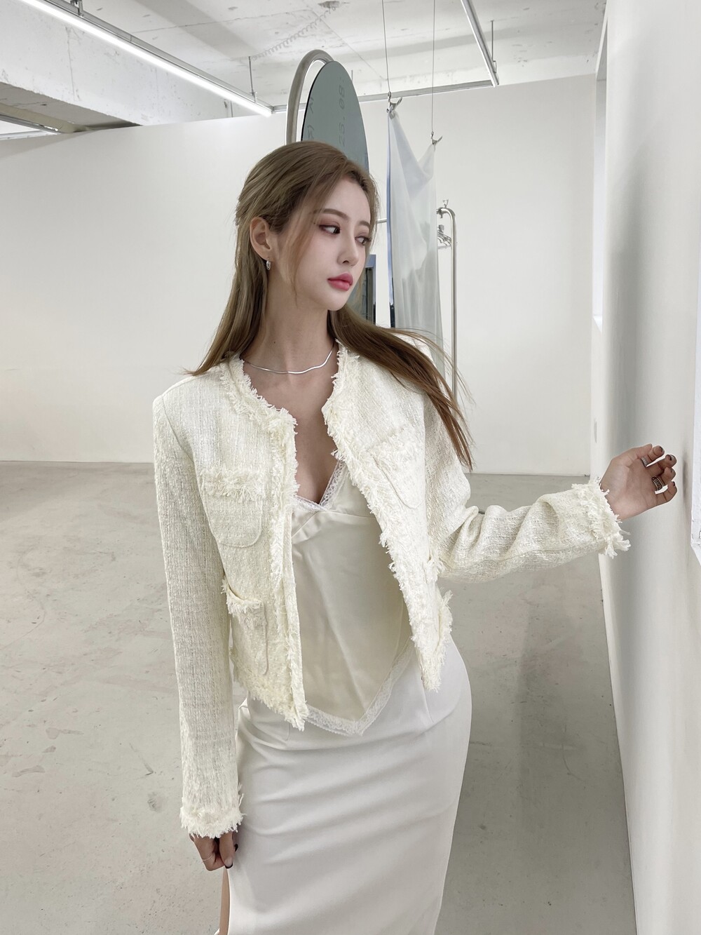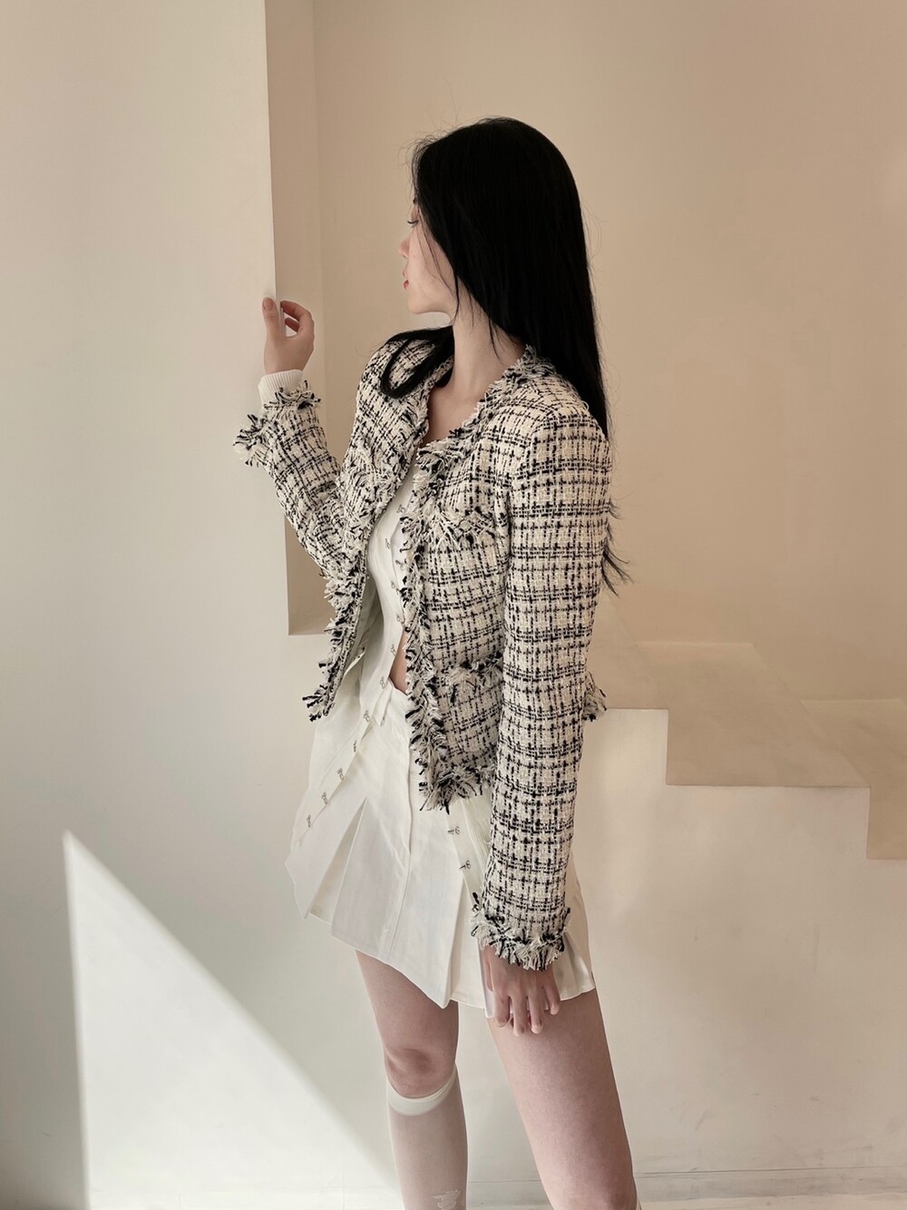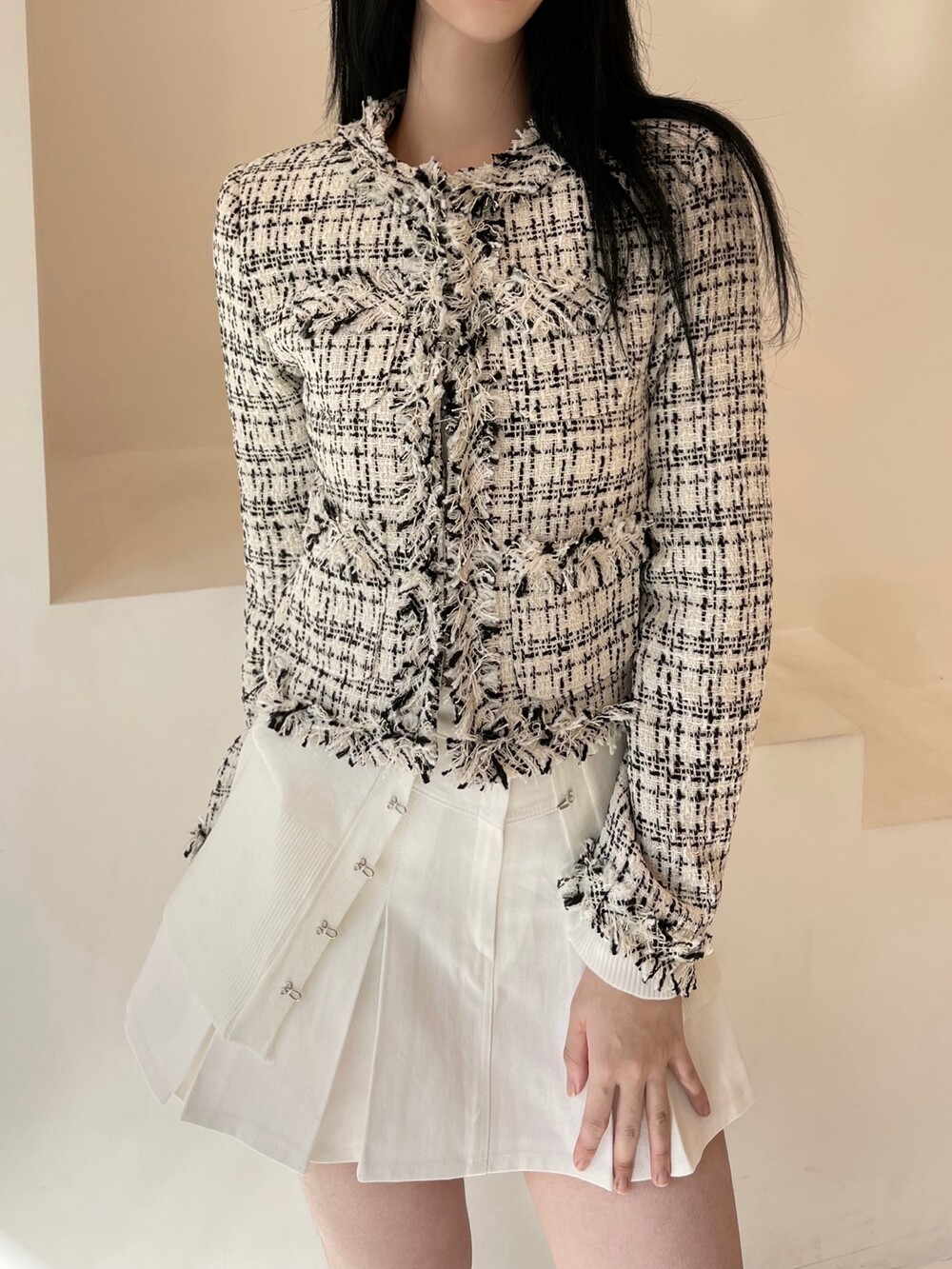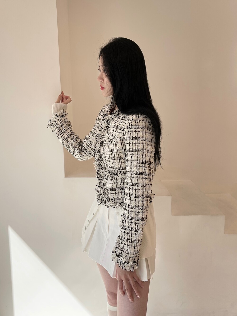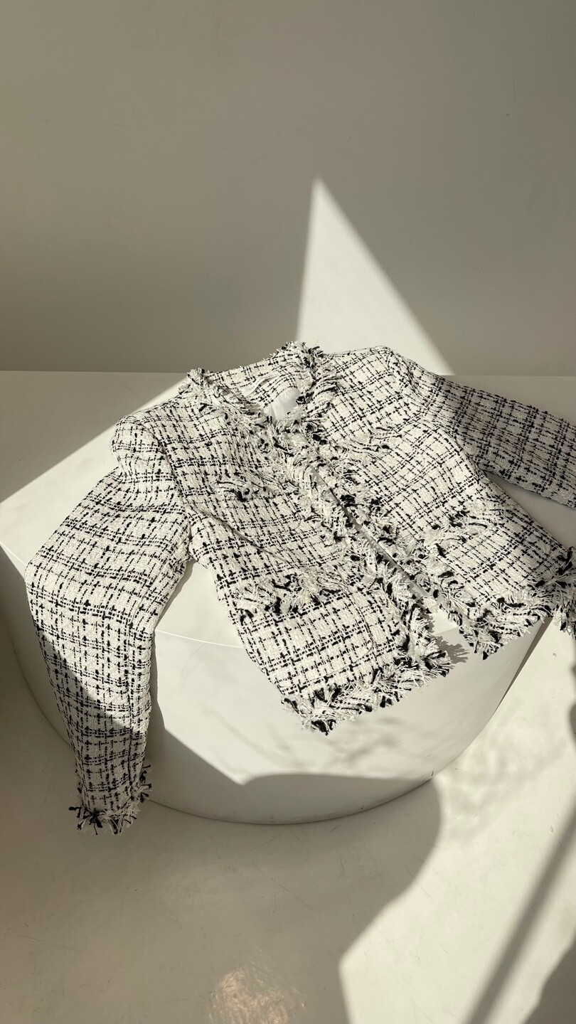 프린지 디테일이 돋보이는 숏 트위드자켓