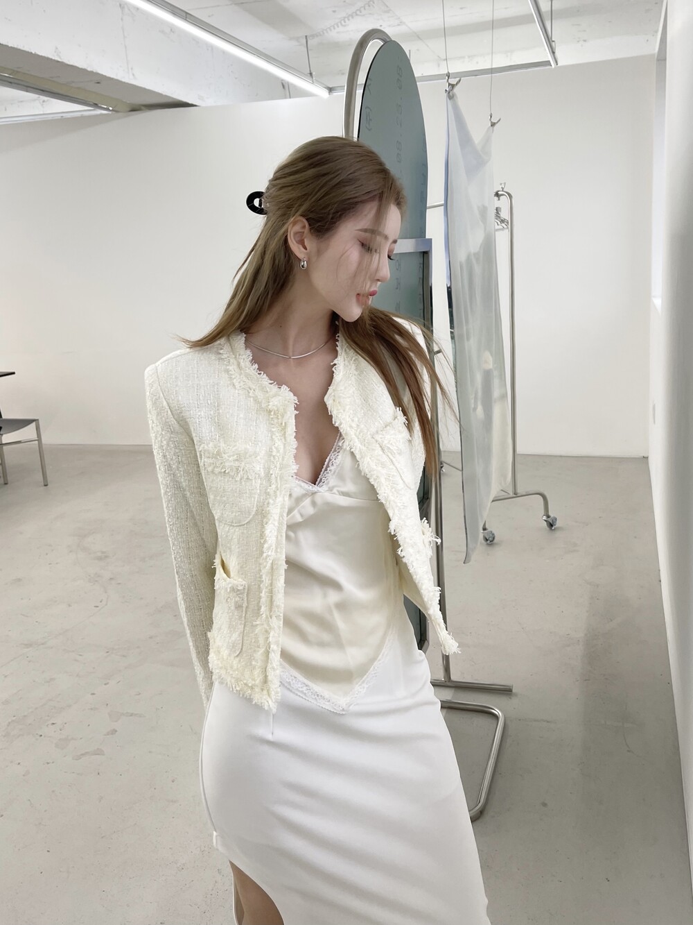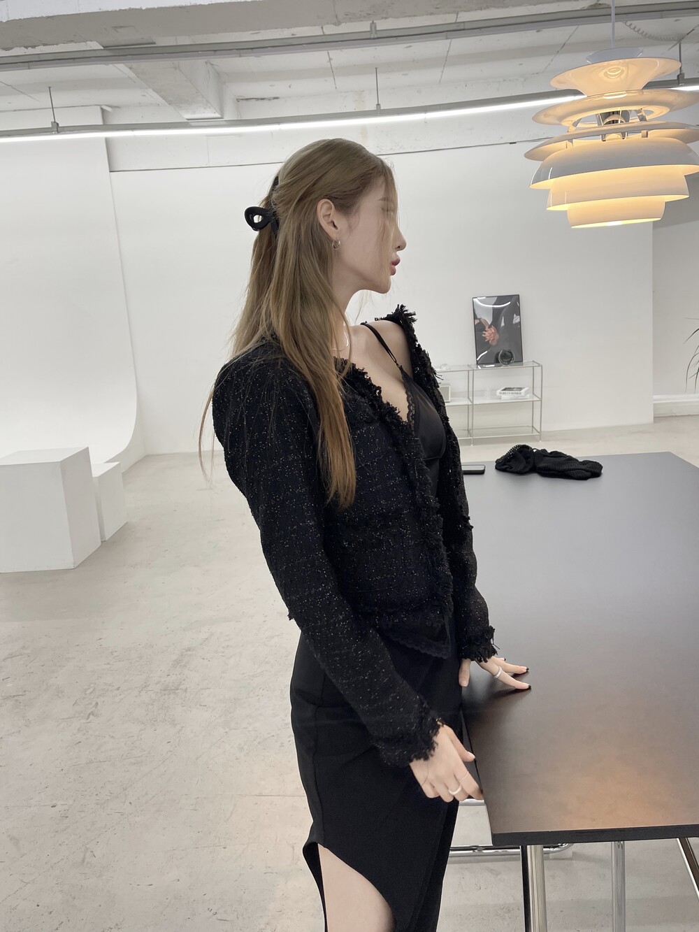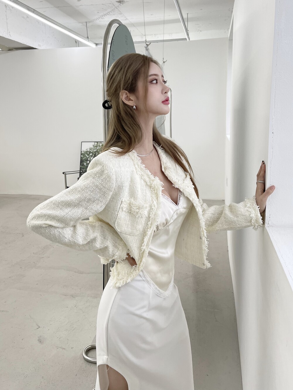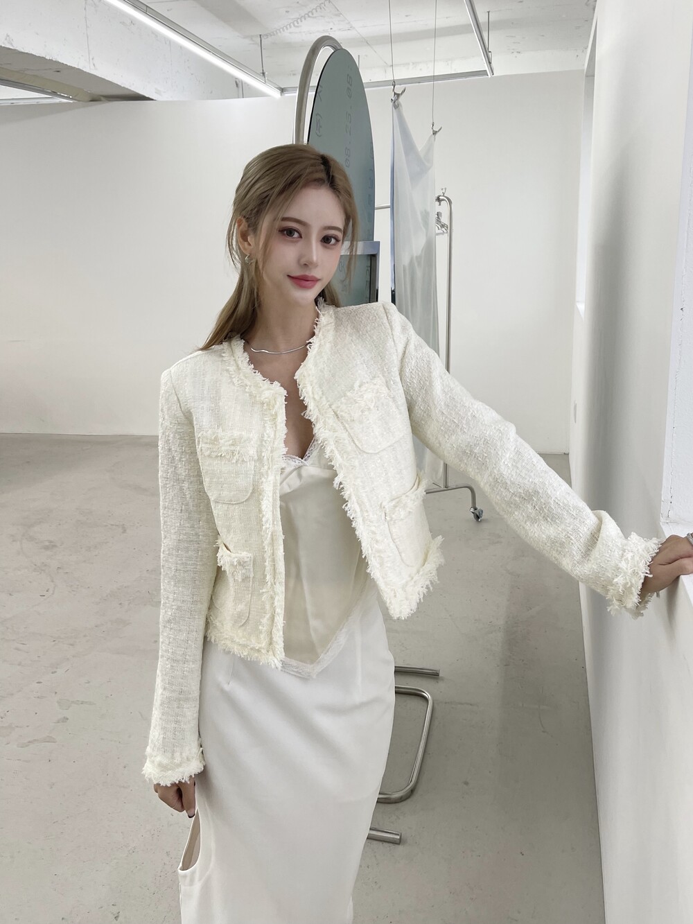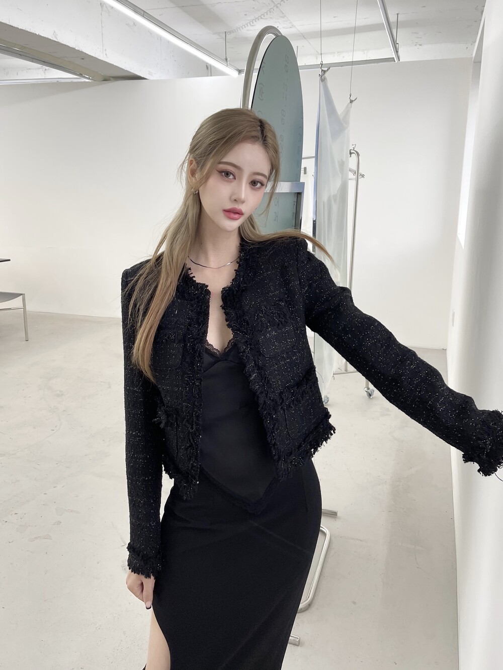 프린지 디테일이 돋보이는 숏 트위드자켓