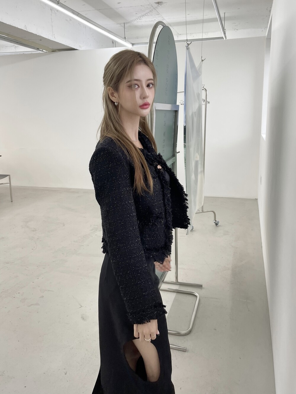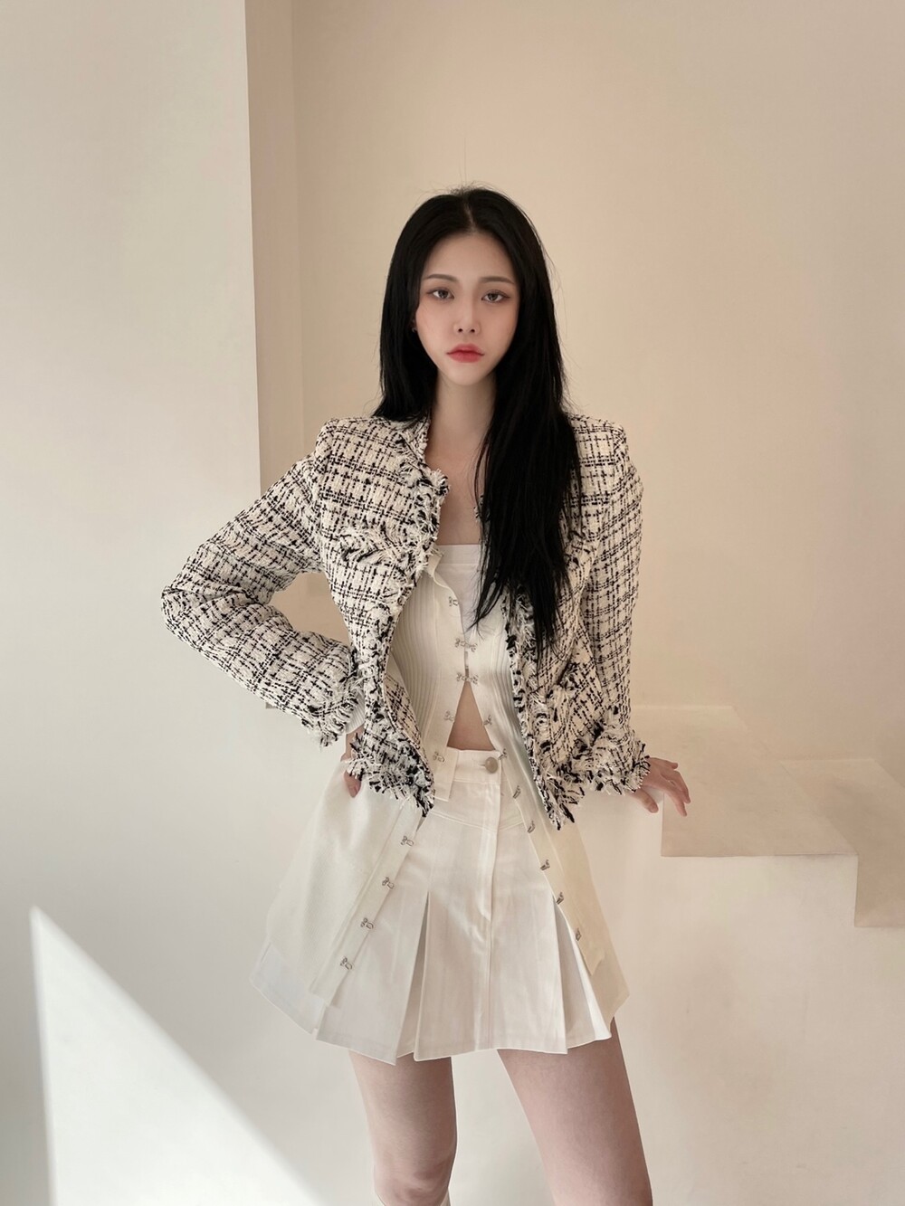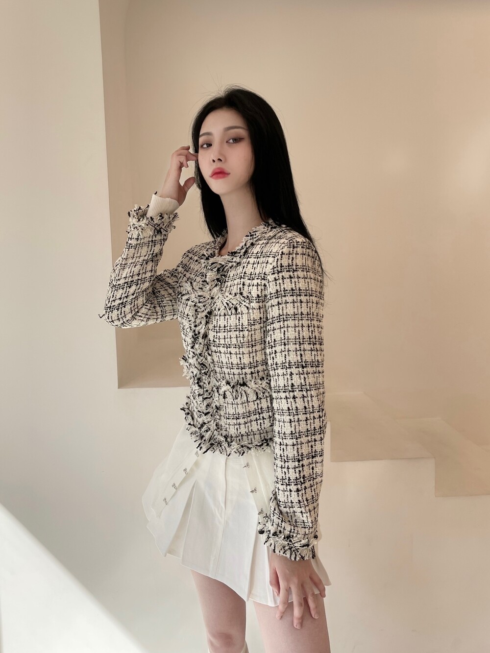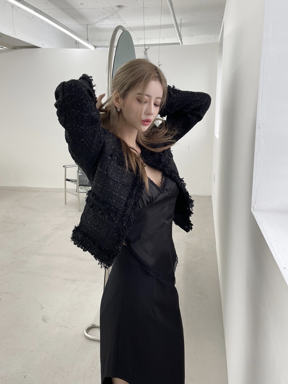 프린지 디테일이 돋보이는 숏 트위드자켓
