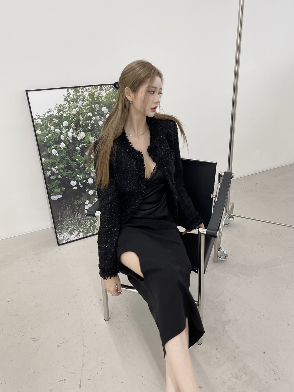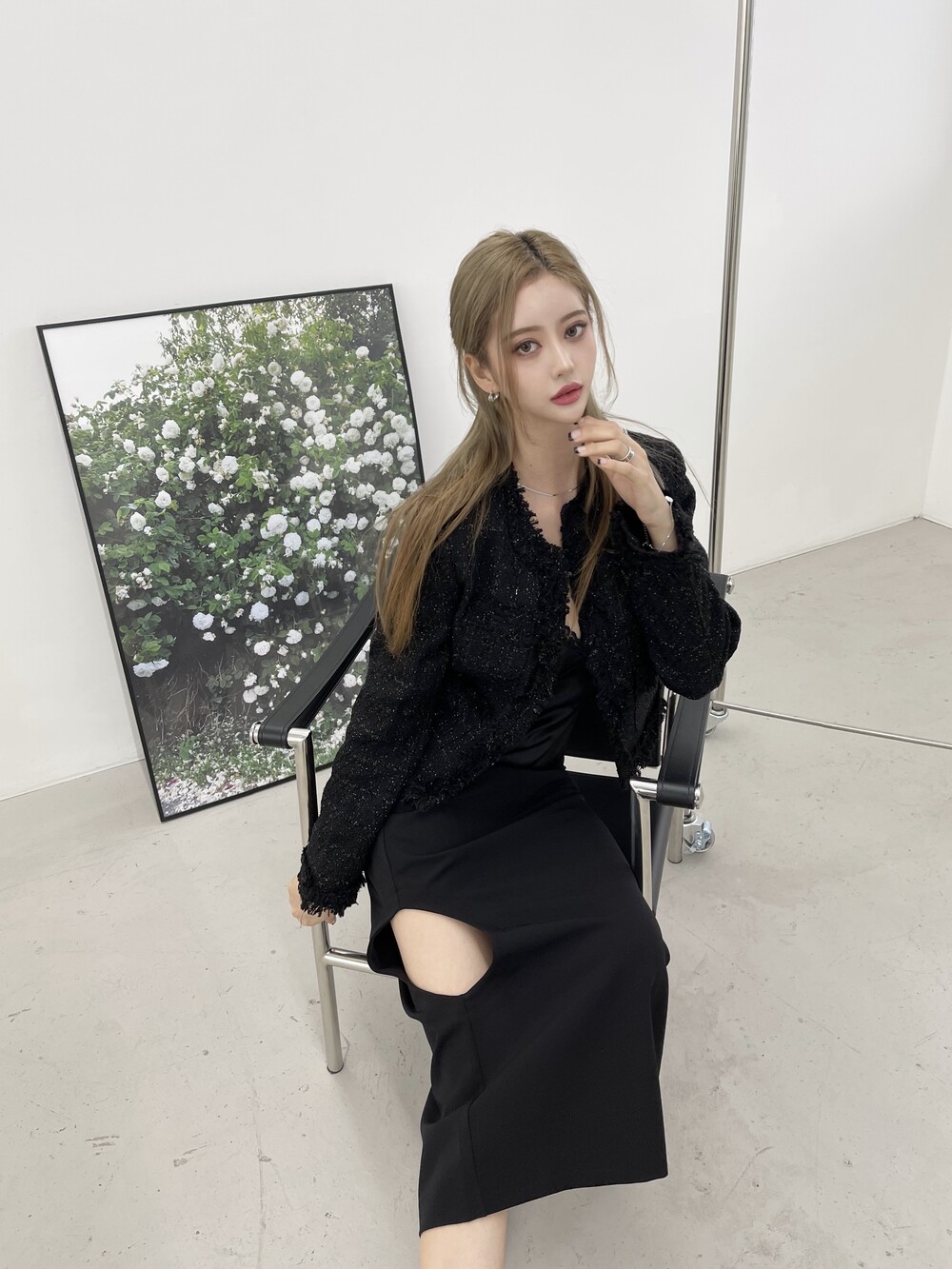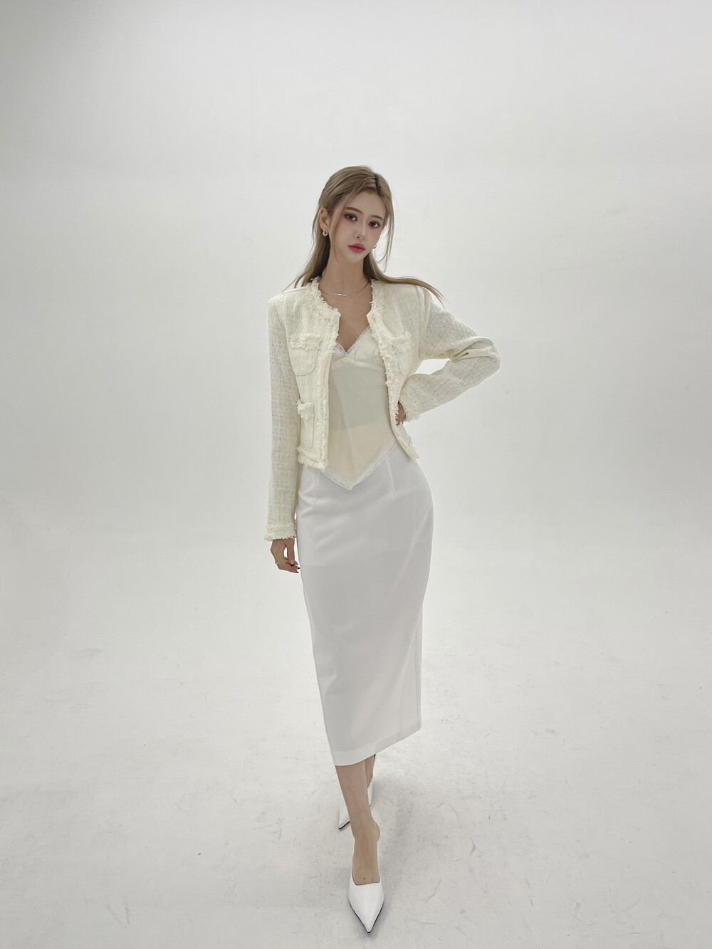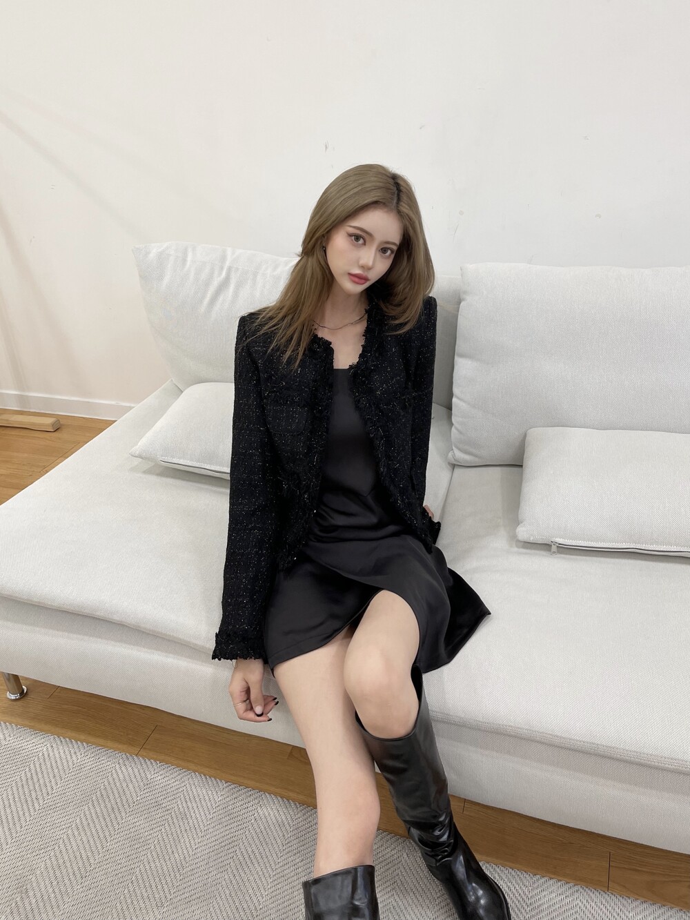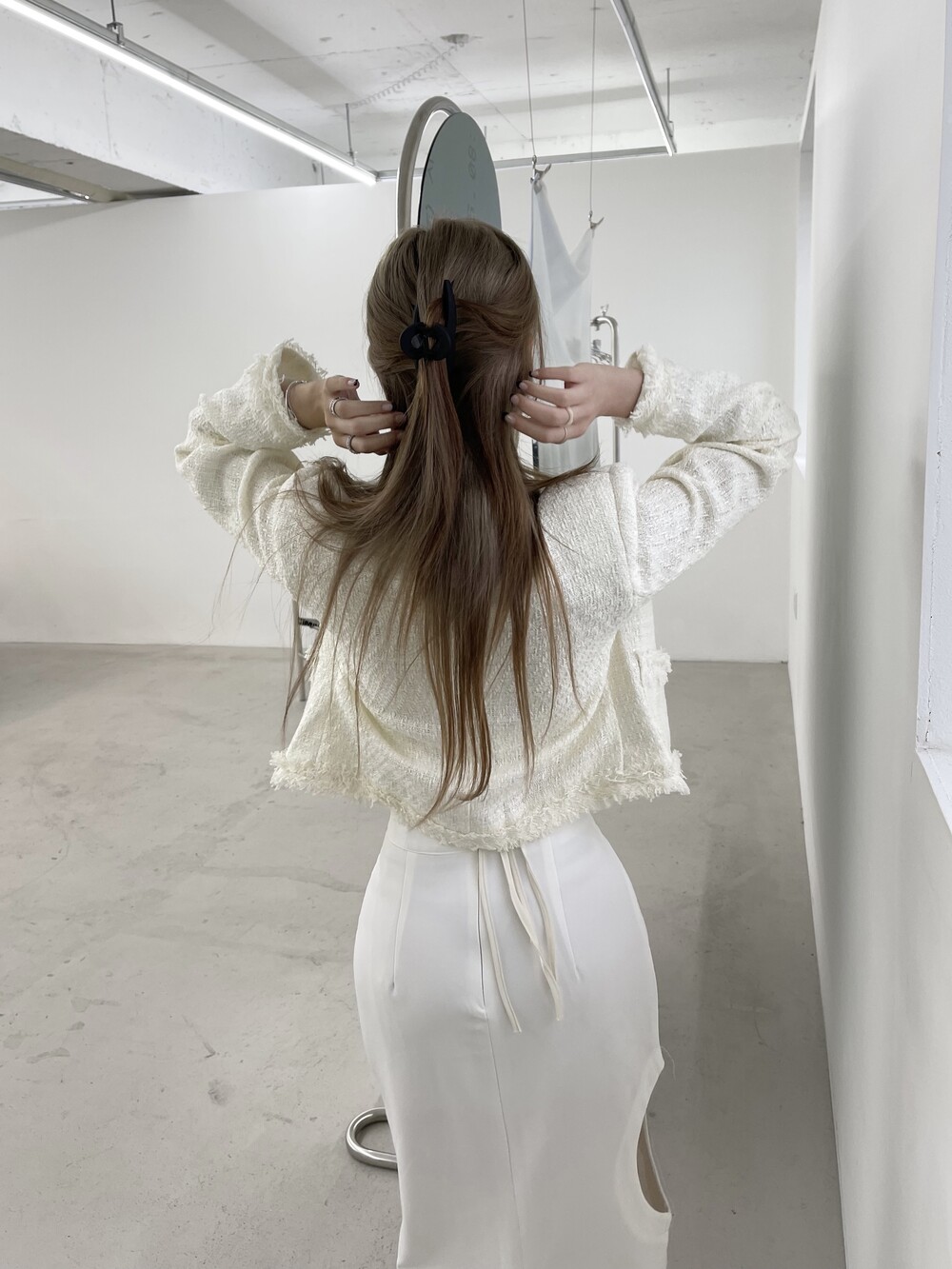 프린지 디테일이 돋보이는 숏 트위드자켓