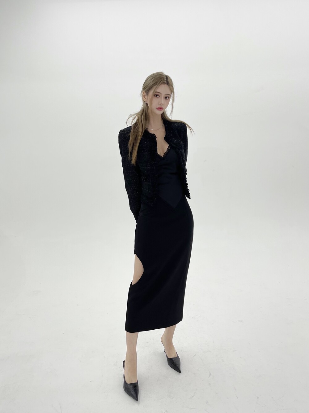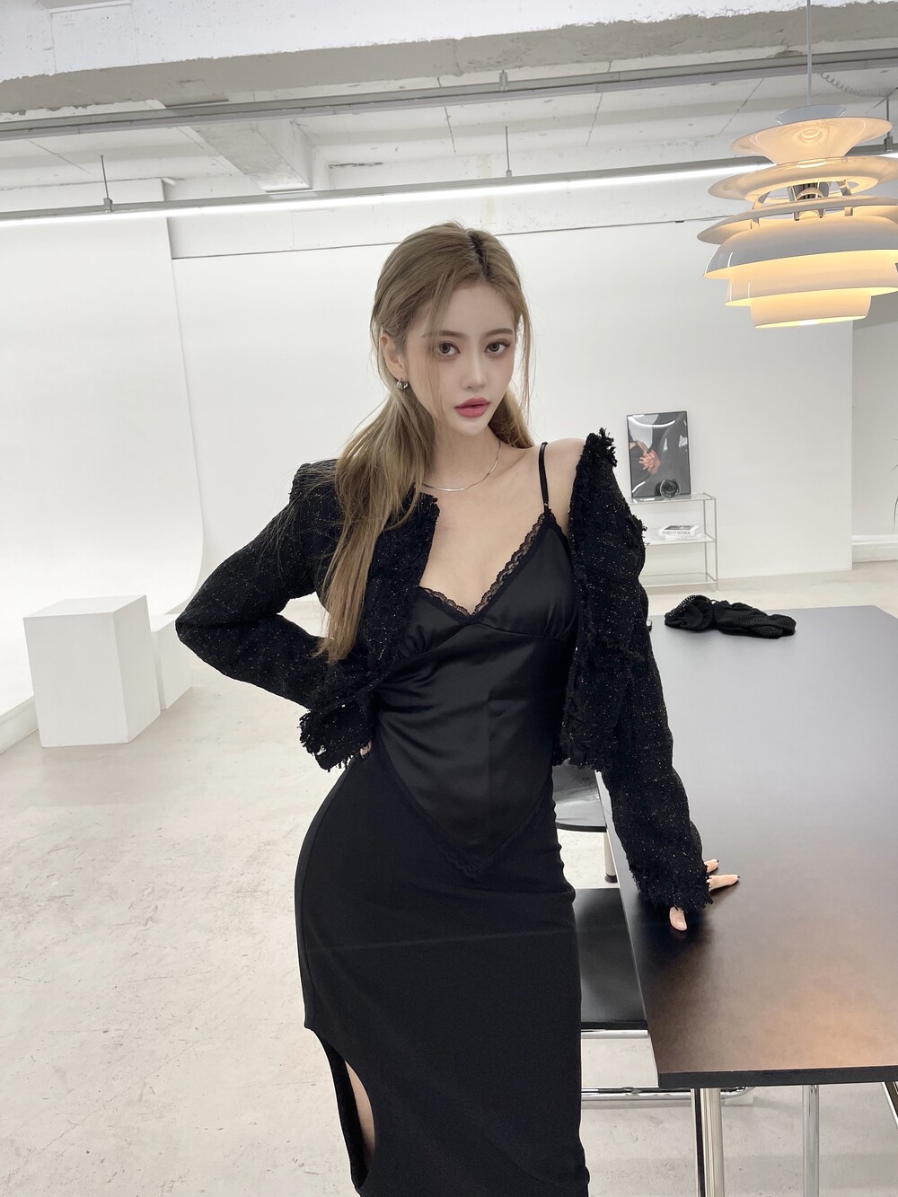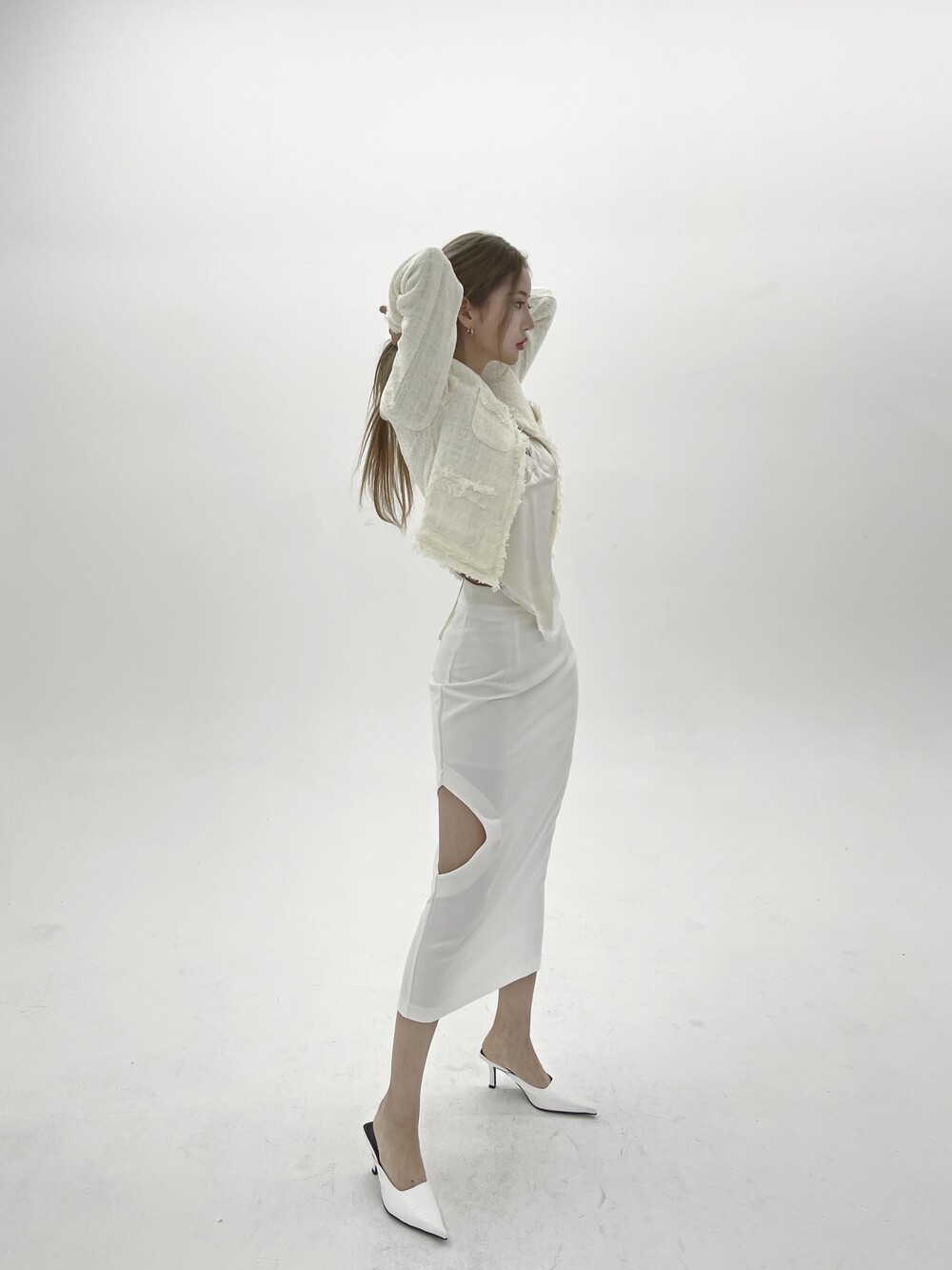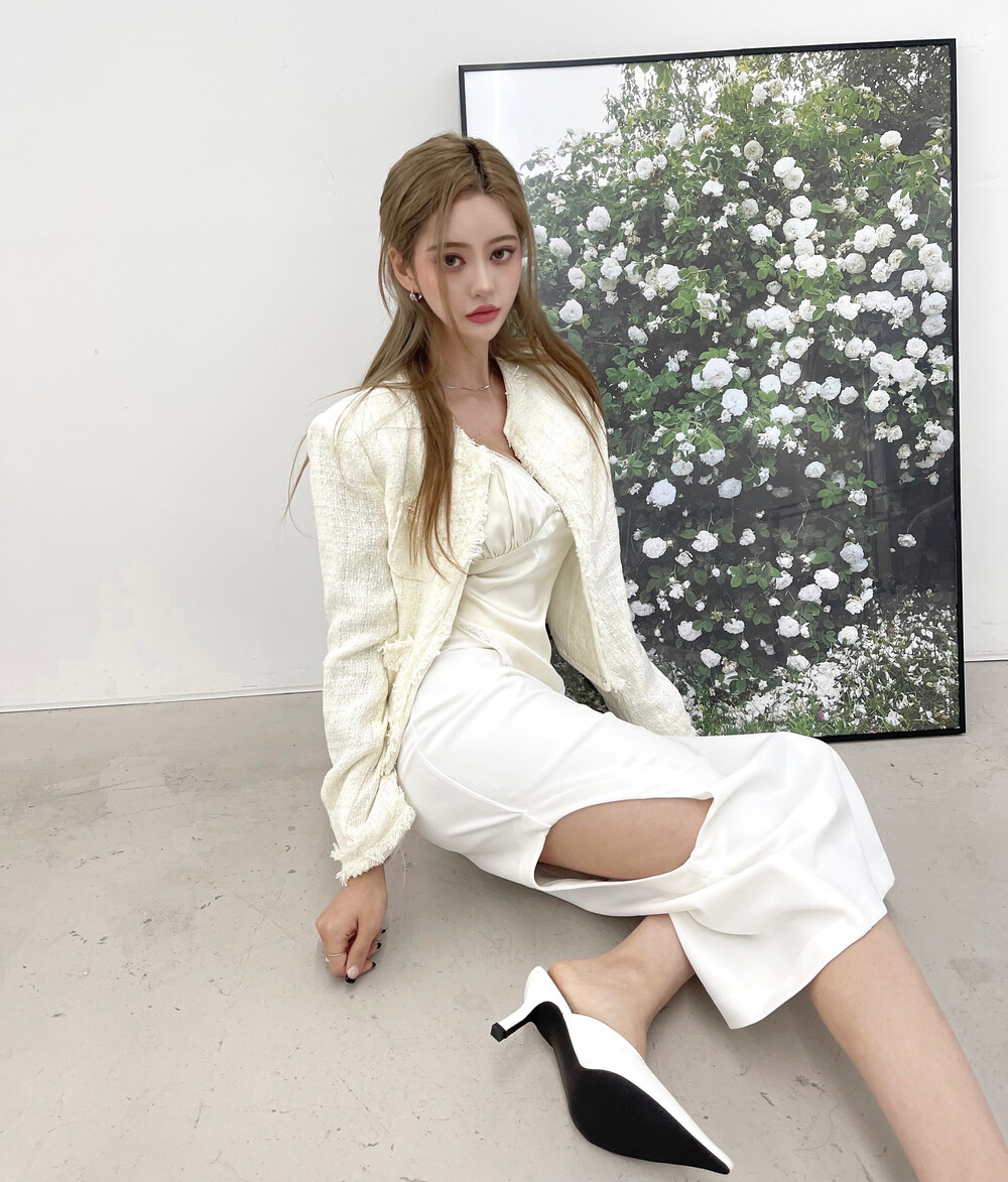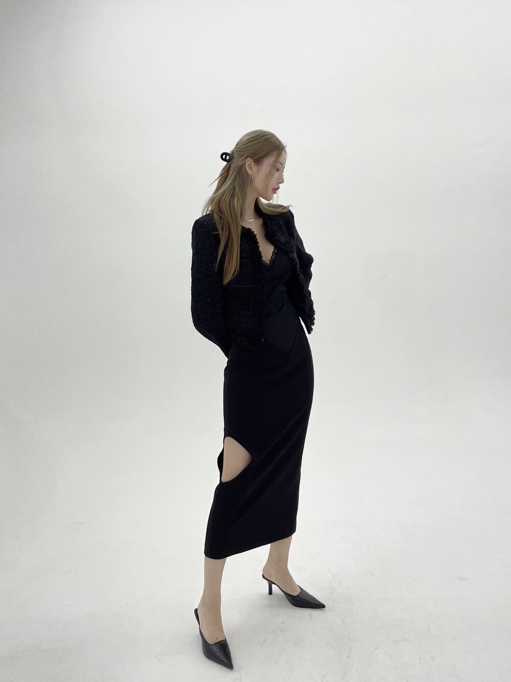프린지 디테일이 돋보이는 숏 트위드자켓