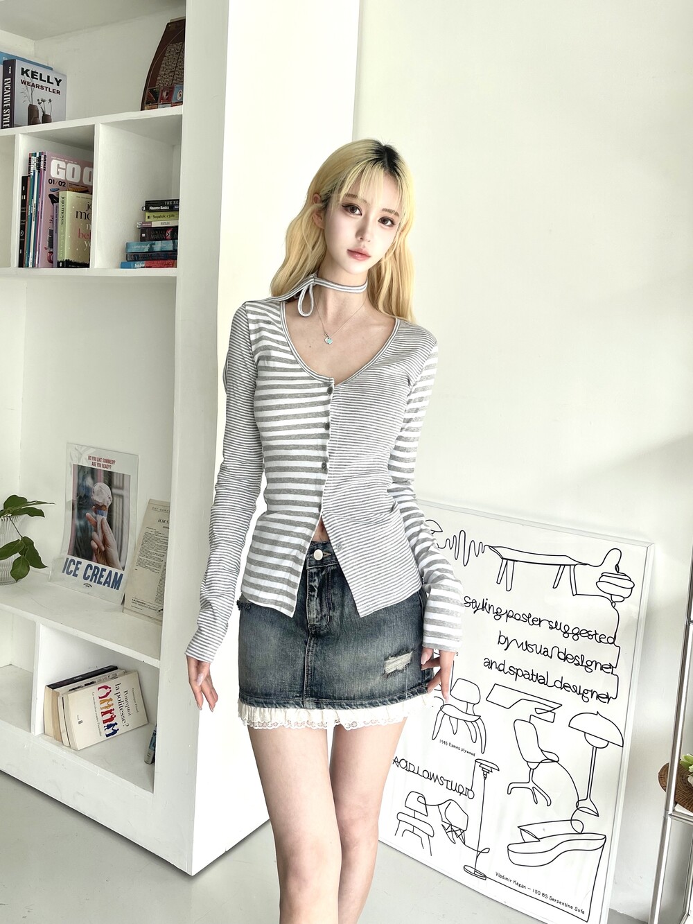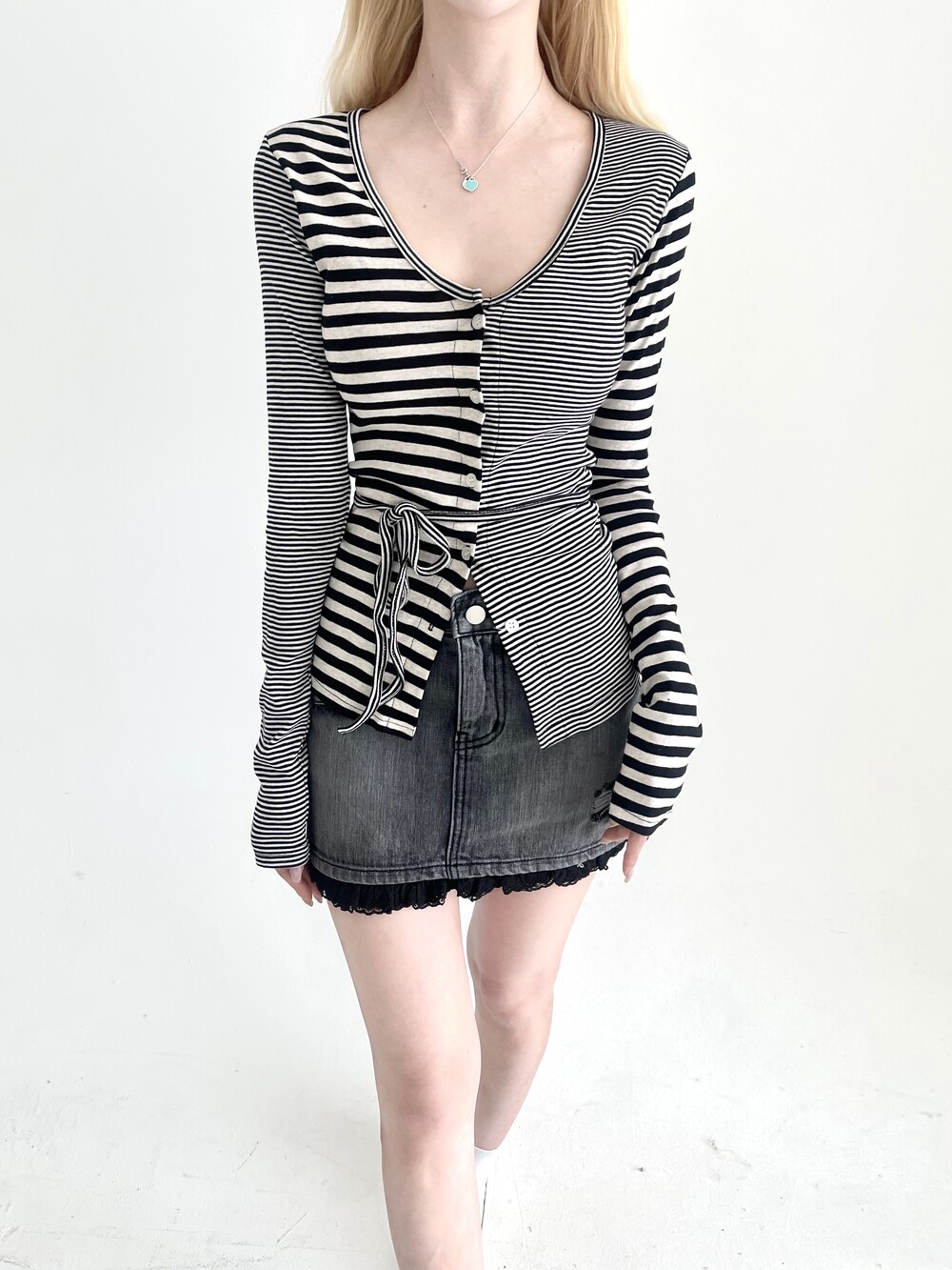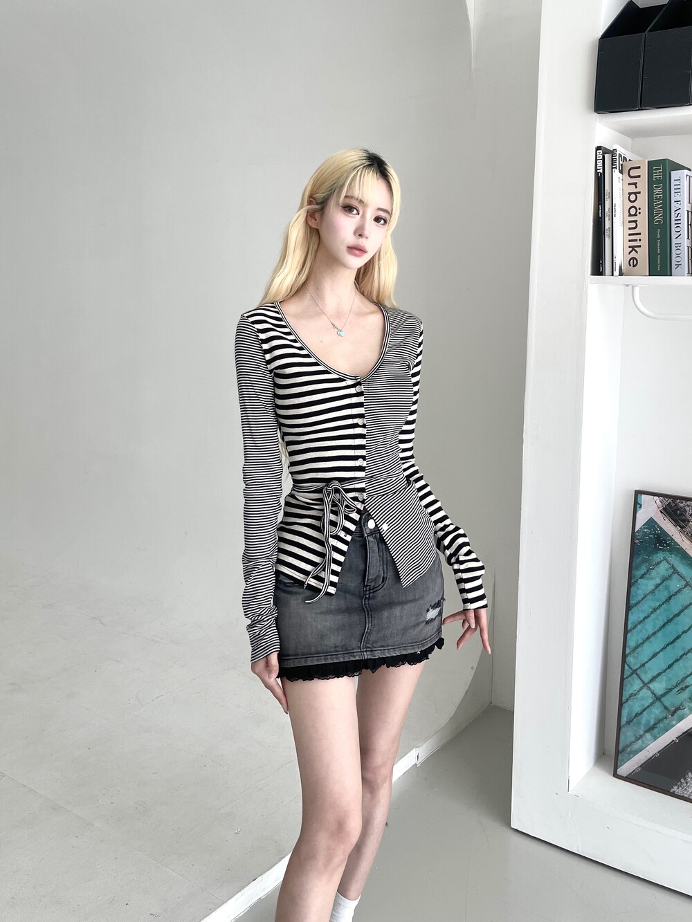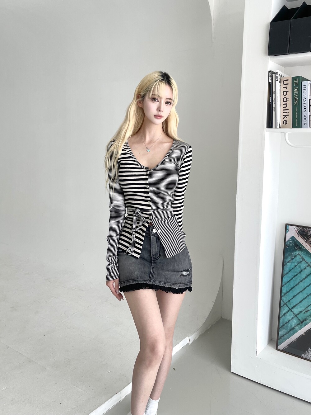 1483. 베니 믹스 스트라이프 스트링 가디건 (2color)