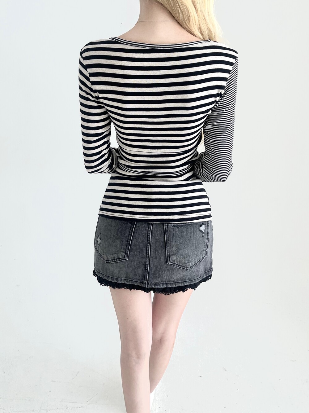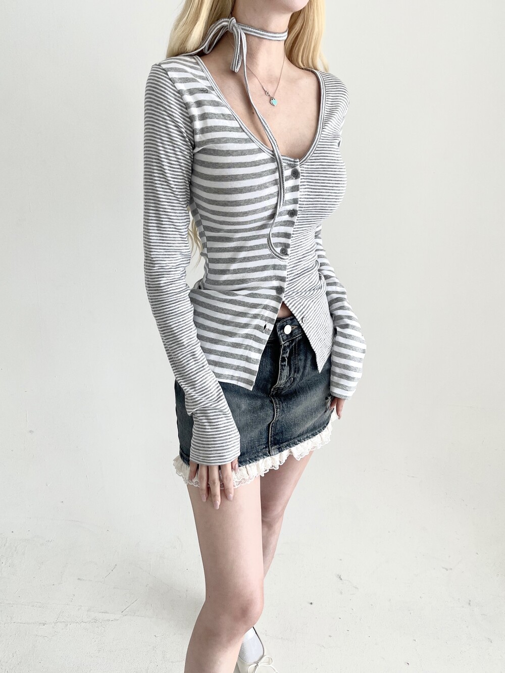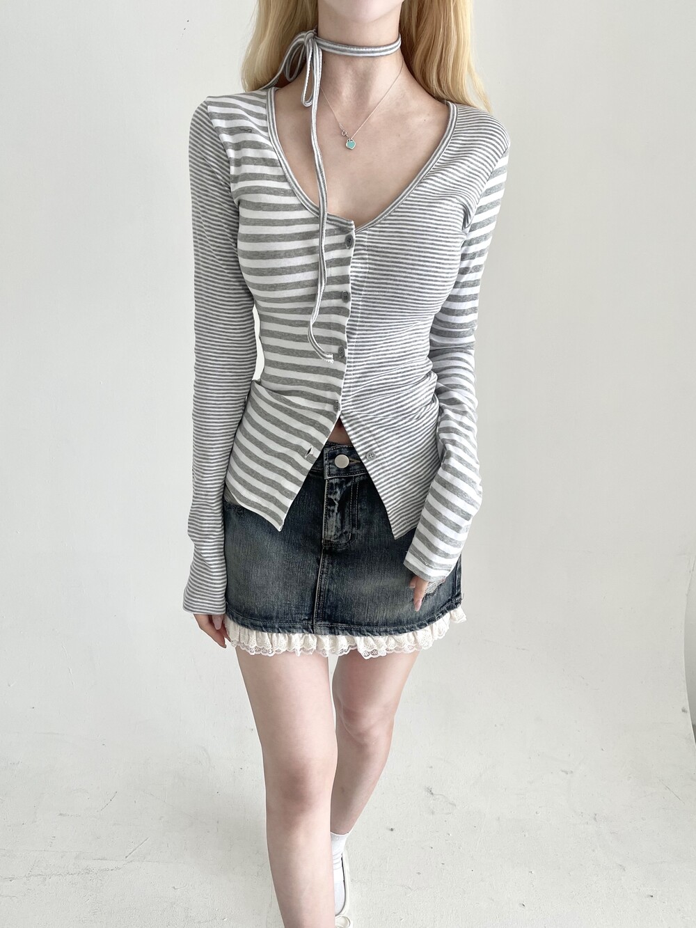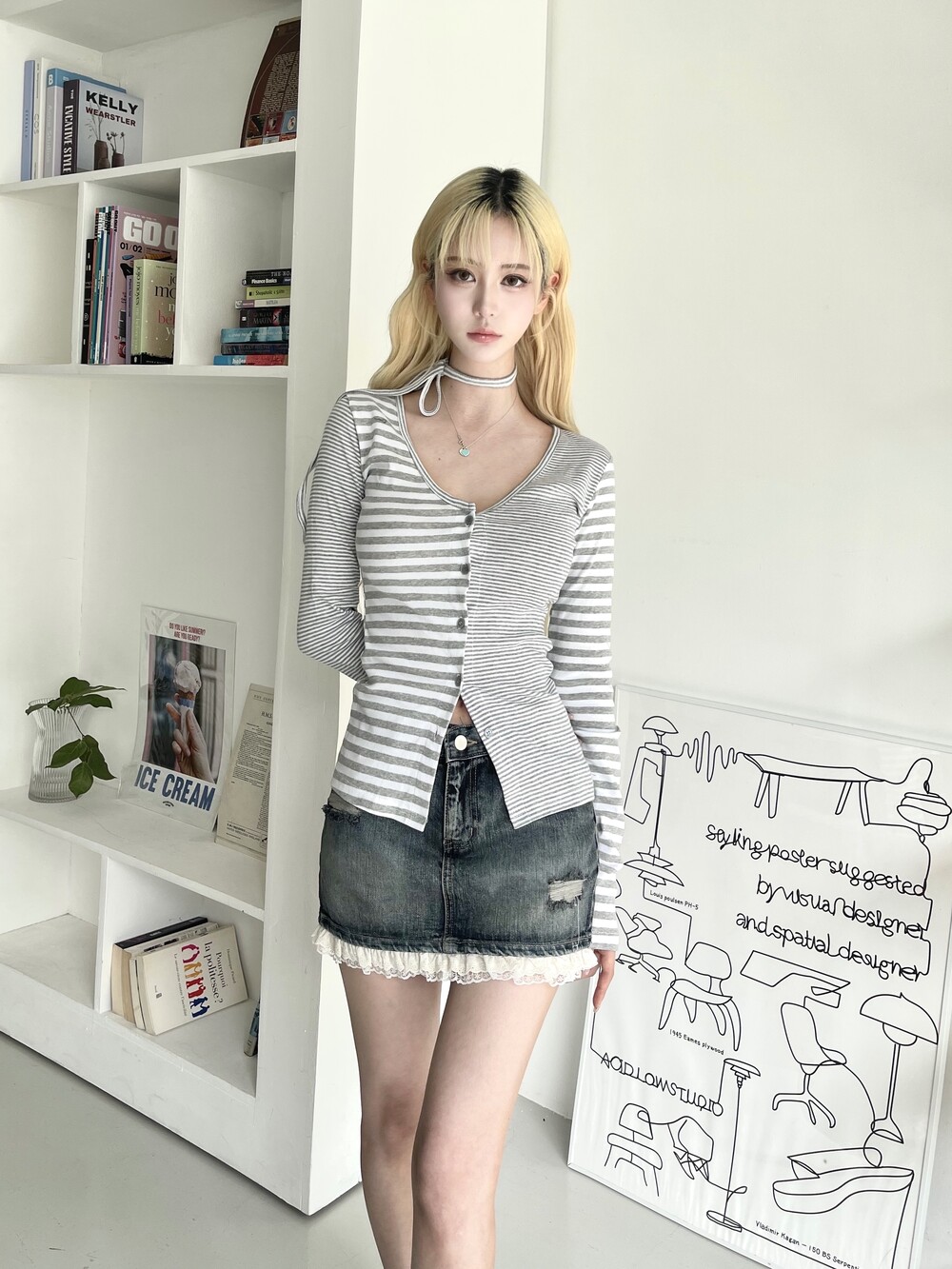 1483. 베니 믹스 스트라이프 스트링 가디건 (2color)