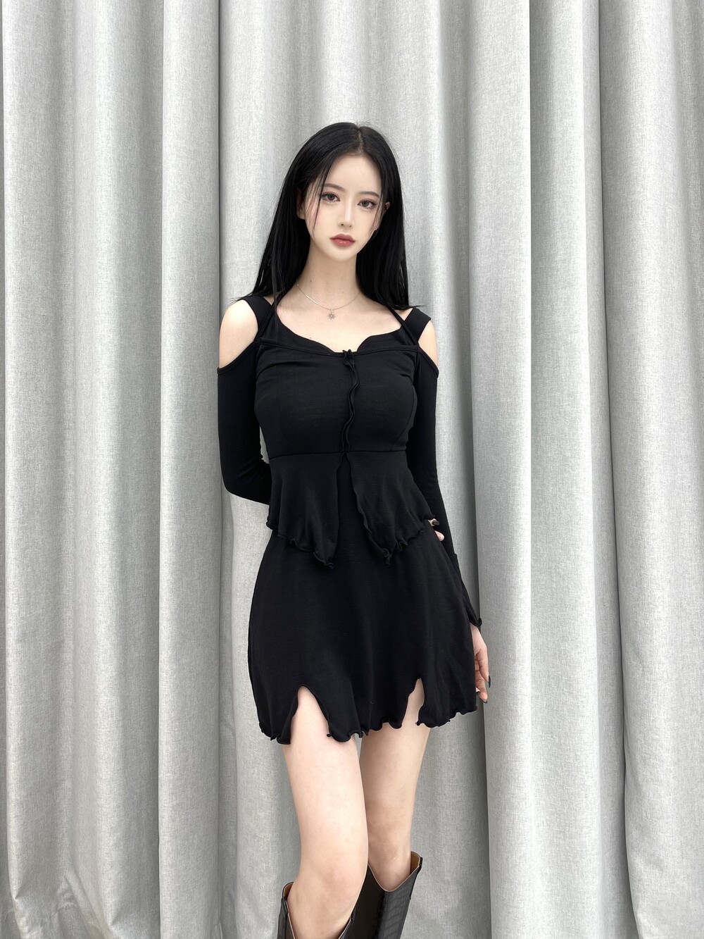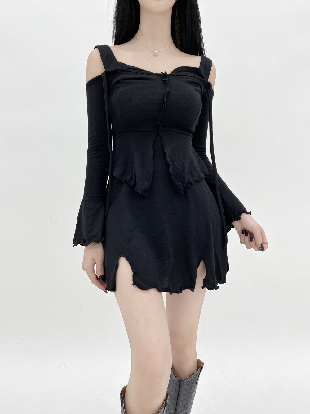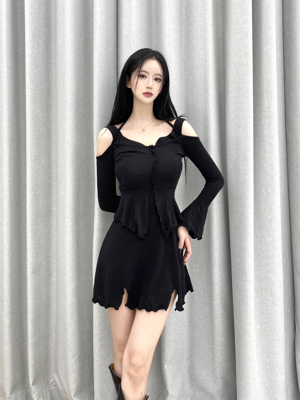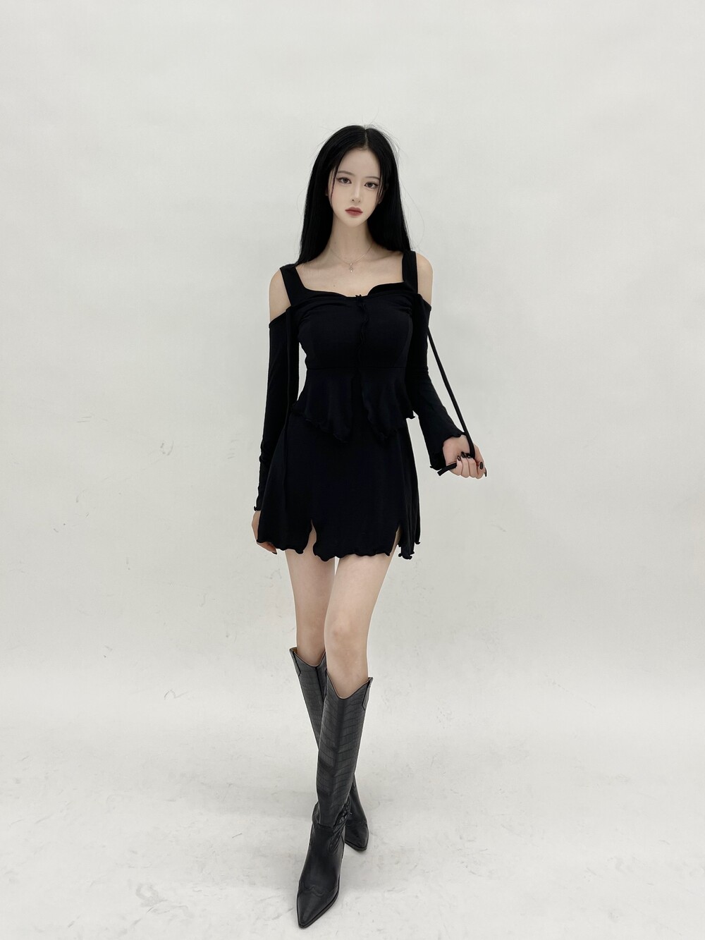 페어리 홀터 오프숄더 슬릿 미니 원피스