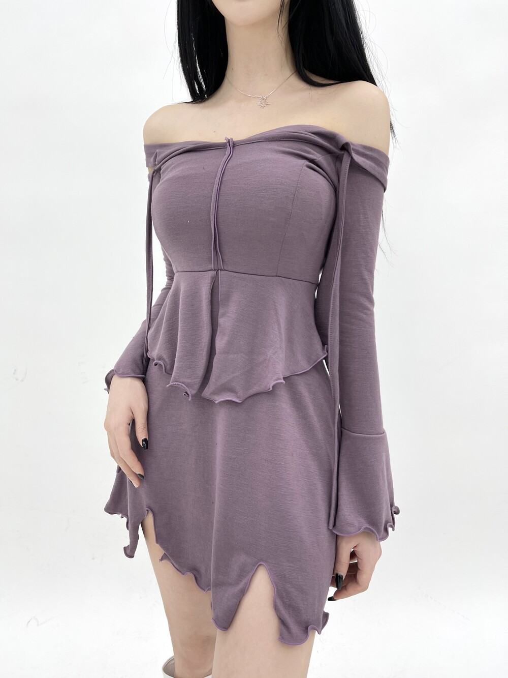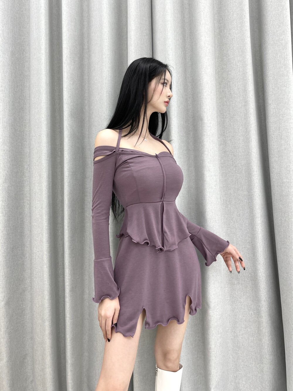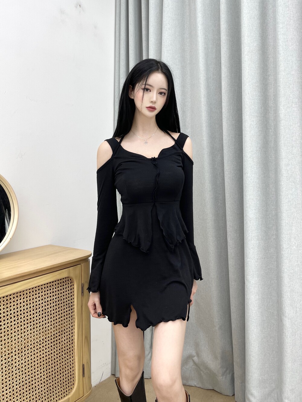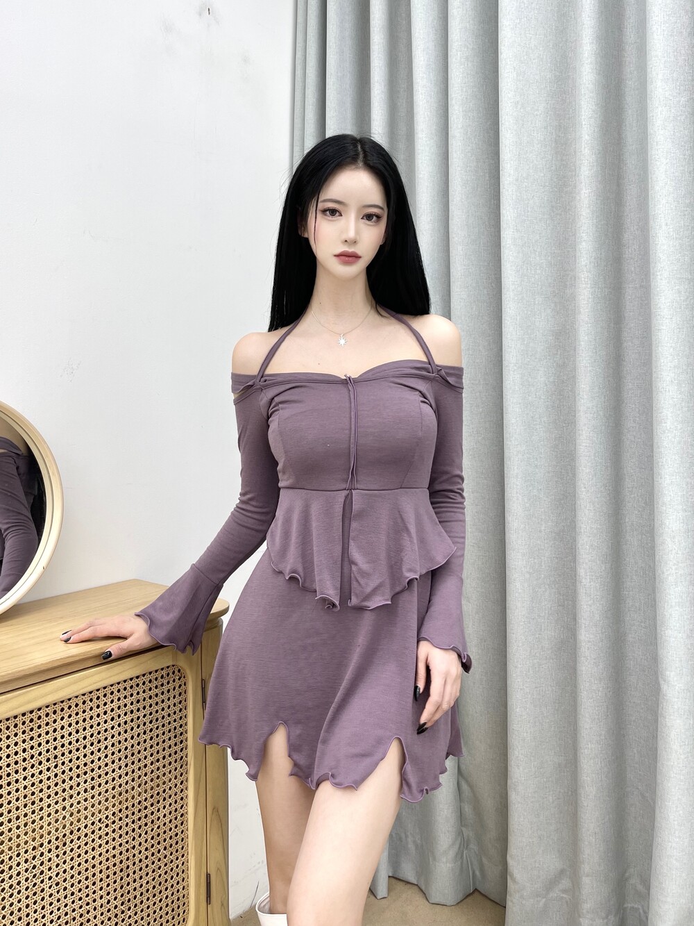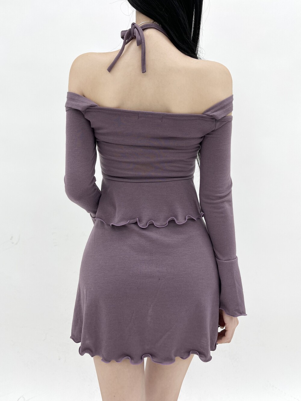 페어리 홀터 오프숄더 슬릿 미니 원피스