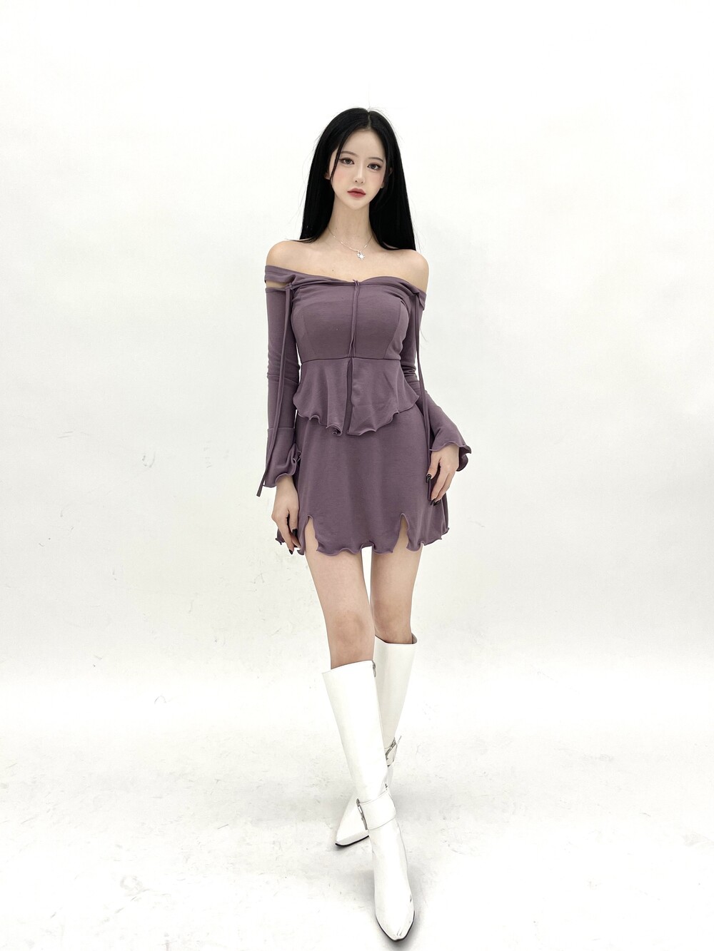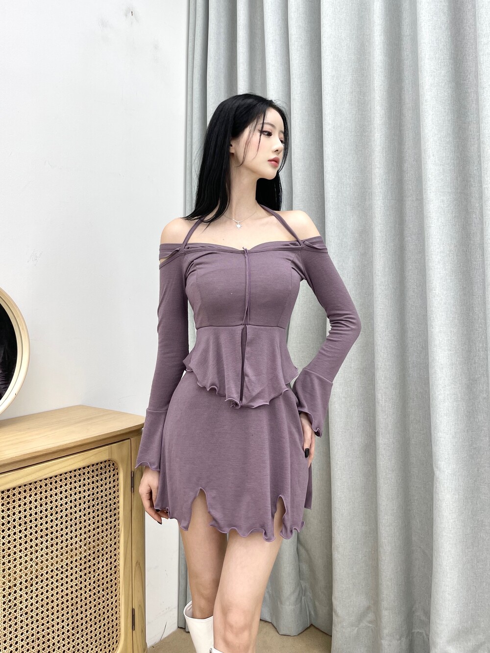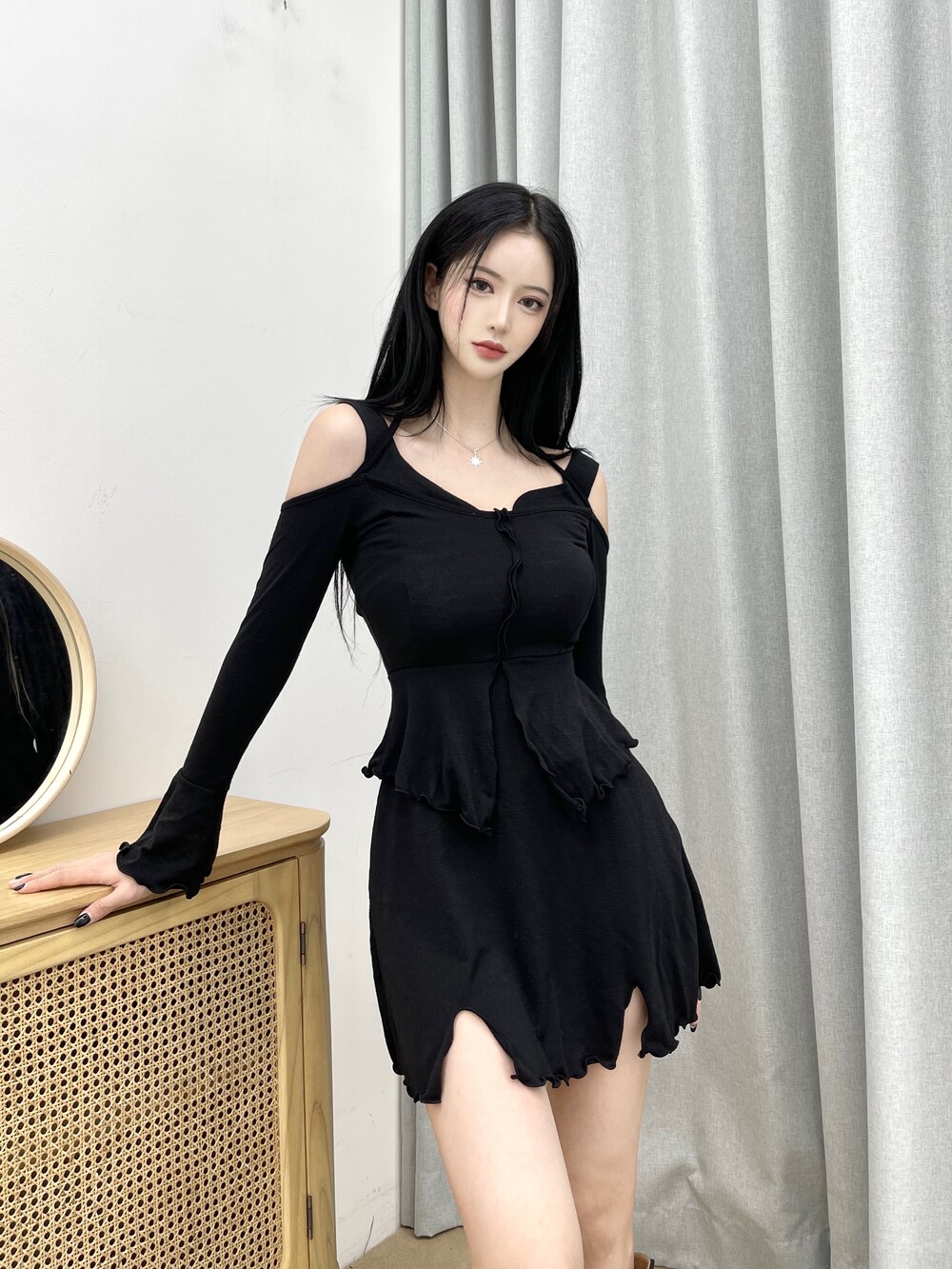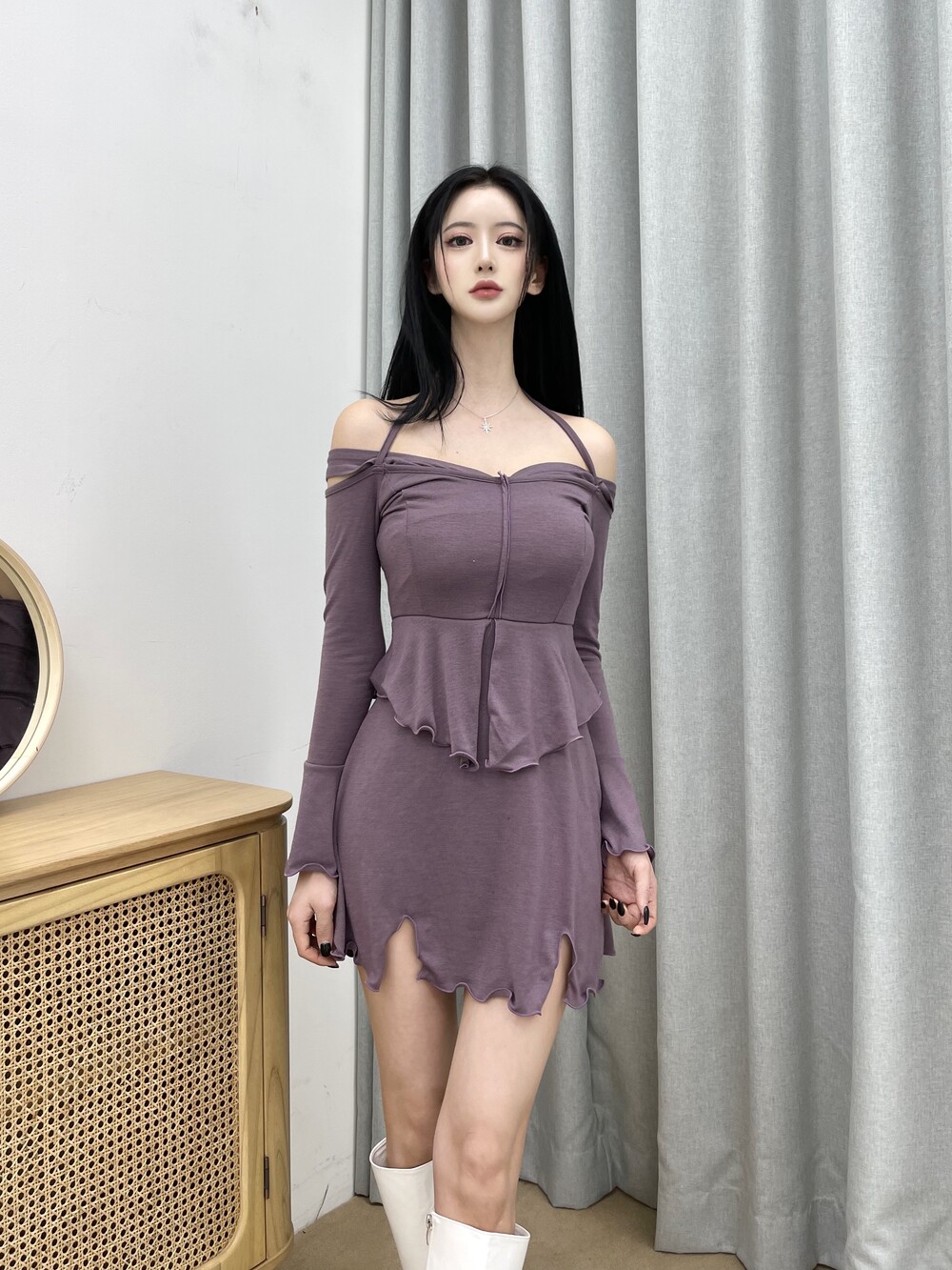 페어리 홀터 오프숄더 슬릿 미니 원피스