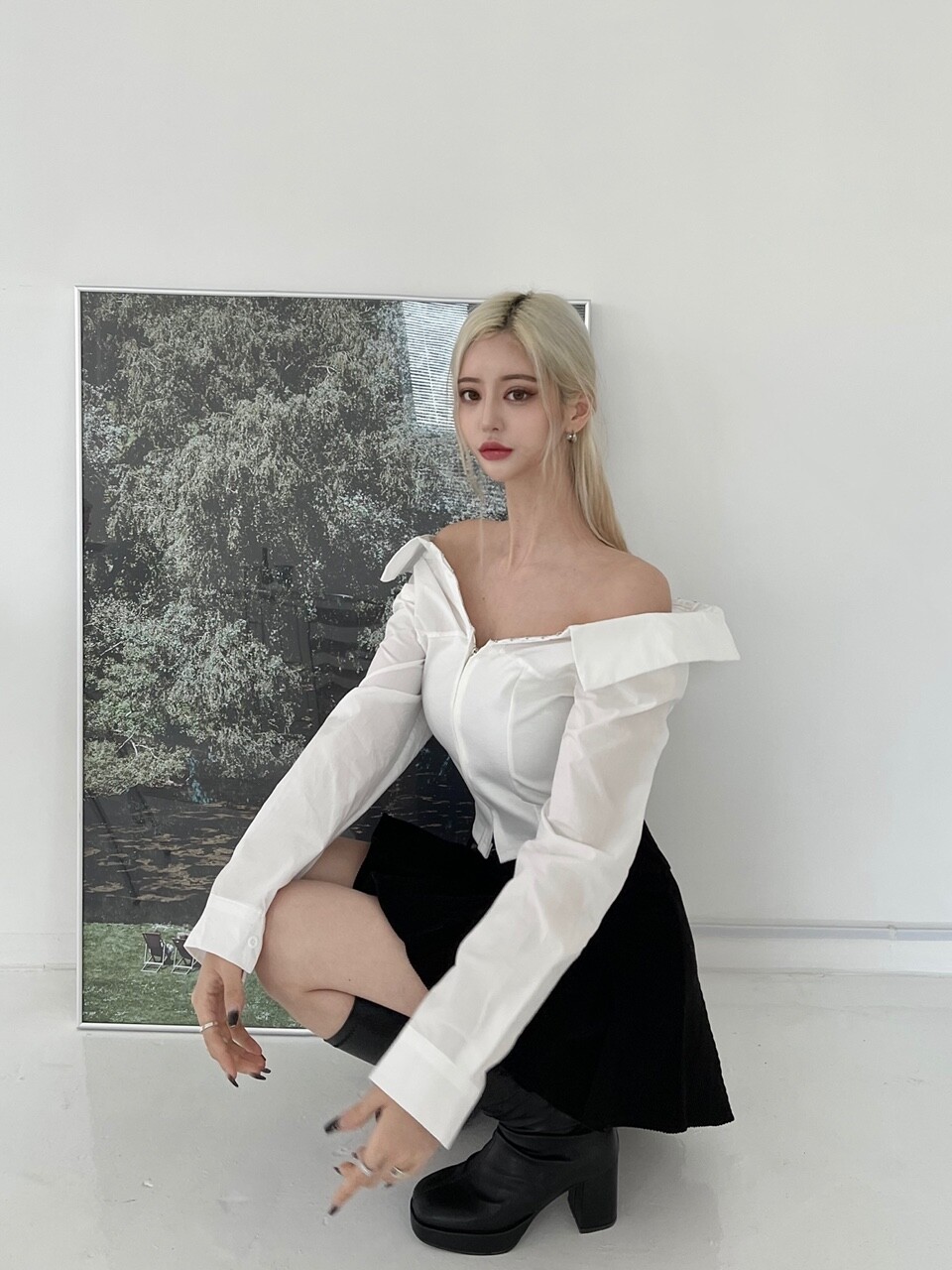 후크를 풀면 오프숄더 셔츠로 착용 (투웨이)