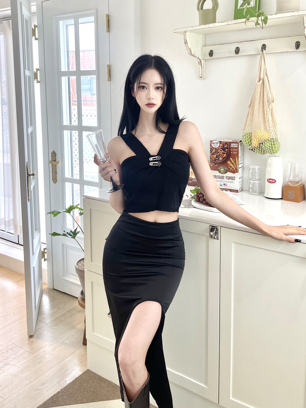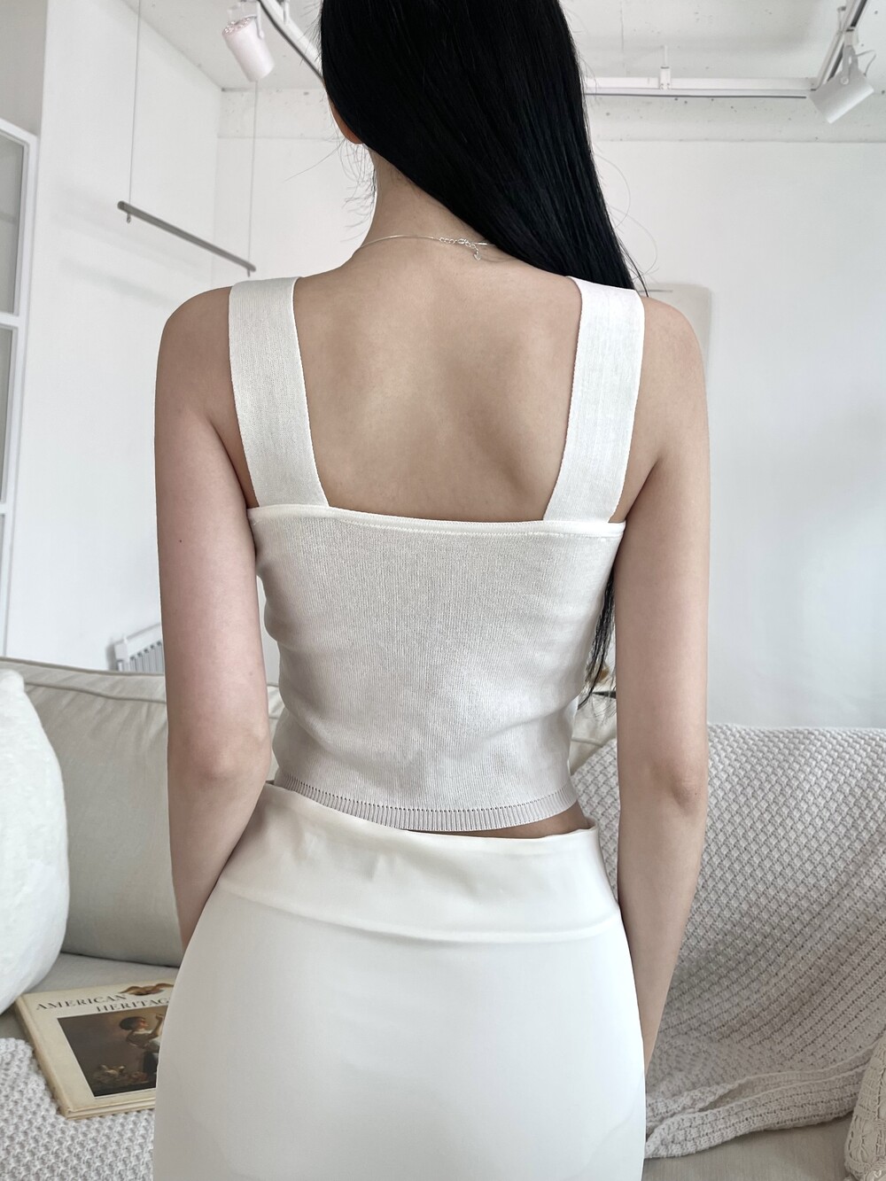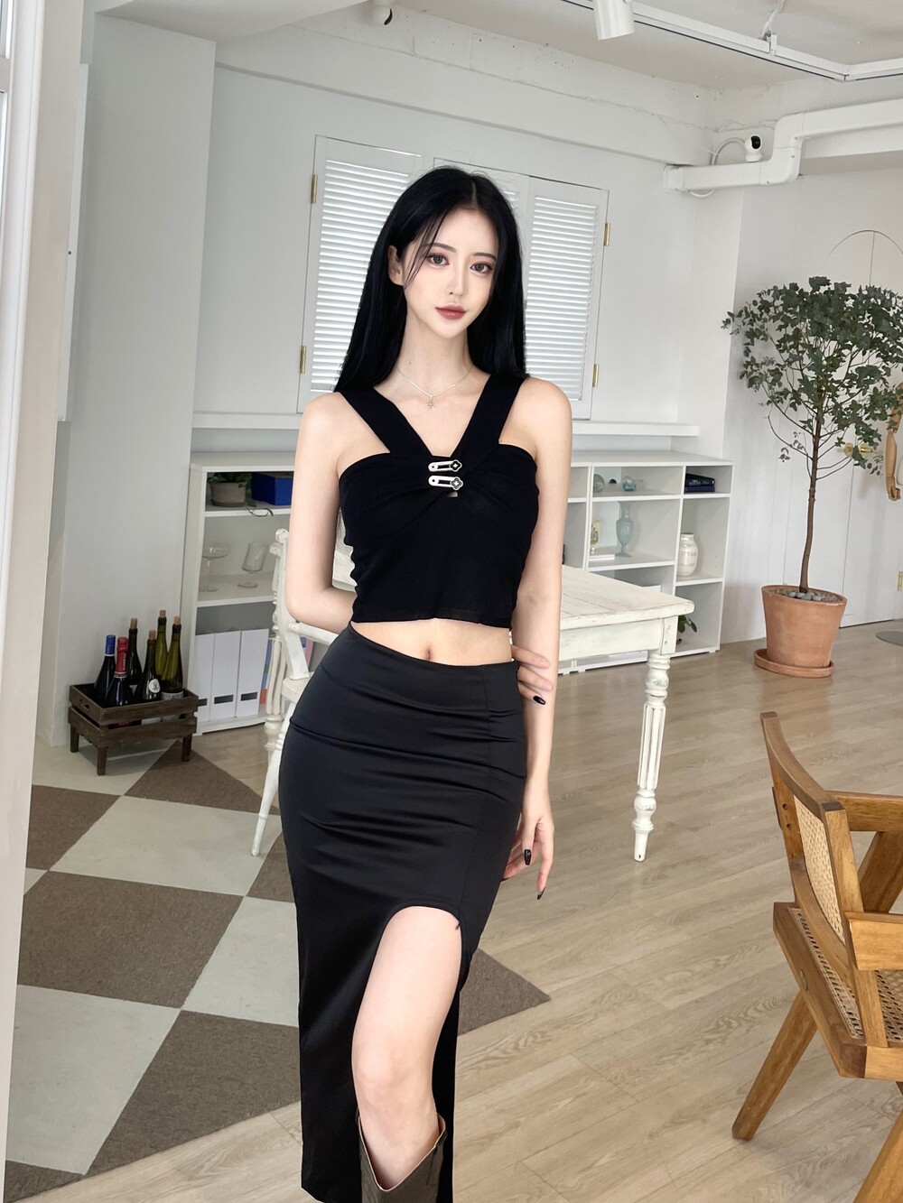 브로치 핀 브이 컷아웃 크롭 슬리브리스