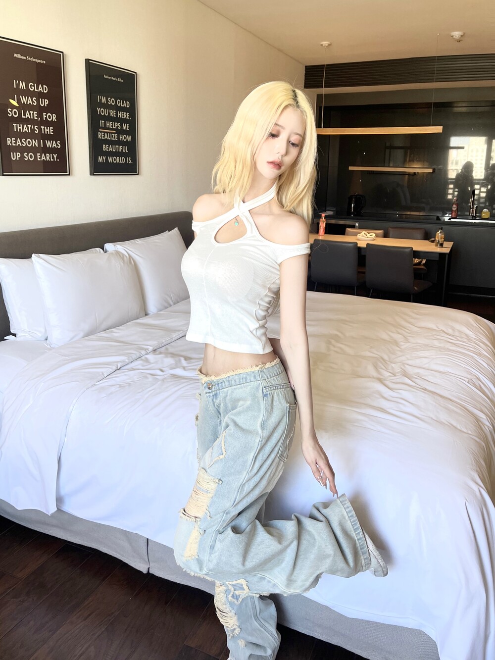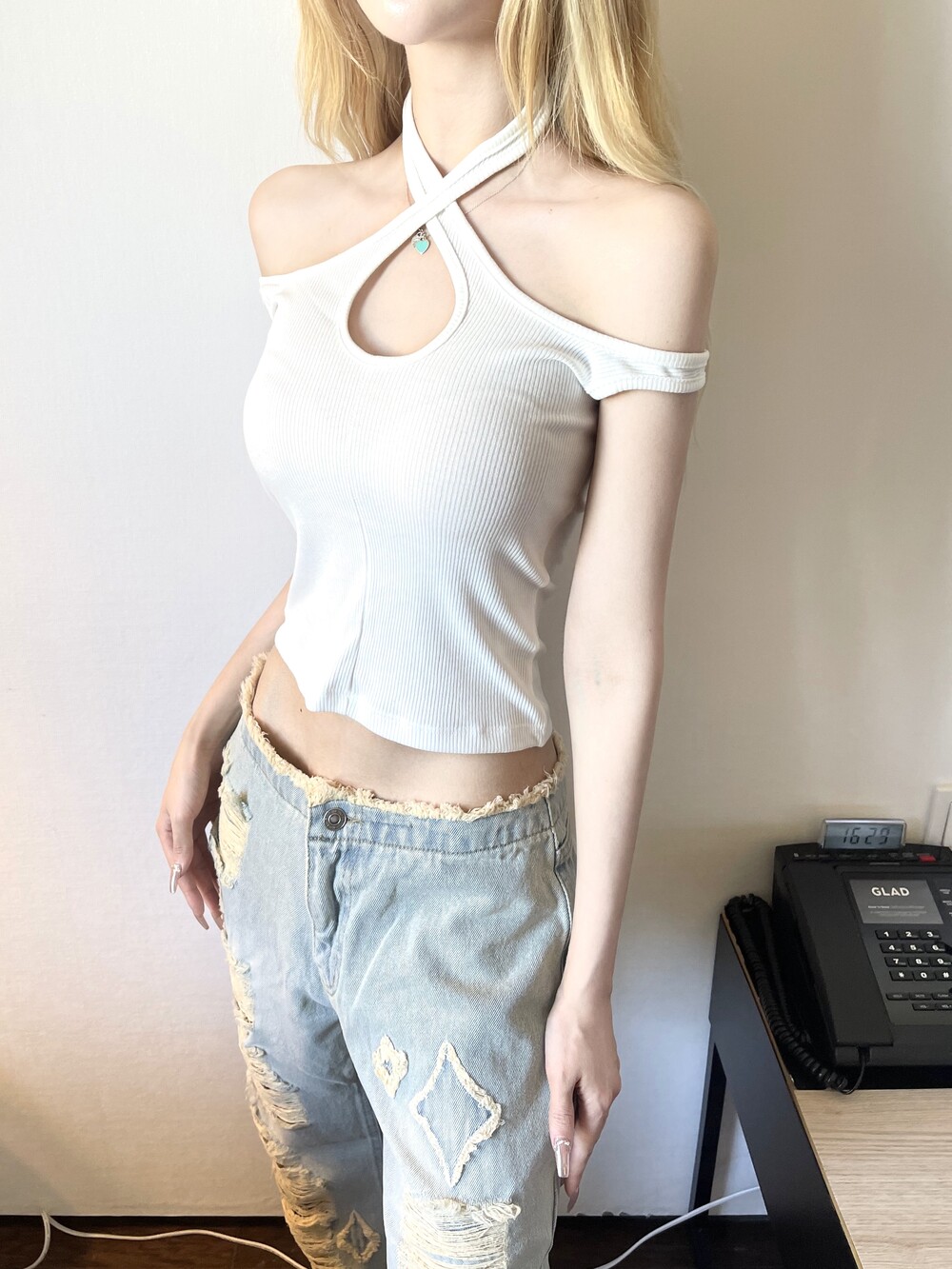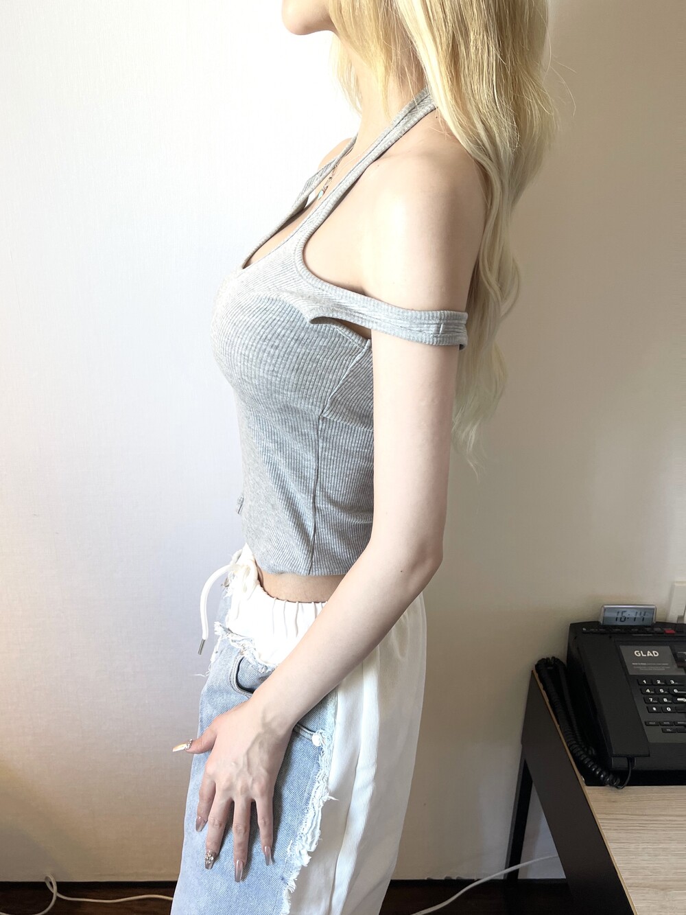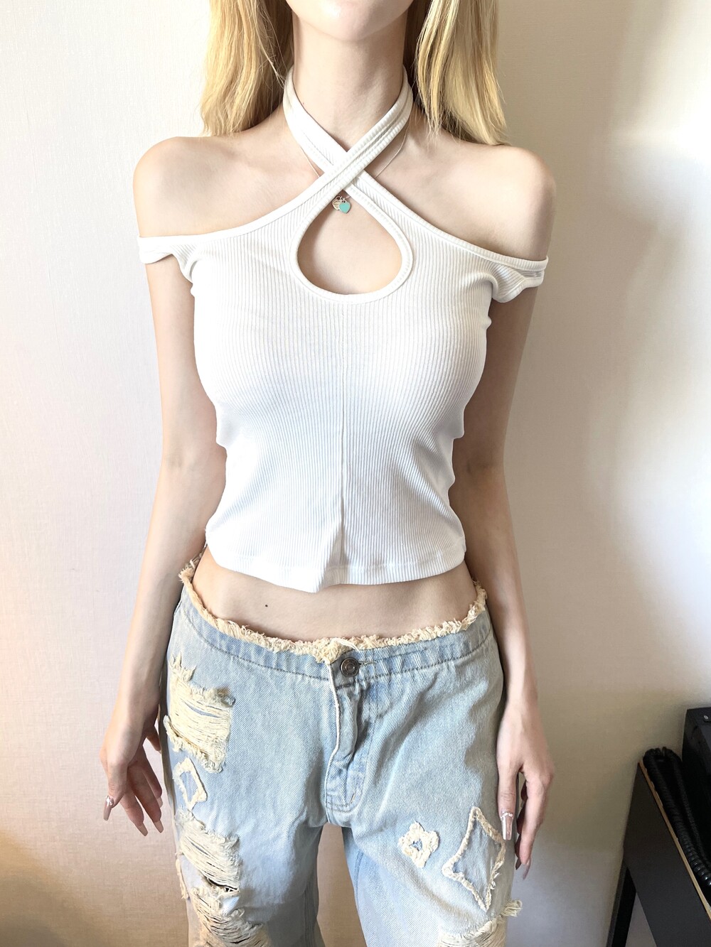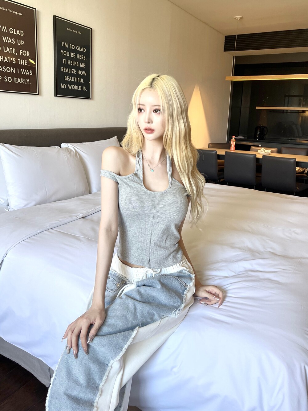 크롭 슬리브리스 디자인으로 다양한 하의와 매치