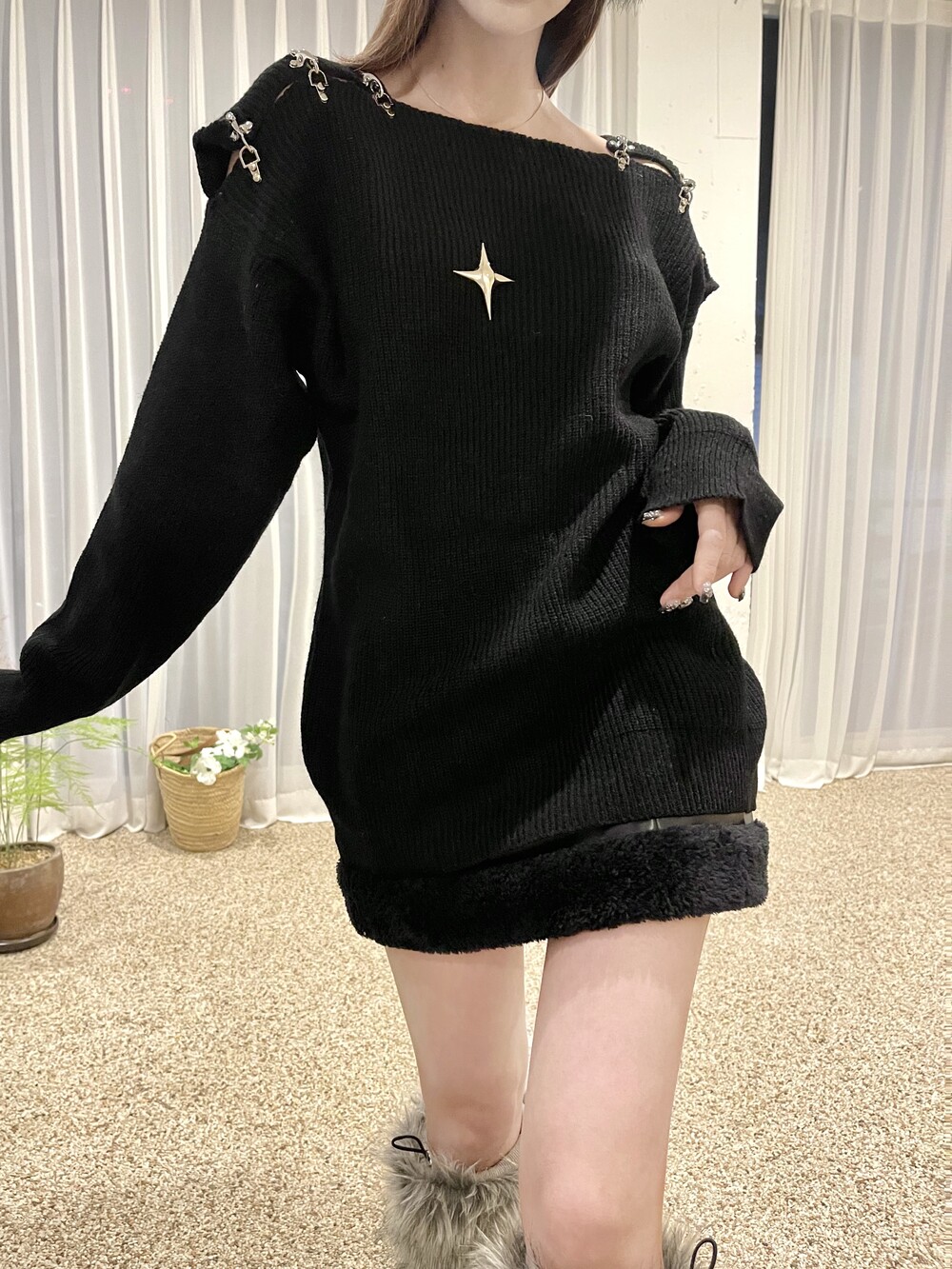 다이아 브로치 버클 투웨이 니트