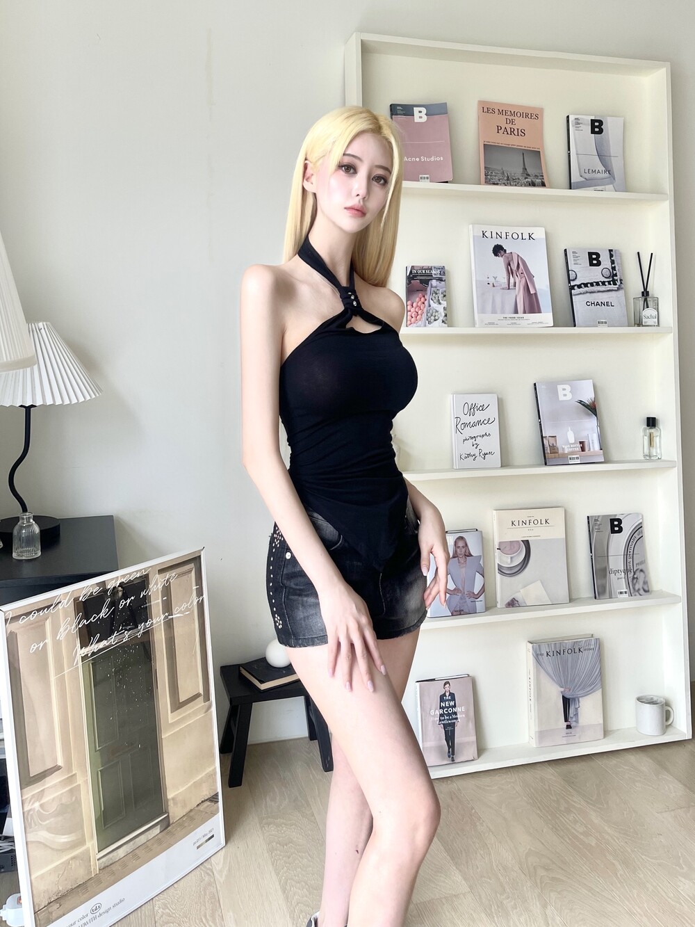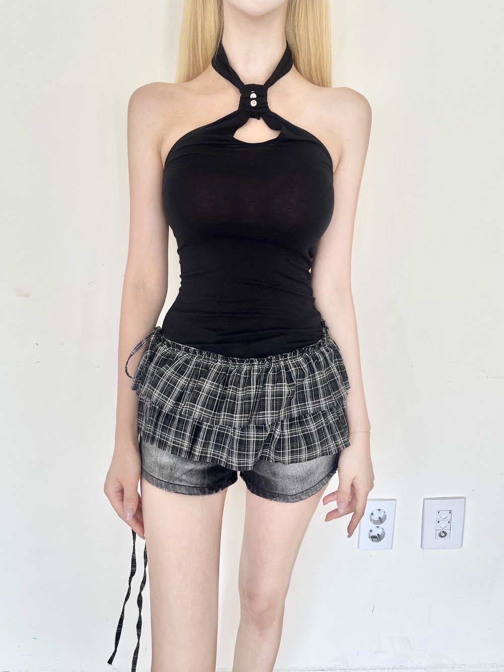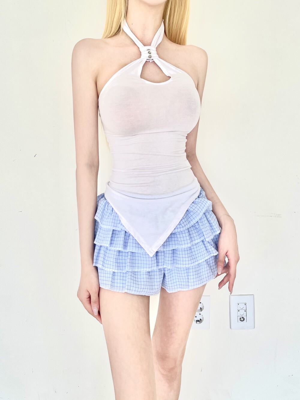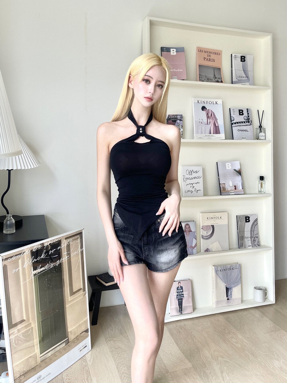 1501. 리벳 홀터 슬리브리스 탑 (2color)