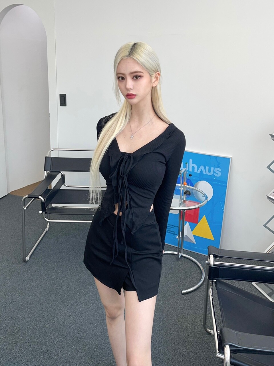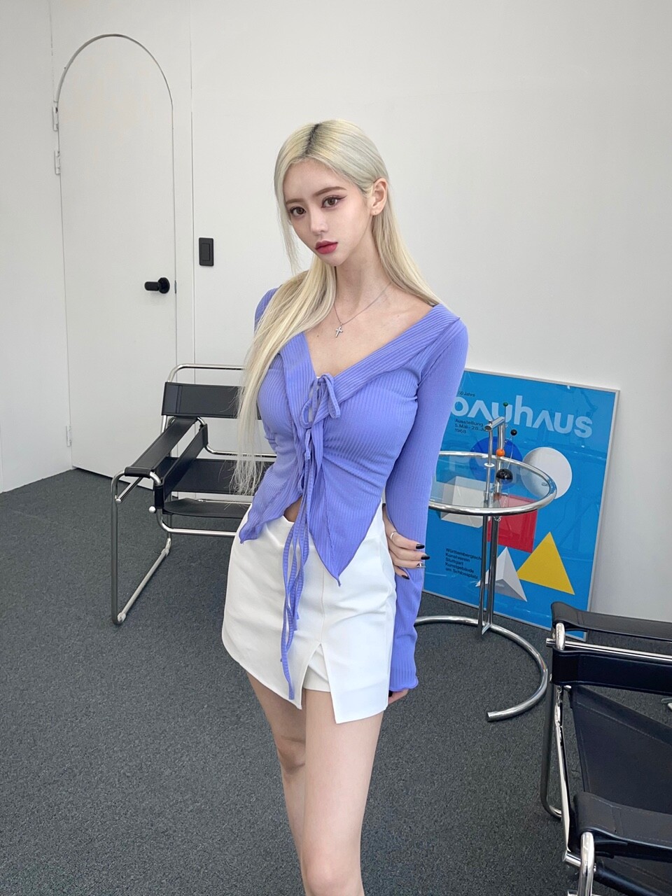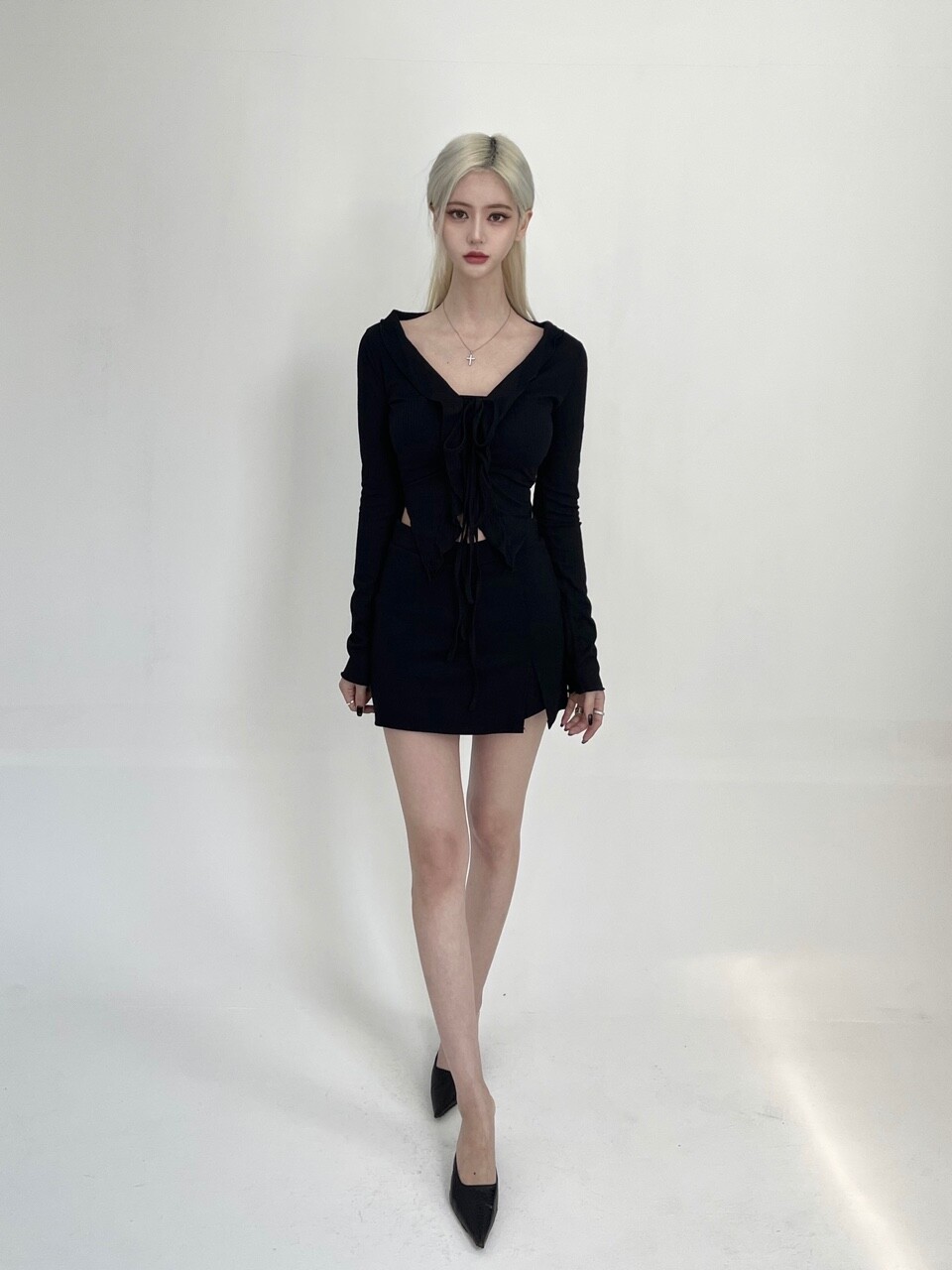 브이 커팅 미니 스커트팬츠