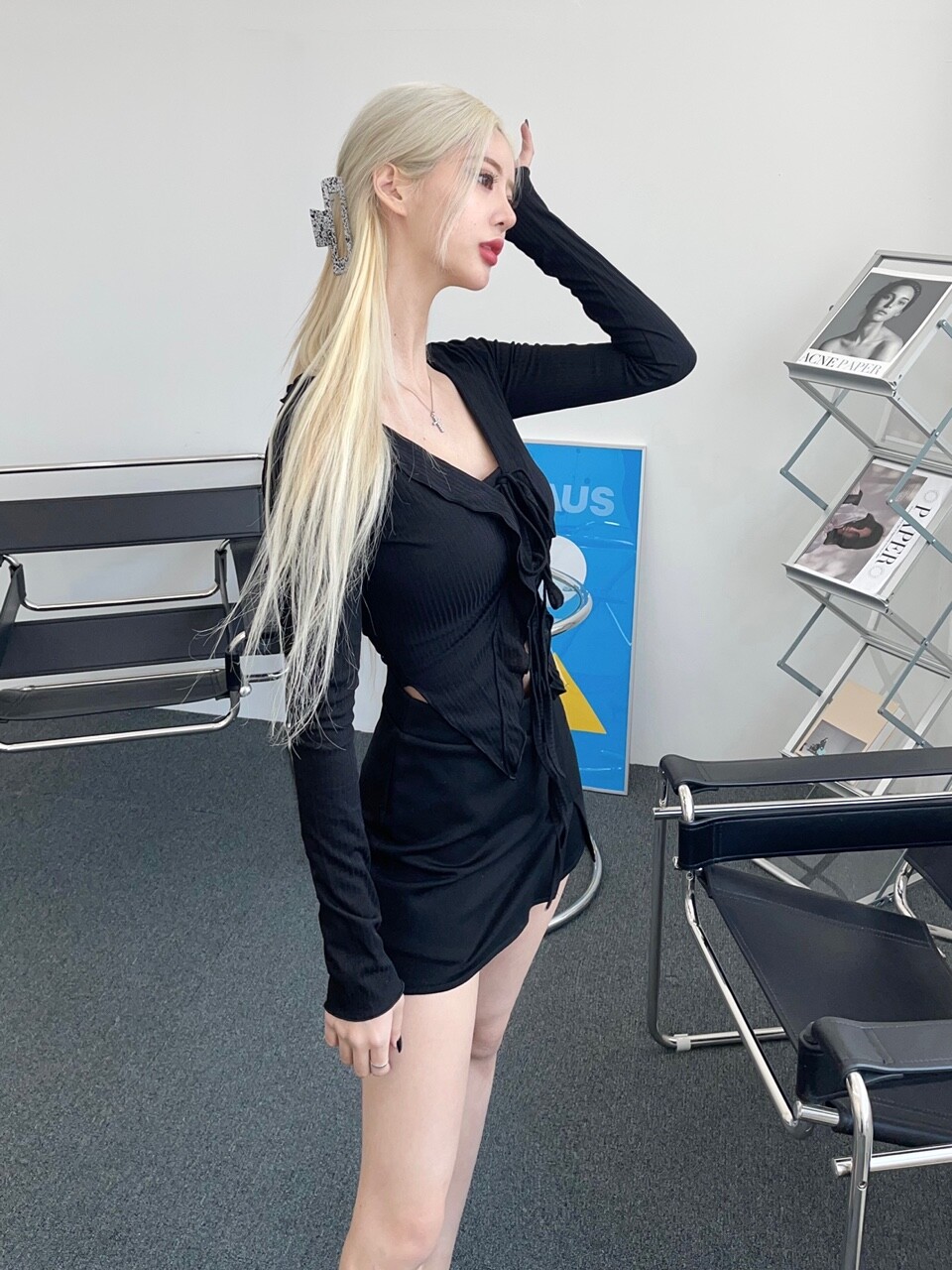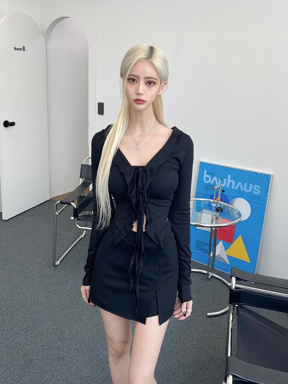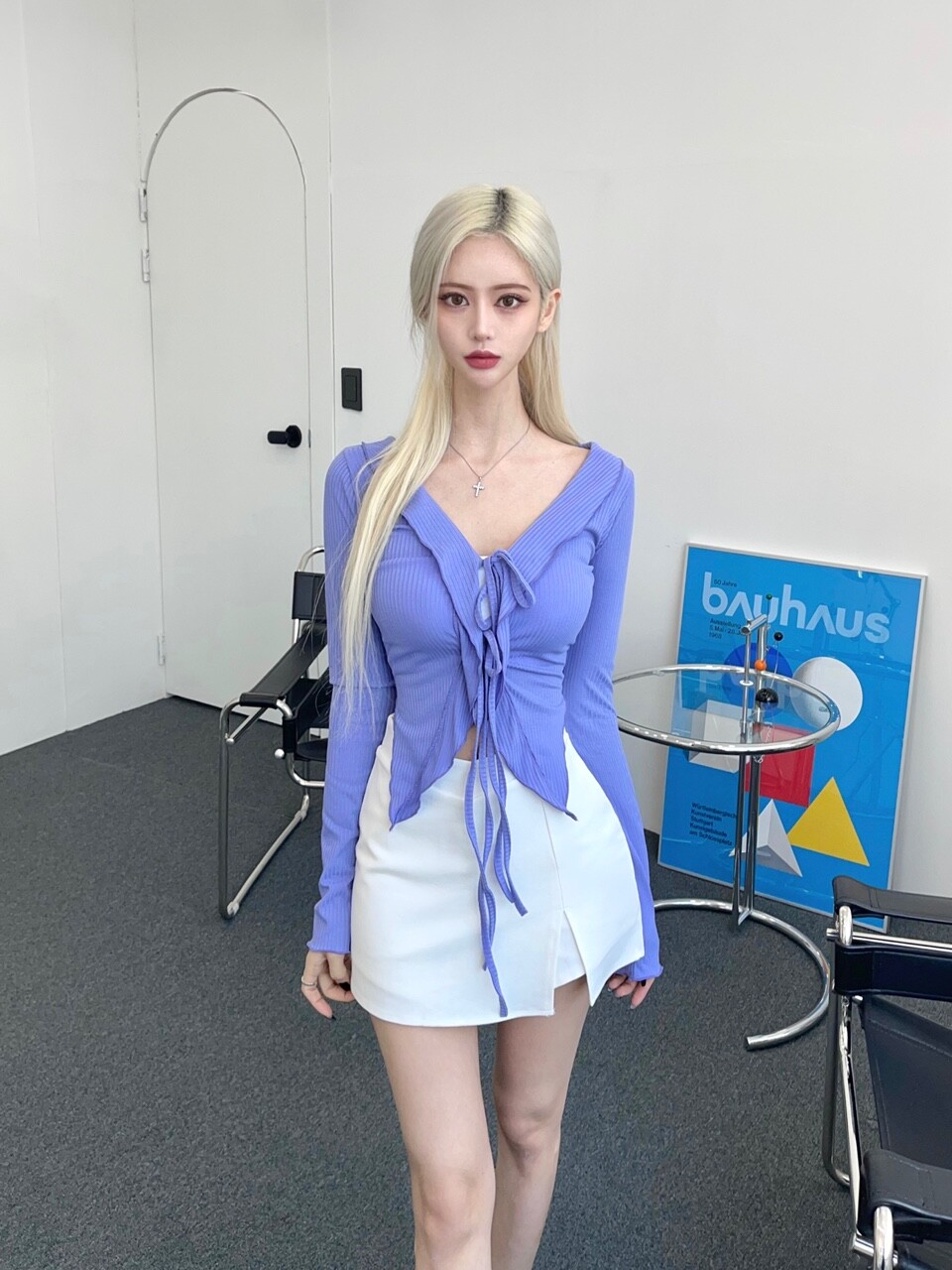브이 커팅 미니 스커트팬츠